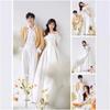 Vestido de Novia de Alta Gama Fuera del Hombro Vestido de Novia Ligero Satén Francés Blanco Sencillo Fiesta Exterior Viaje Vestido de Novia