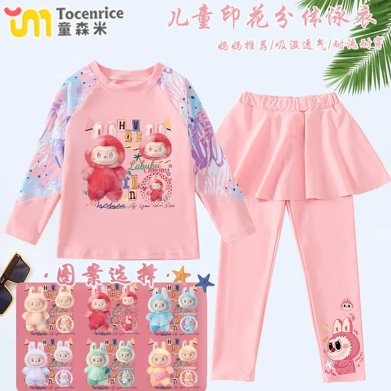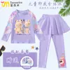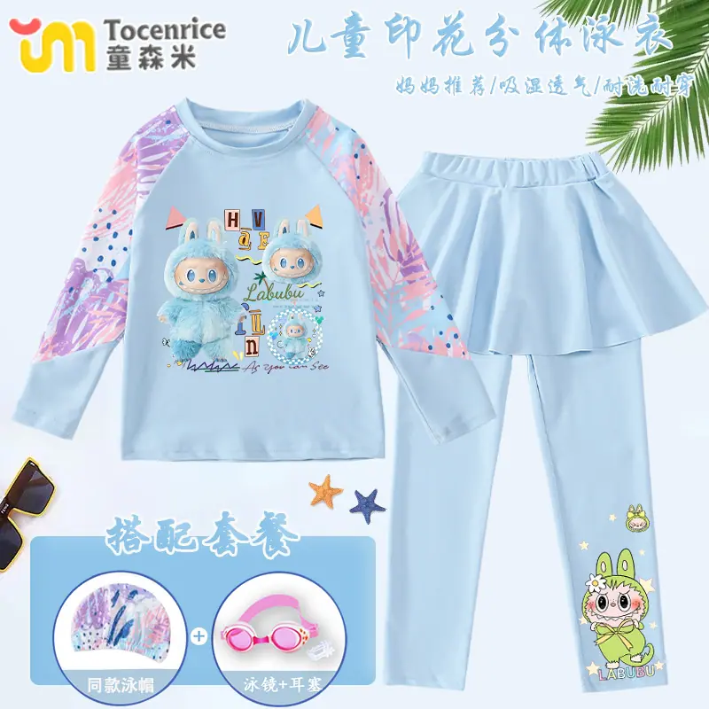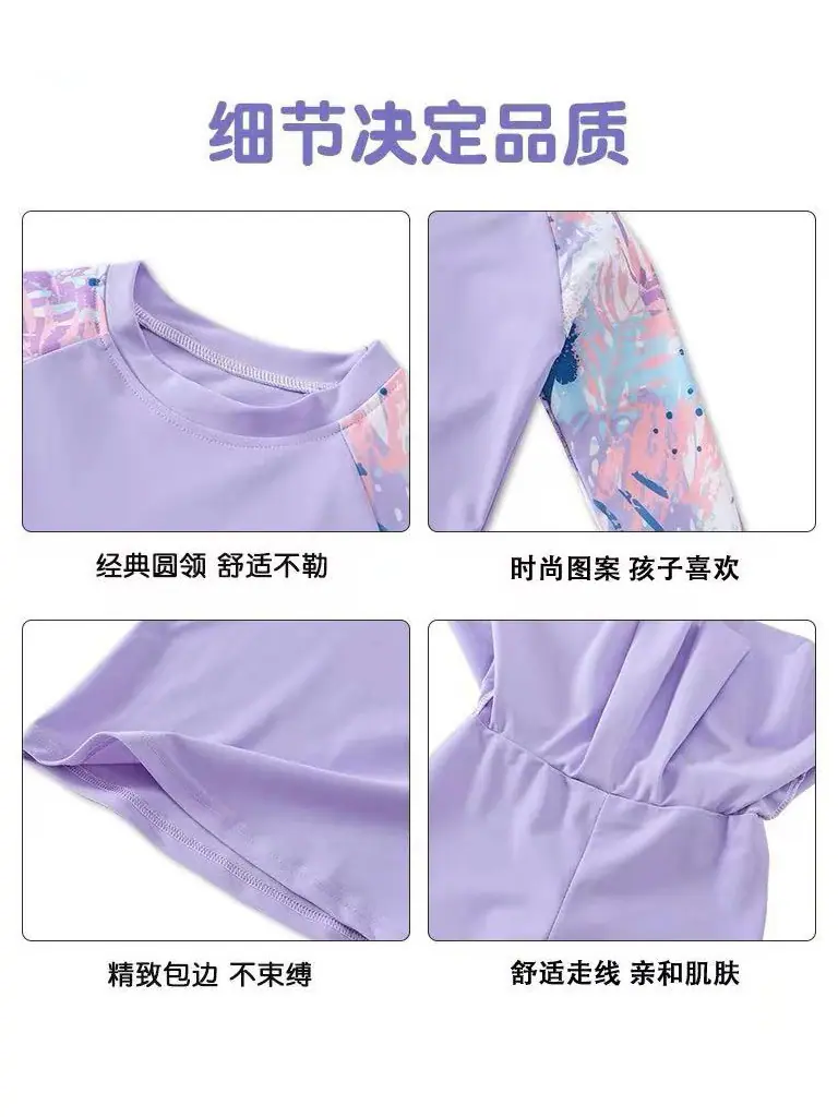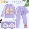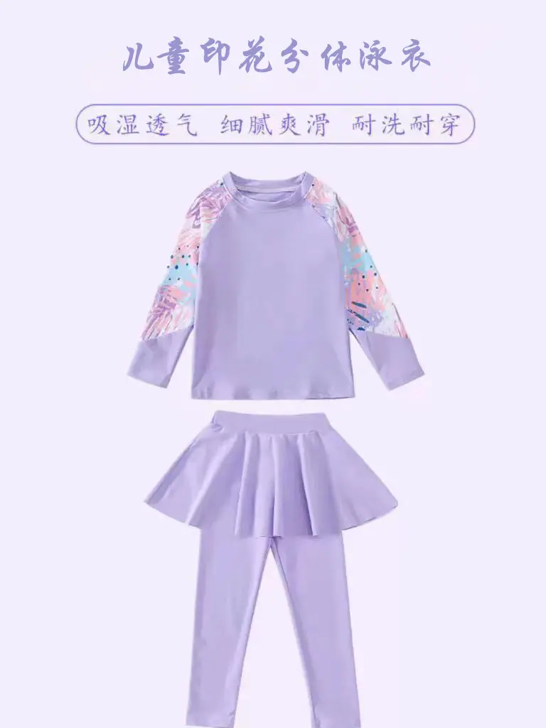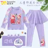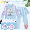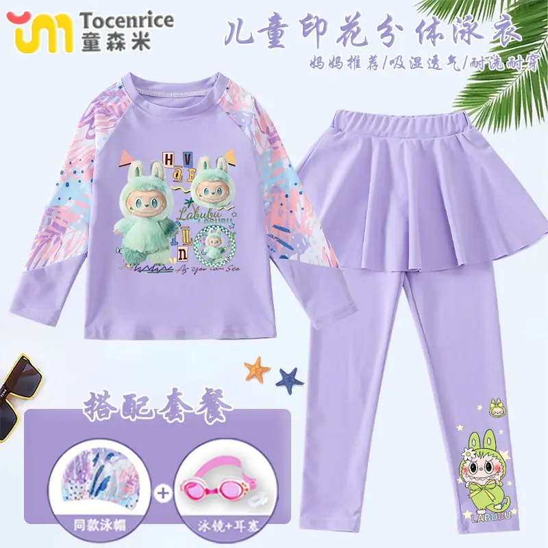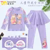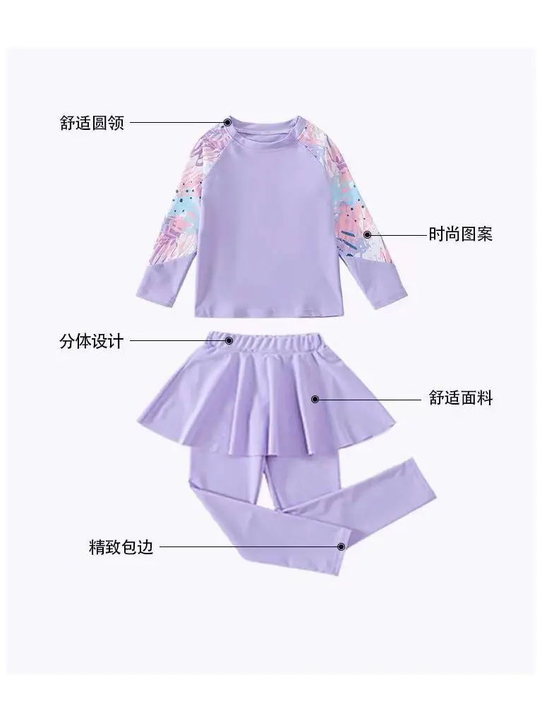 Traje de baño de dos piezas de manga larga para niña Traje de baño de secado rápido 2025 Otoño Nuevo estilo Conjunto de baño moderno para bebé