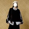 Sudadera de punto con cuello de solapa, diseño de dos piezas falsas a rayas y bloques de color para hombre y mujer, corte holgado casual, moderno estilo callejero nuevo