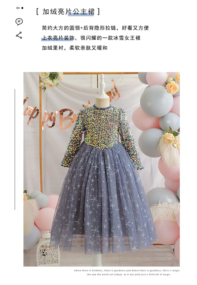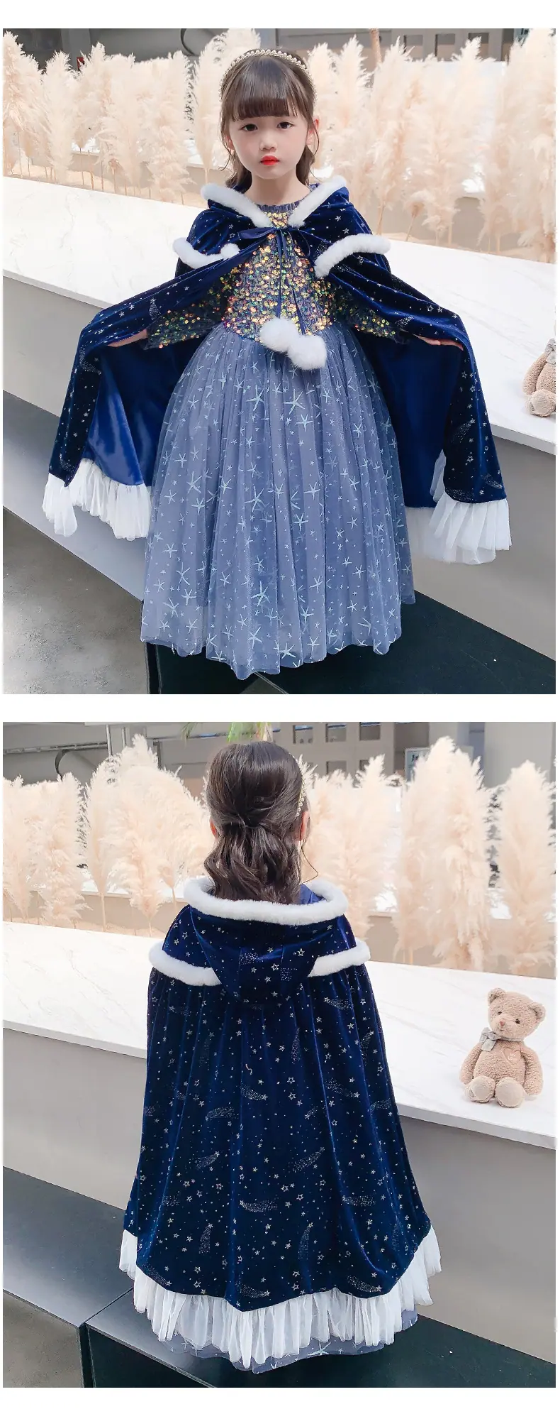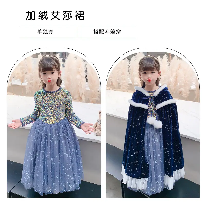 Vestido para niña con forro polar Estilo otoño/invierno 2025 Vestido de princesa Frozen Elsa Vestido para fiesta de cumpleaños para bebé Vestido largo