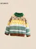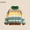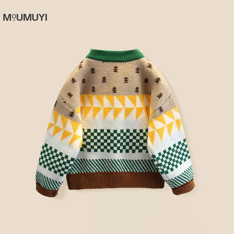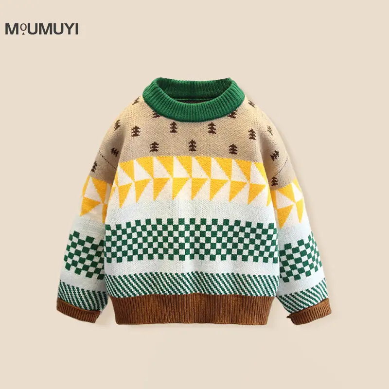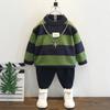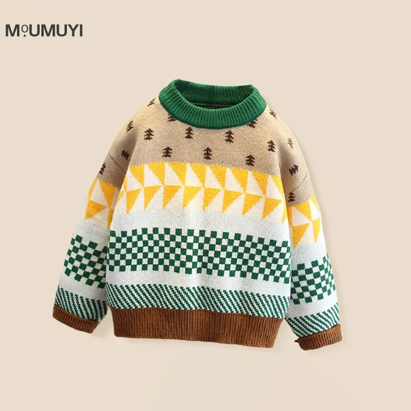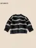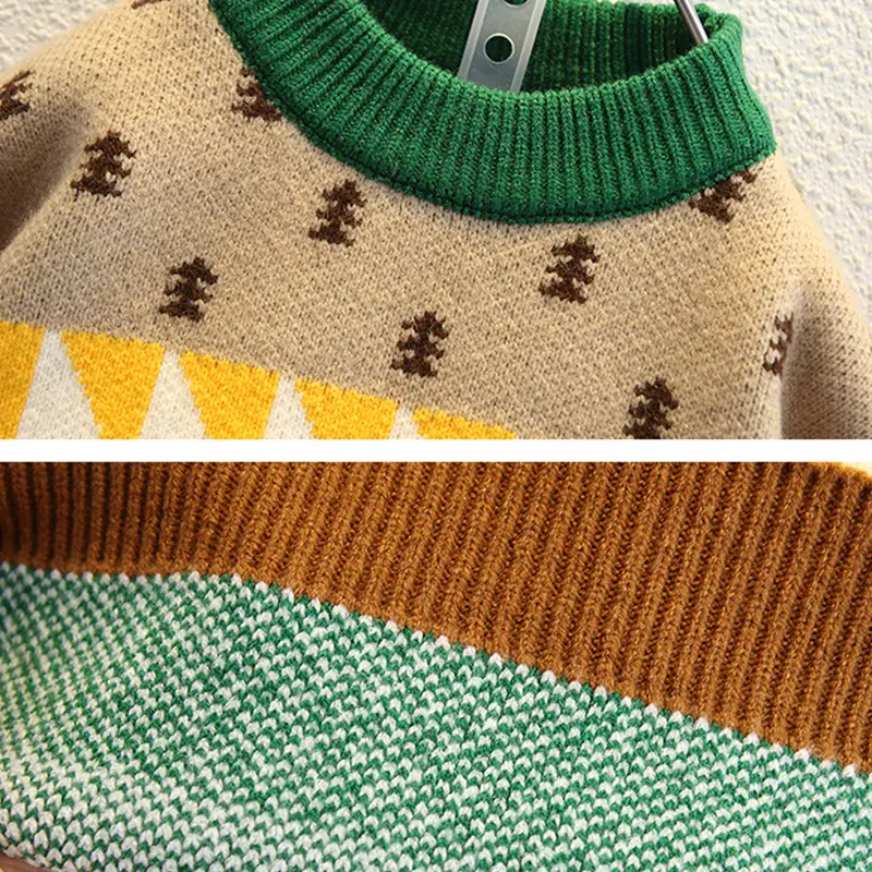 Ropa de Punto para Niño Invierno 2025 Nuevo Estilo Coreano Casual Color Block Rayado Top Niños Pequeños y Medianos Otoño/Invierno Suéter de Cuello Redondo