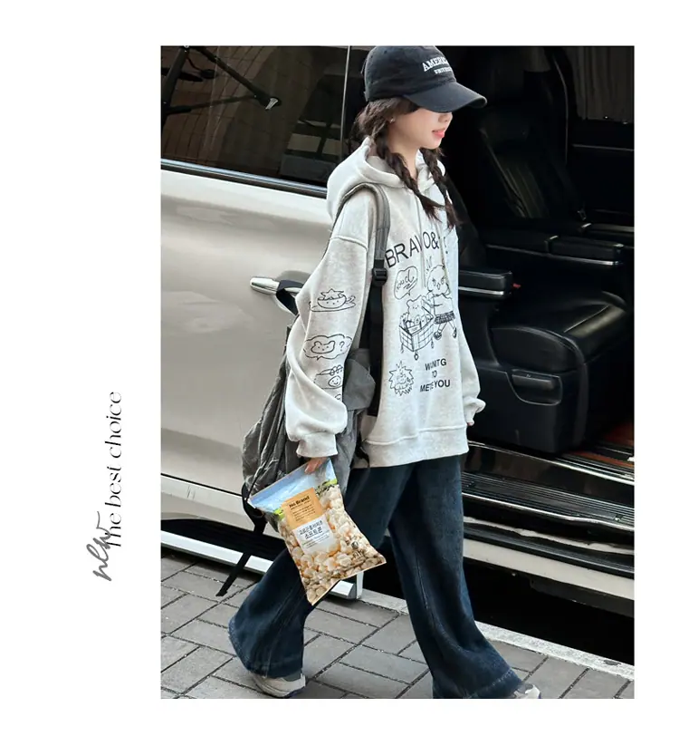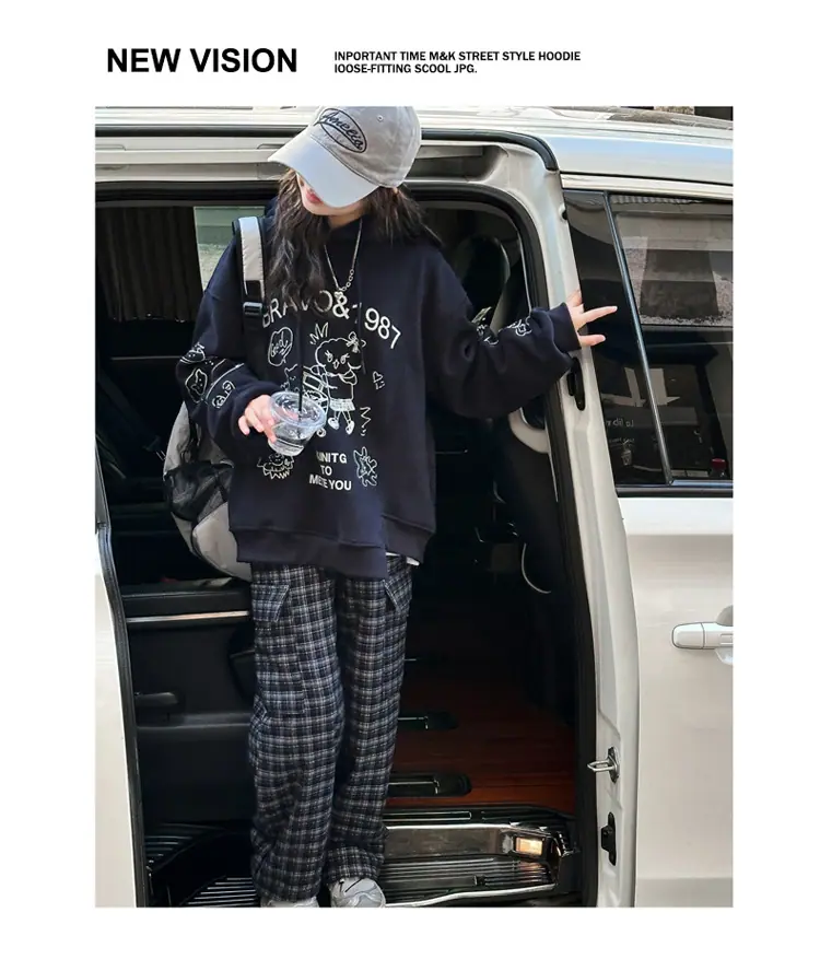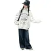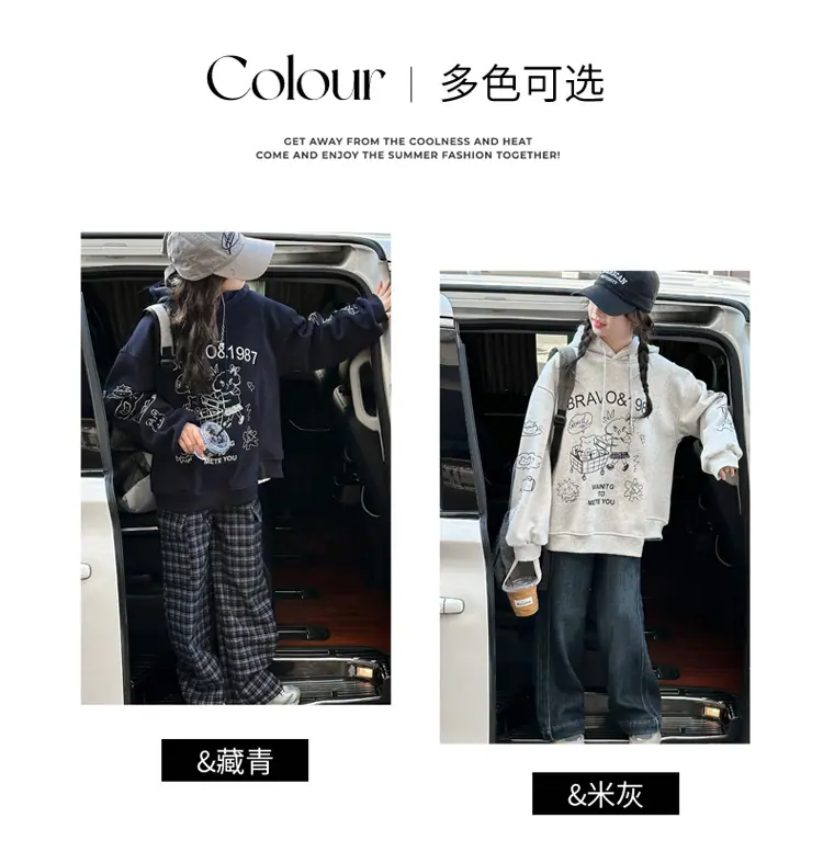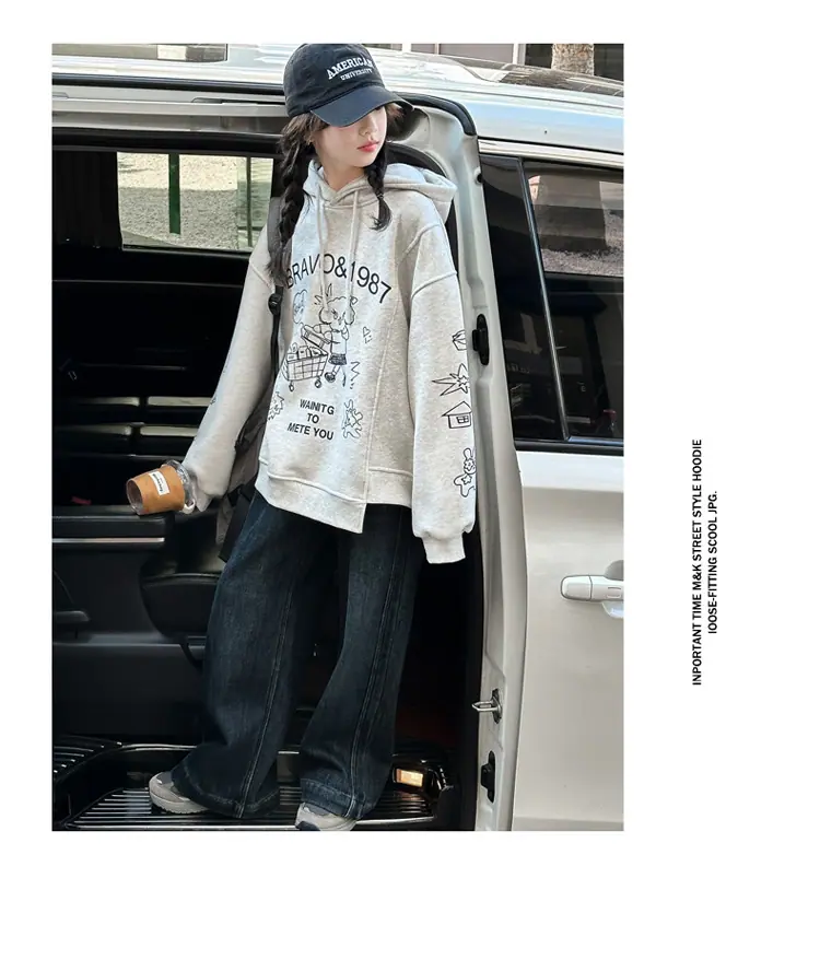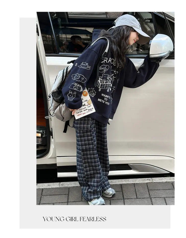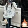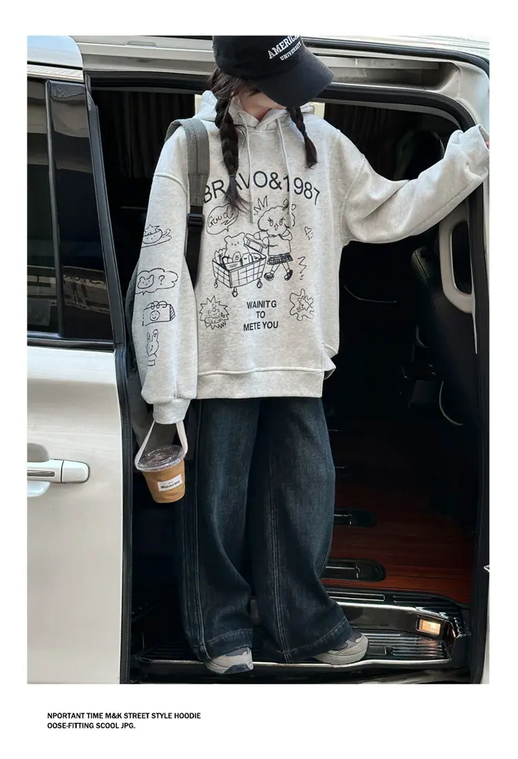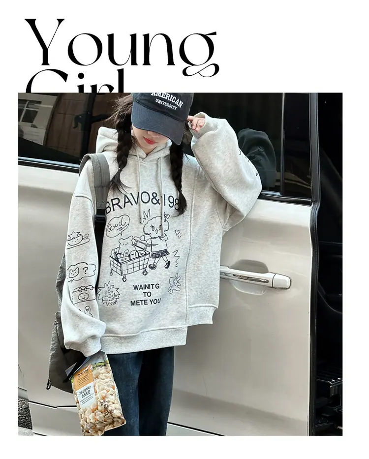 Sudadera de Felpa Otoño/Invierno para Niñas Grandes 2025 Nueva Infantil de Dibujos Animados Graffiti Gruesa de Una Pieza con Capucha Felpa Transfronteriza