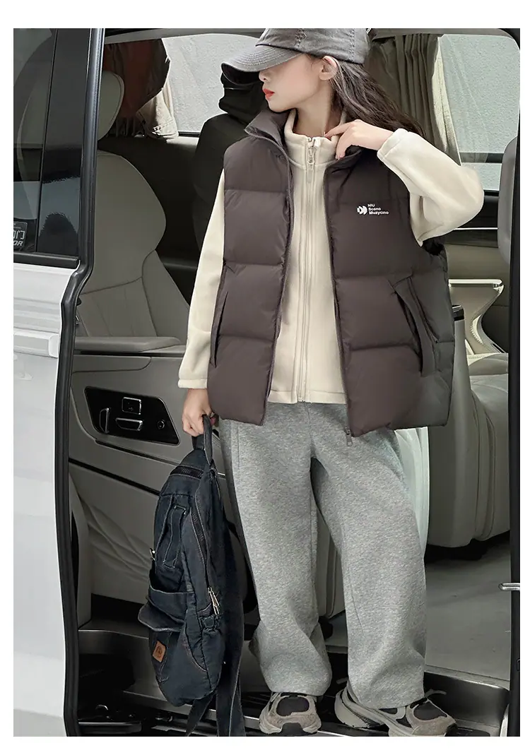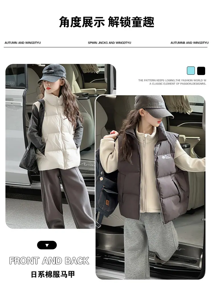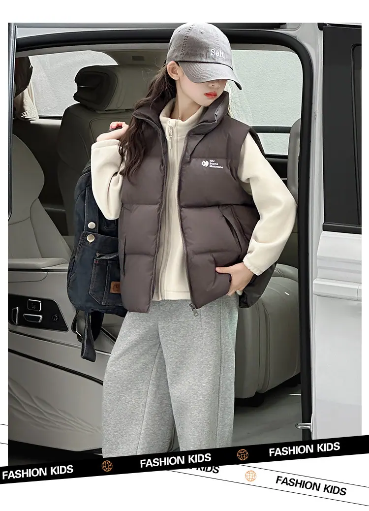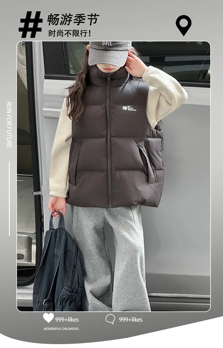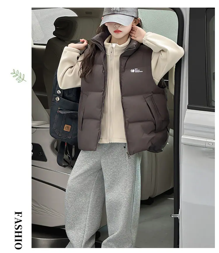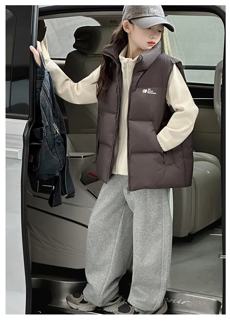 Chaleco de Algodón Acolchado de Plumón para Niñas Otoño e Invierno 2025 Nuevo Estilo Niño Grande Algodón Acolchado Ropa de Invierno Suéter Chaleco de Cuello Alto para Niños