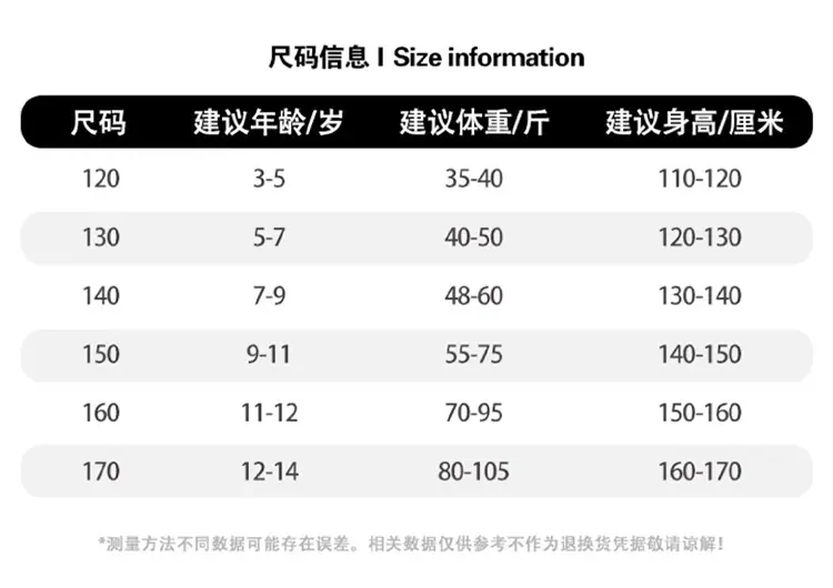 120cm, 130cm, 140cm, 150cm, 160cm, 170cm