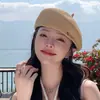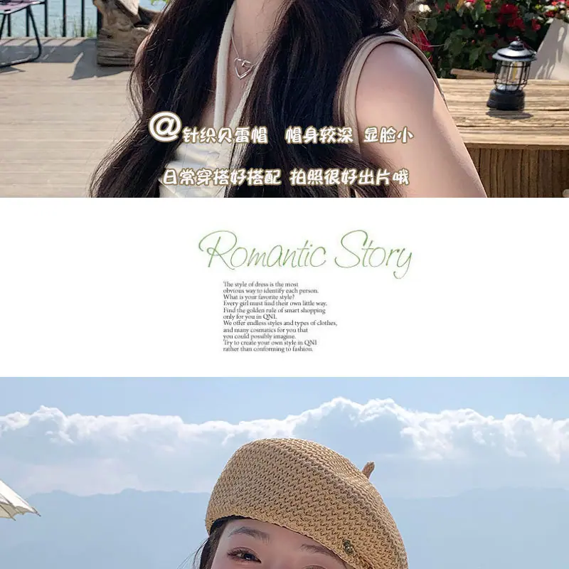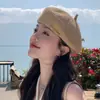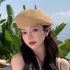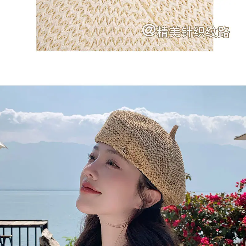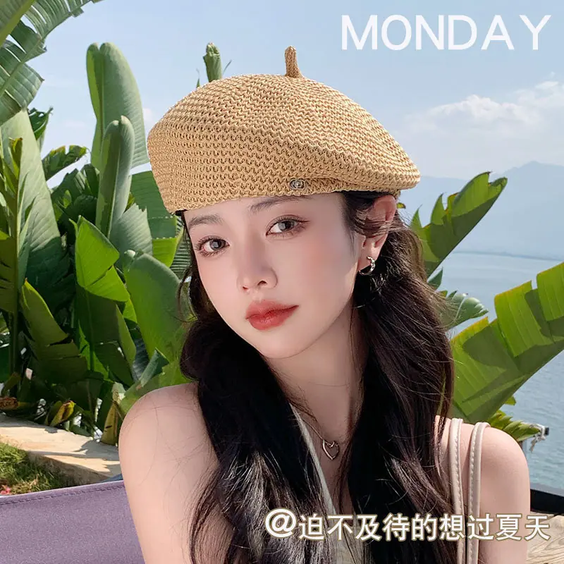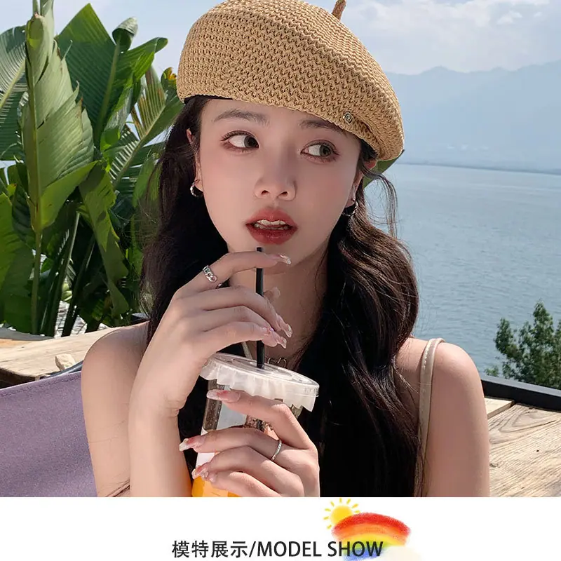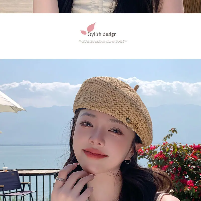 Boina de Verano para Mujer Tejida Calada Gorro de Brote Fino Transpirable Sombrero Estilo Japonés Moda Boina de Pintor Muestra Cara Pequeña