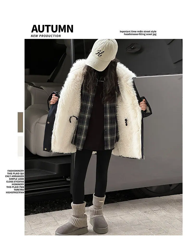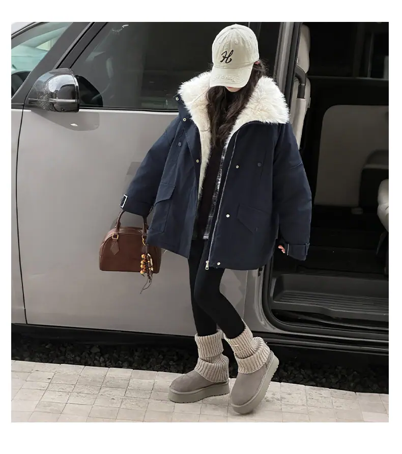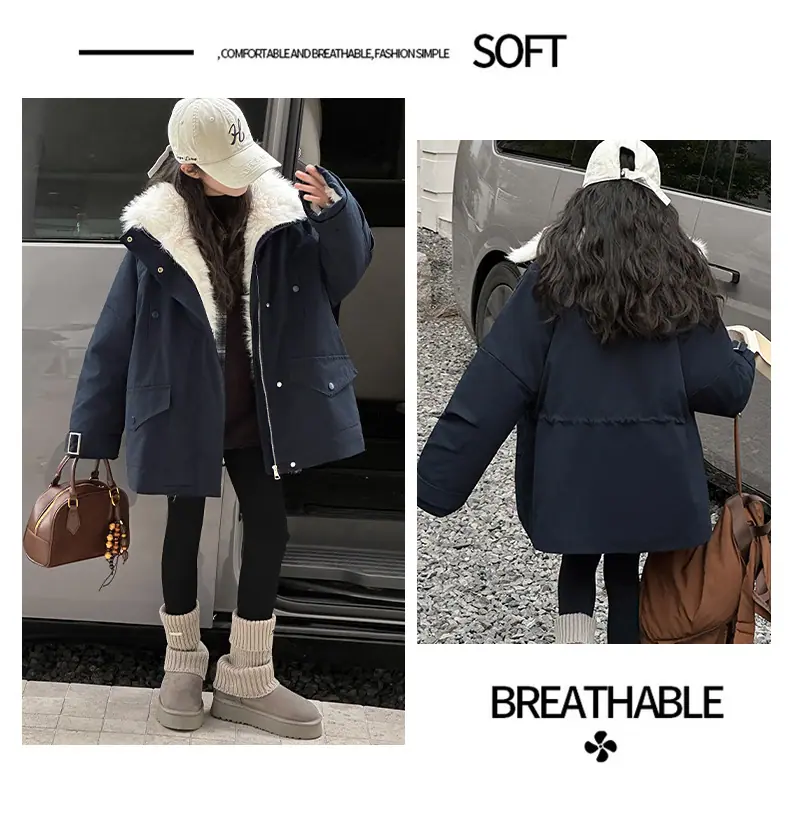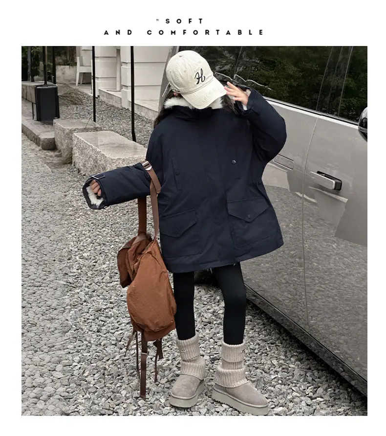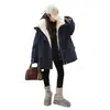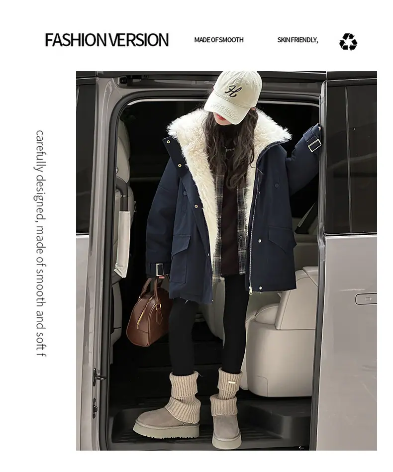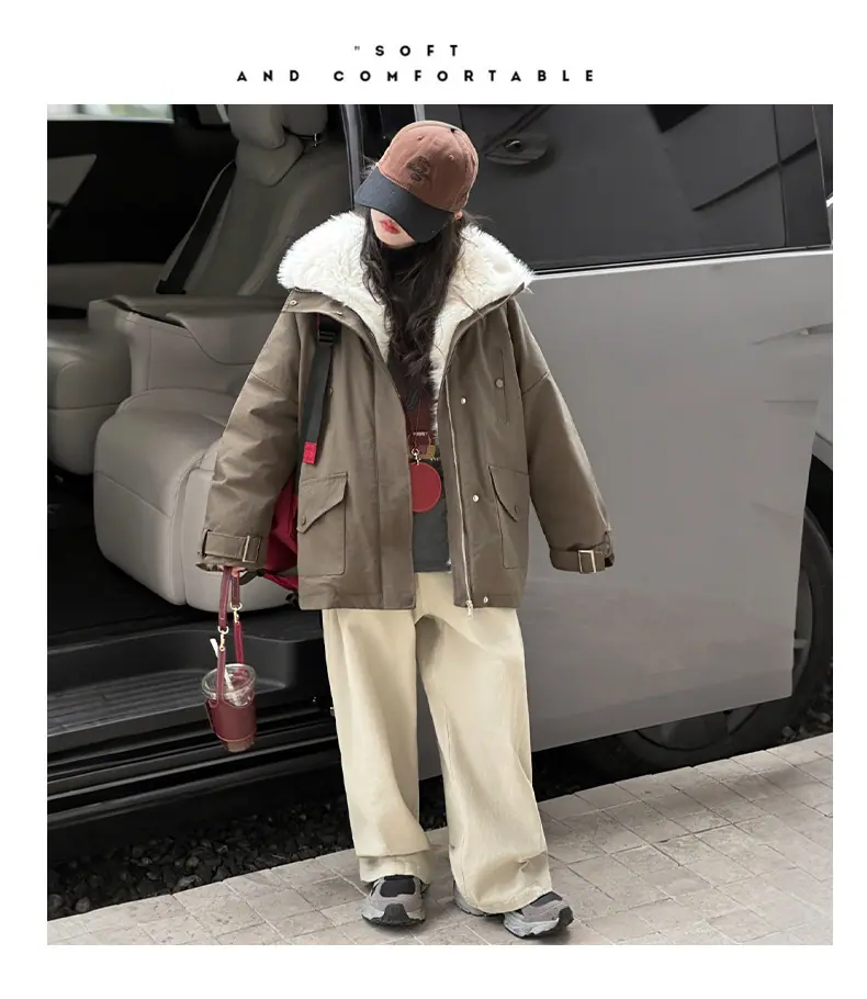 Abrigo para niña con forro polar 2025 Nuevo Otoño e Invierno Estilo occidental Moderno Parka gruesa para niños grandes con cuello de piel grande