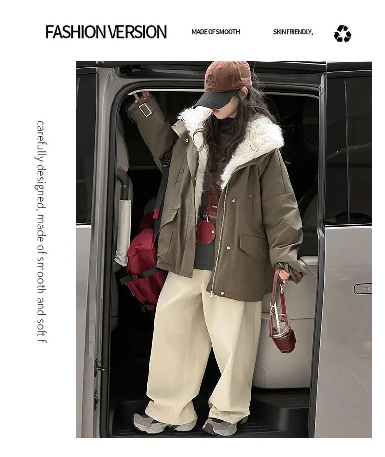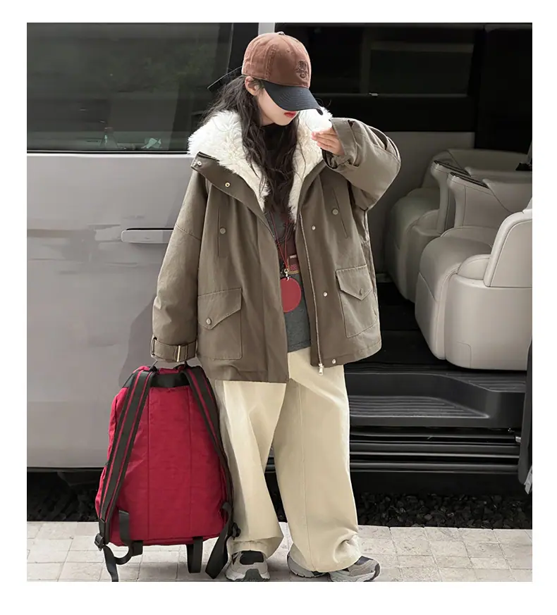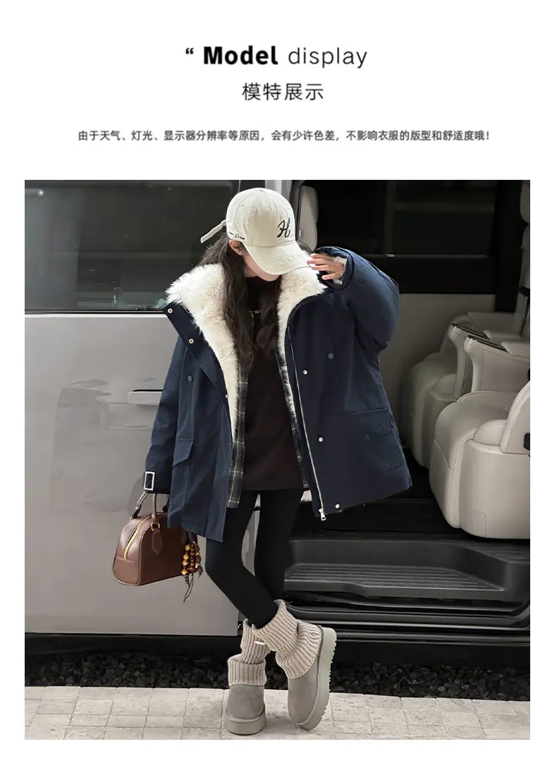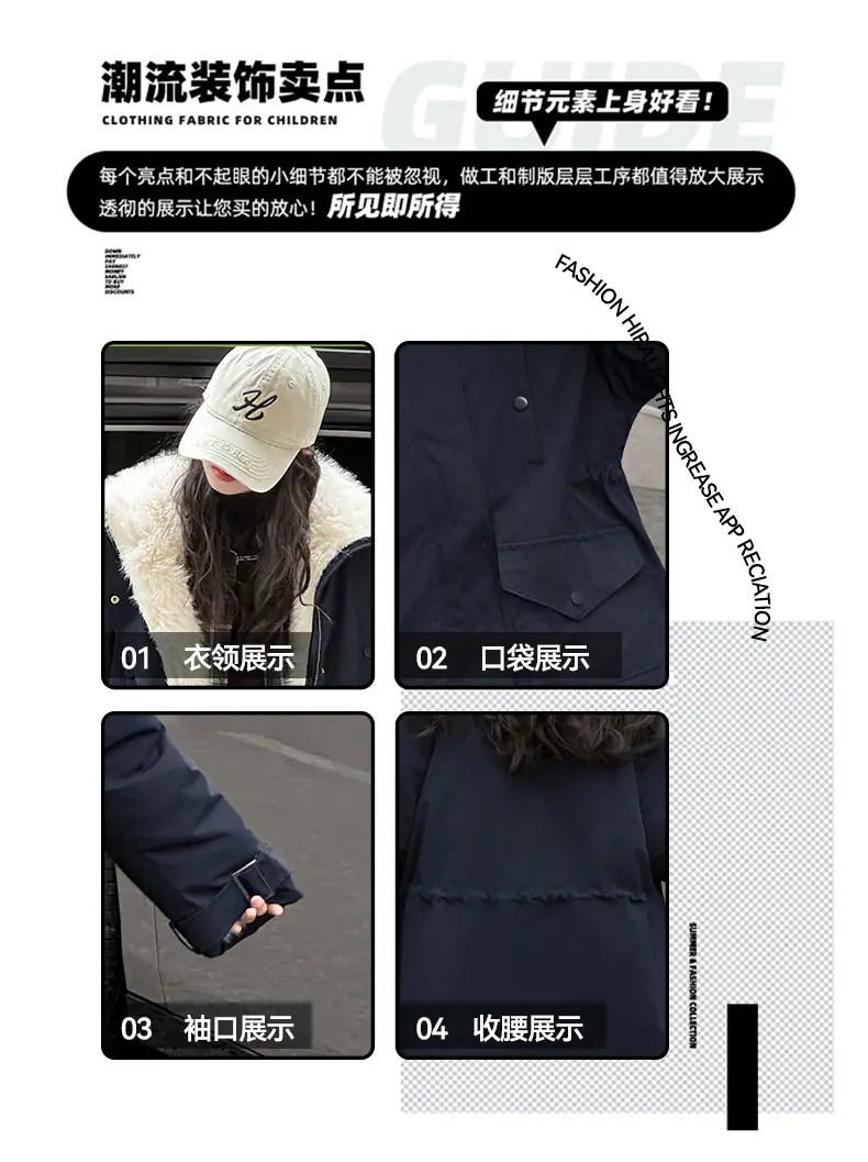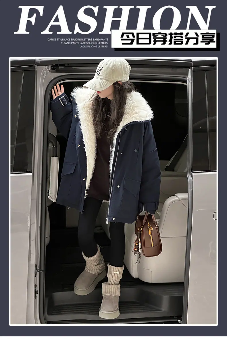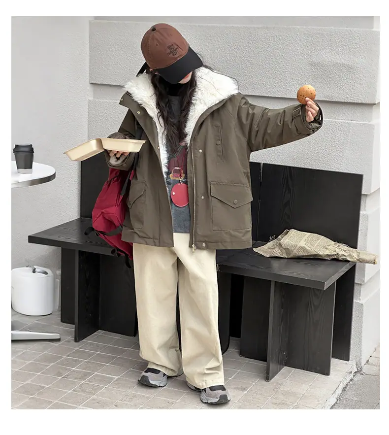 Abrigo para niña con forro polar 2025 Nuevo Otoño e Invierno Estilo occidental Moderno Parka gruesa para niños grandes con cuello de piel grande