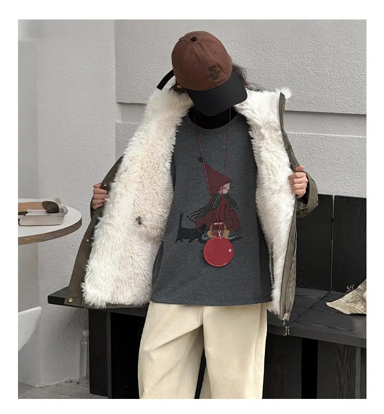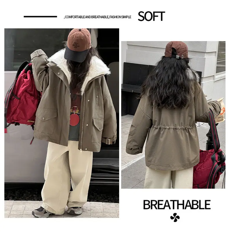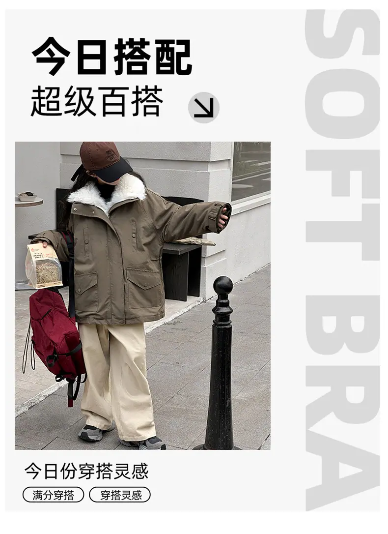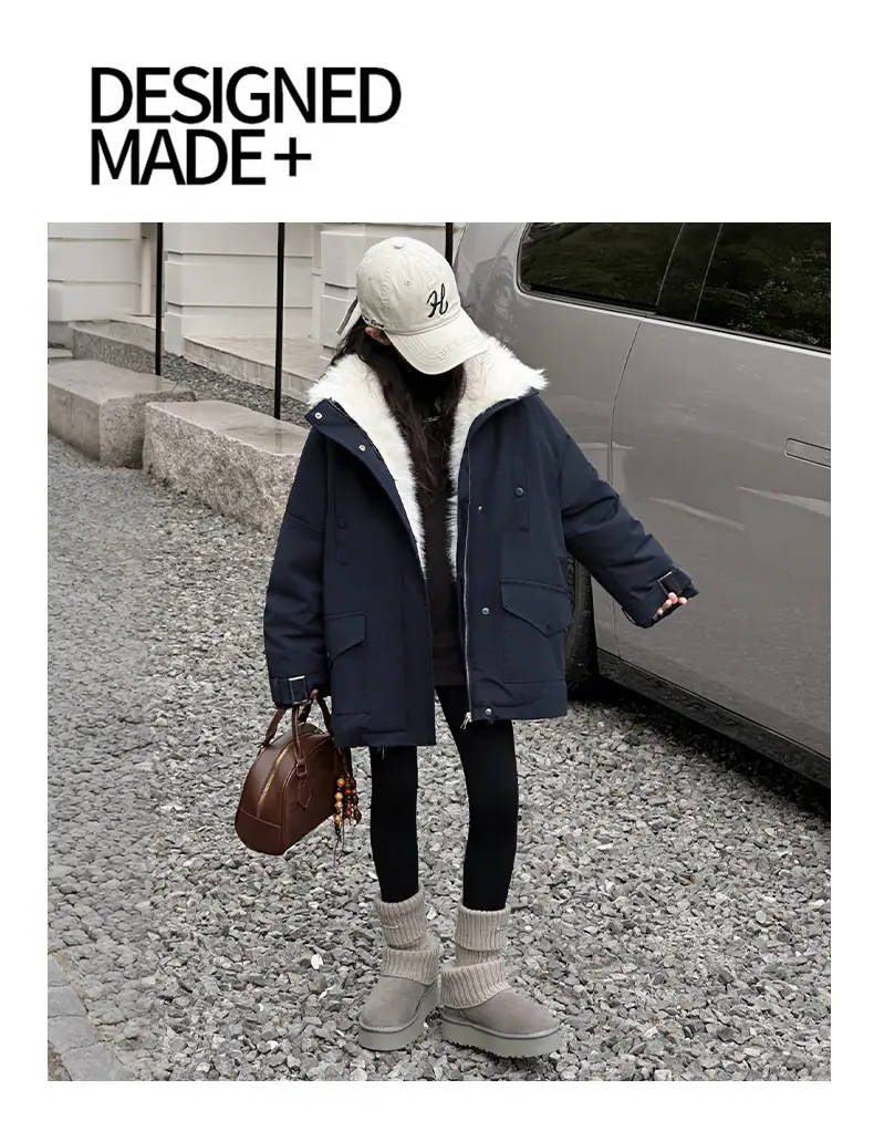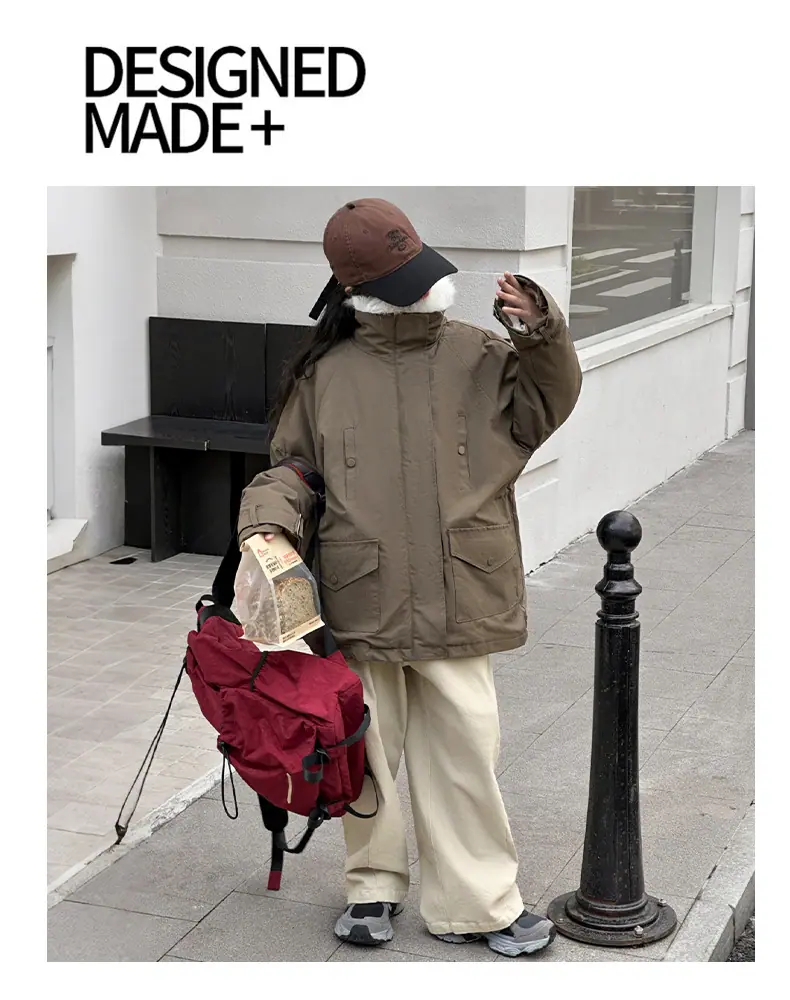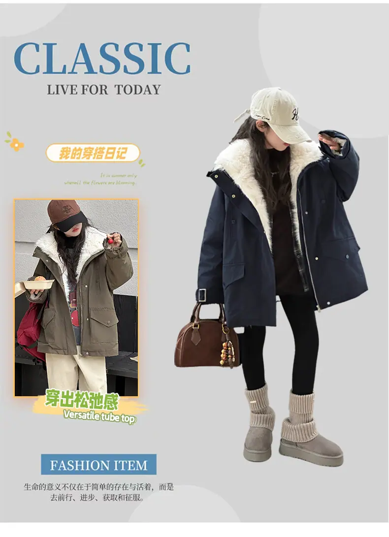 Abrigo para niña con forro polar 2025 Nuevo Otoño e Invierno Estilo occidental Moderno Parka gruesa para niños grandes con cuello de piel grande