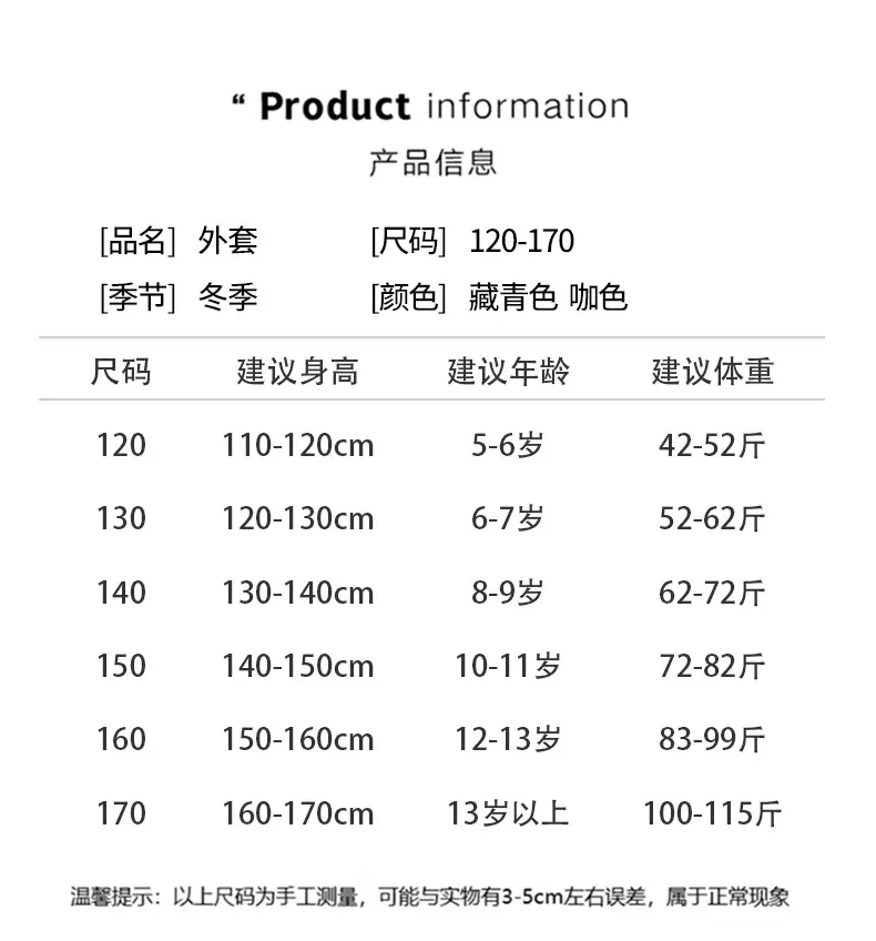 120cm, 130cm, 140cm, 150cm, 160cm, 170cm