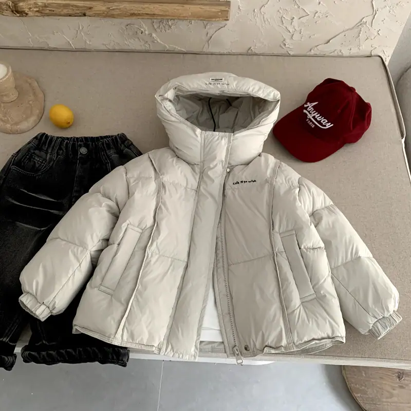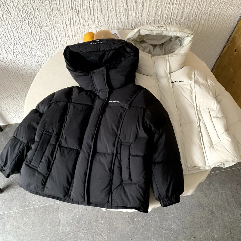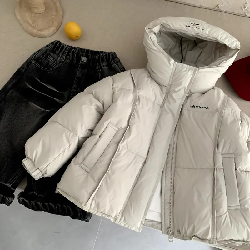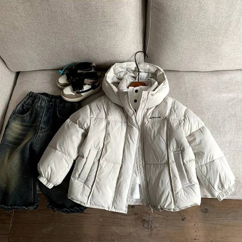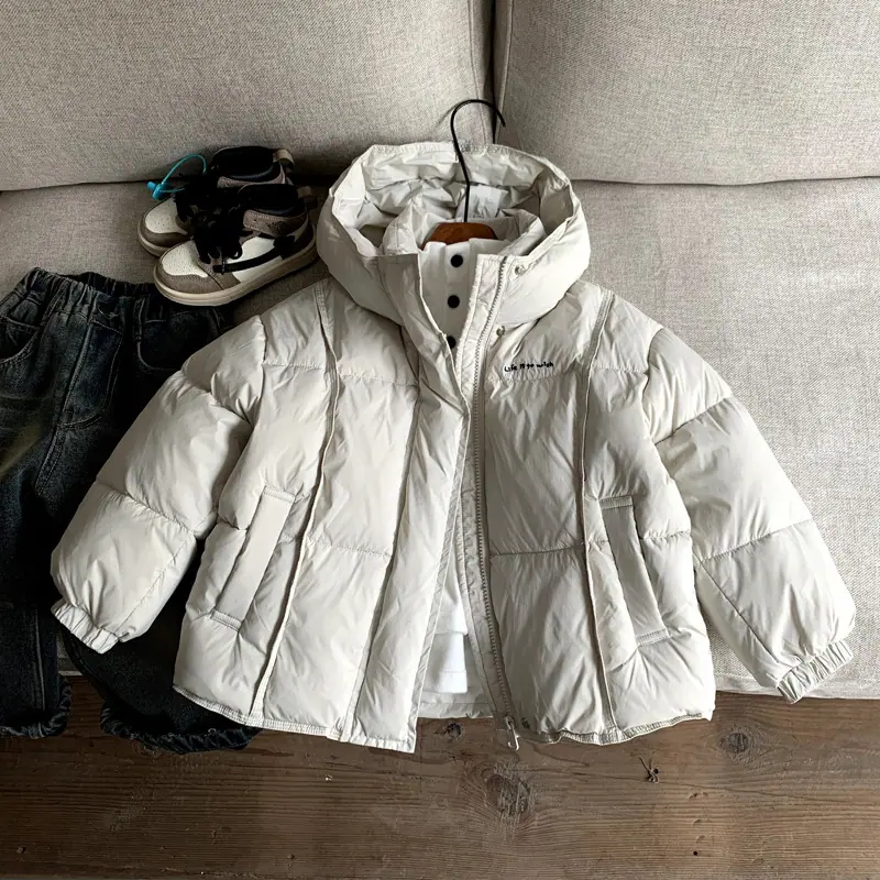 Chaqueta de Plumón para Niños Invierno Tres-Prueba Niños y Niñas Exterior Cortavientos Impermeable Grueso a Prueba de Frío Cálido Plumón de Pato Blanco Abrigo Moderno