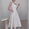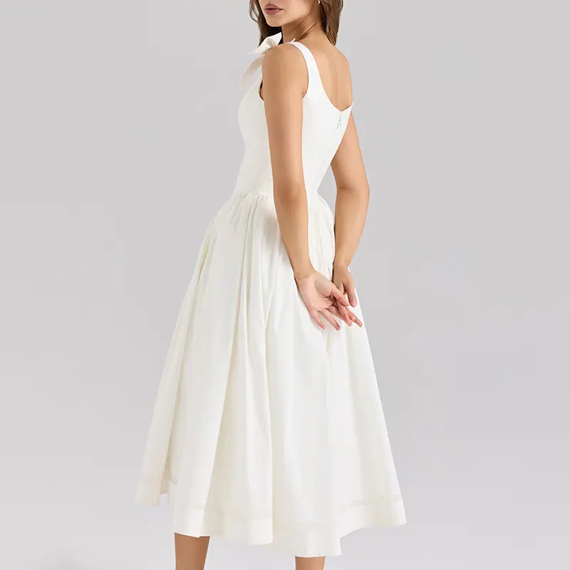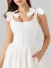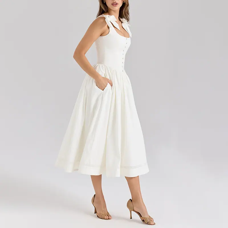 Vestido Camisola Adelgazante Moda Fresca 2025 Elegante Nuevo Sin Mangas Patchwork Largo Medio Viento Lazo Cintura