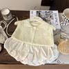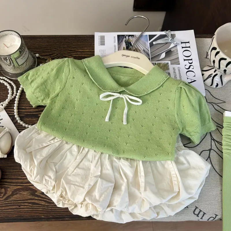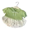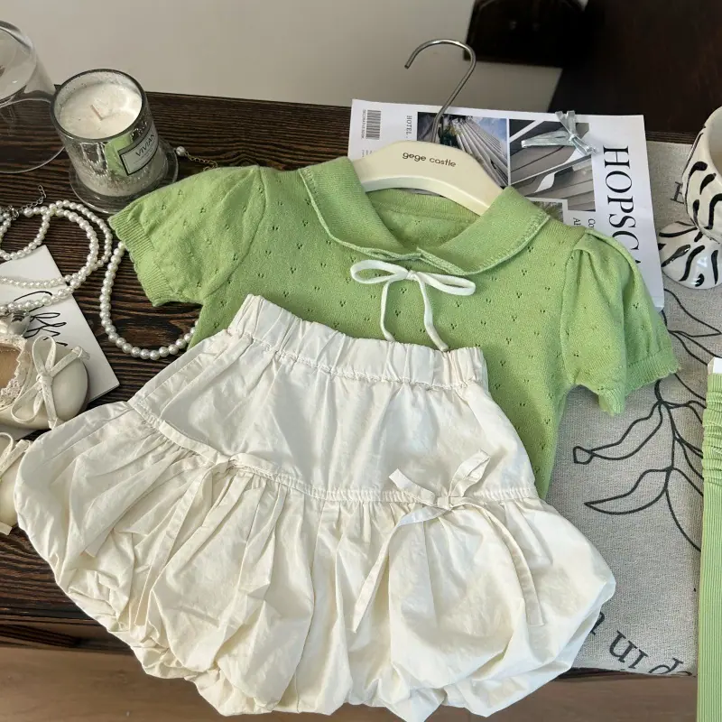 Gran Venta No Reembolsable y No Intercambiable [Pedido por Racionalidad] Verano Niñas Tejido Calado Manga Corta + Shorts Capullo de Flor