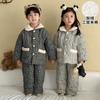 Pijama de Invierno Espesado para Niños, Cuadros para Niños, Forro Polar para Bebé, Acolchado de Tres Capas, Conjunto de Ropa para el Hogar para Niños y Niñas