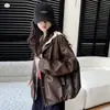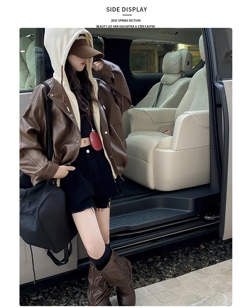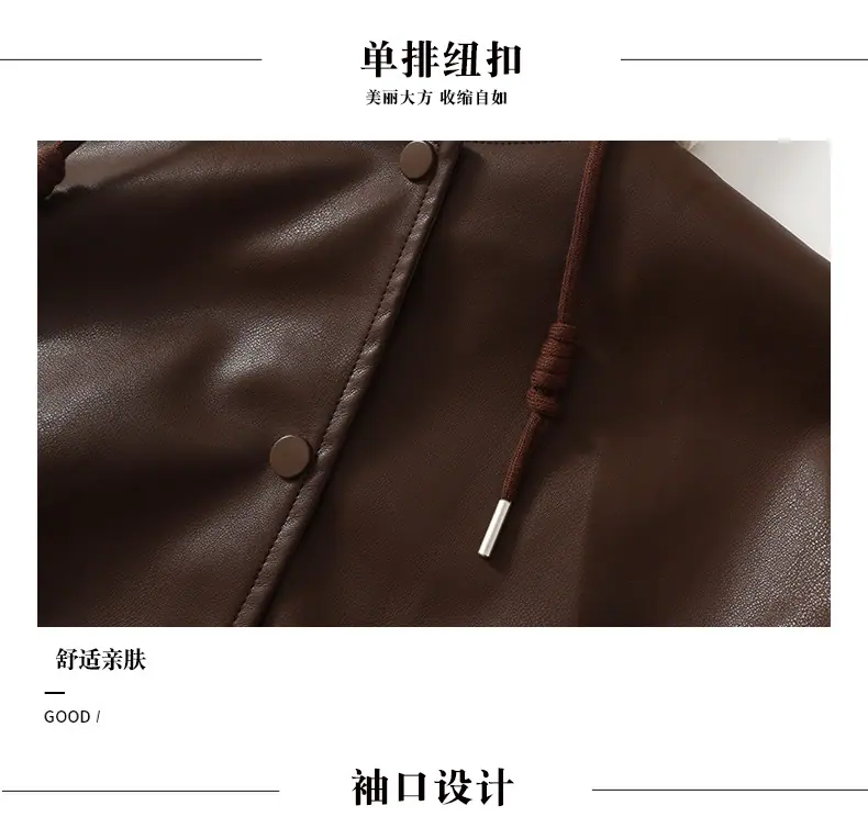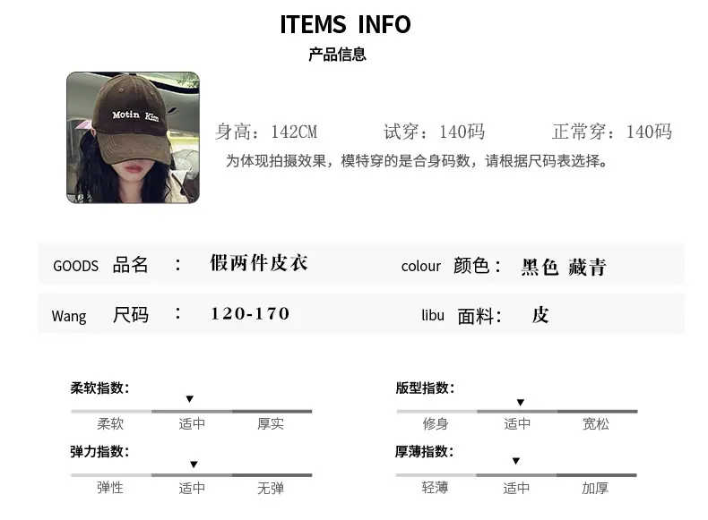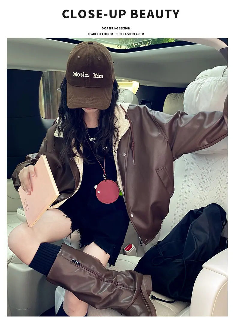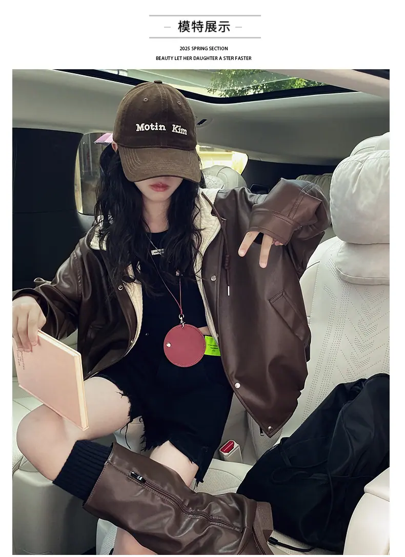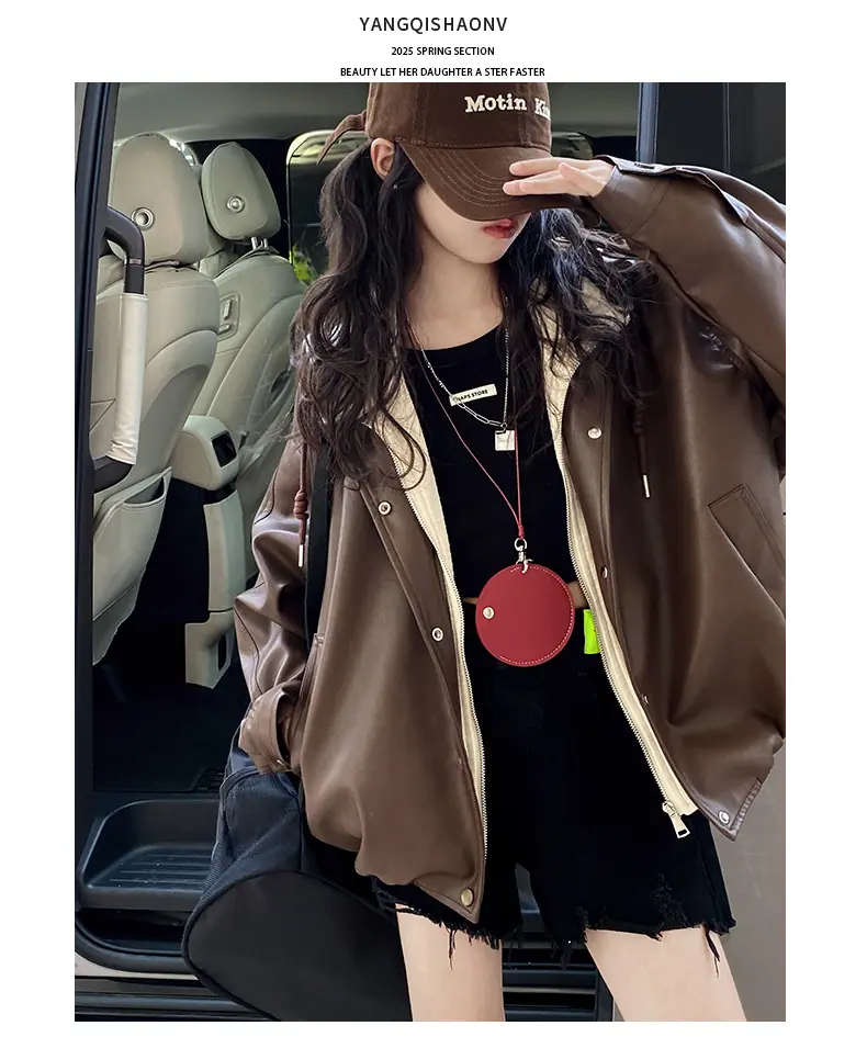 Chaqueta de Motociclista para Niñas Otoño 2025 Nuevo Estilo Niños Grandes Chaqueta de Cuero Retro Chaqueta de Cuero con Capucha Falsa de Dos Piezas para Niños