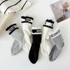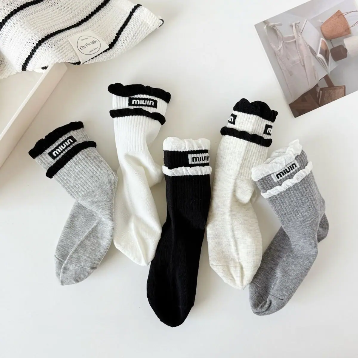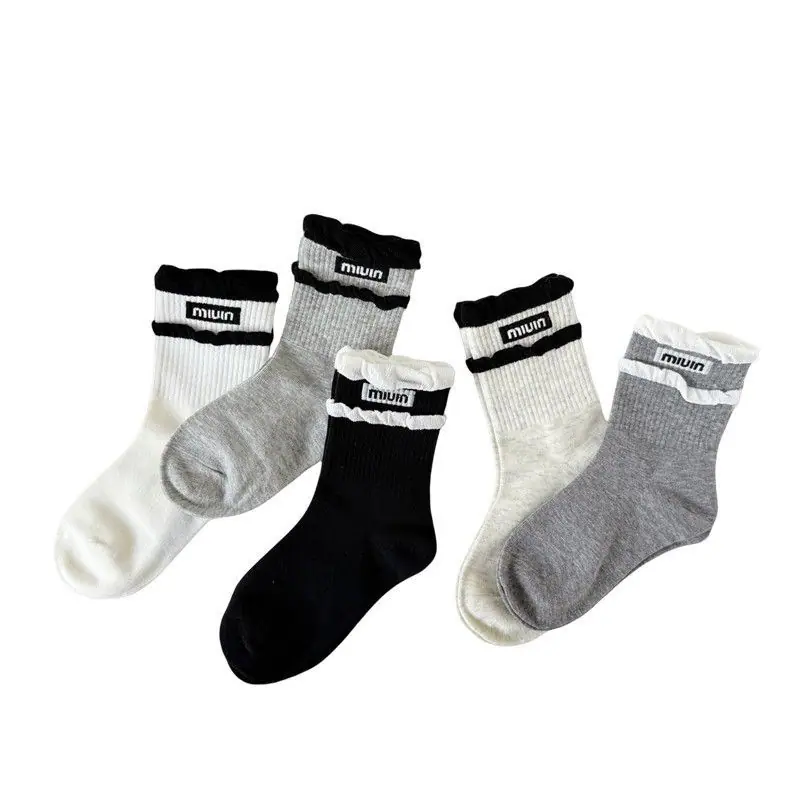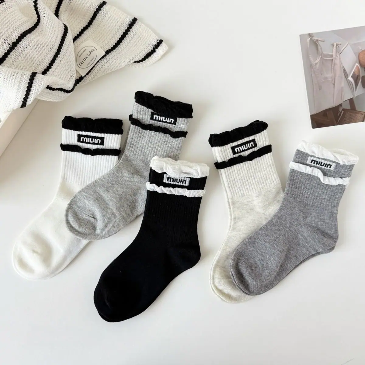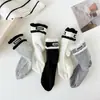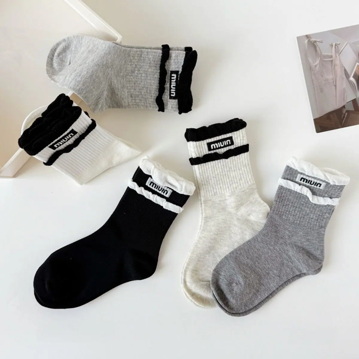 Calcetines para Niñas Otoño Invierno Calcetines para Niños Estilo Coreano Gris Letra Negro Blanco Estudiante Media Pantorrilla Princesa Niña Deportivos Algodón