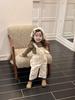 Overol de Algodón Sarga Otoño Bebé Niña Color Albaricoque Floral Pierna Ancha + Suéter Hueco de Mangas Cortas Volantes Cutemily