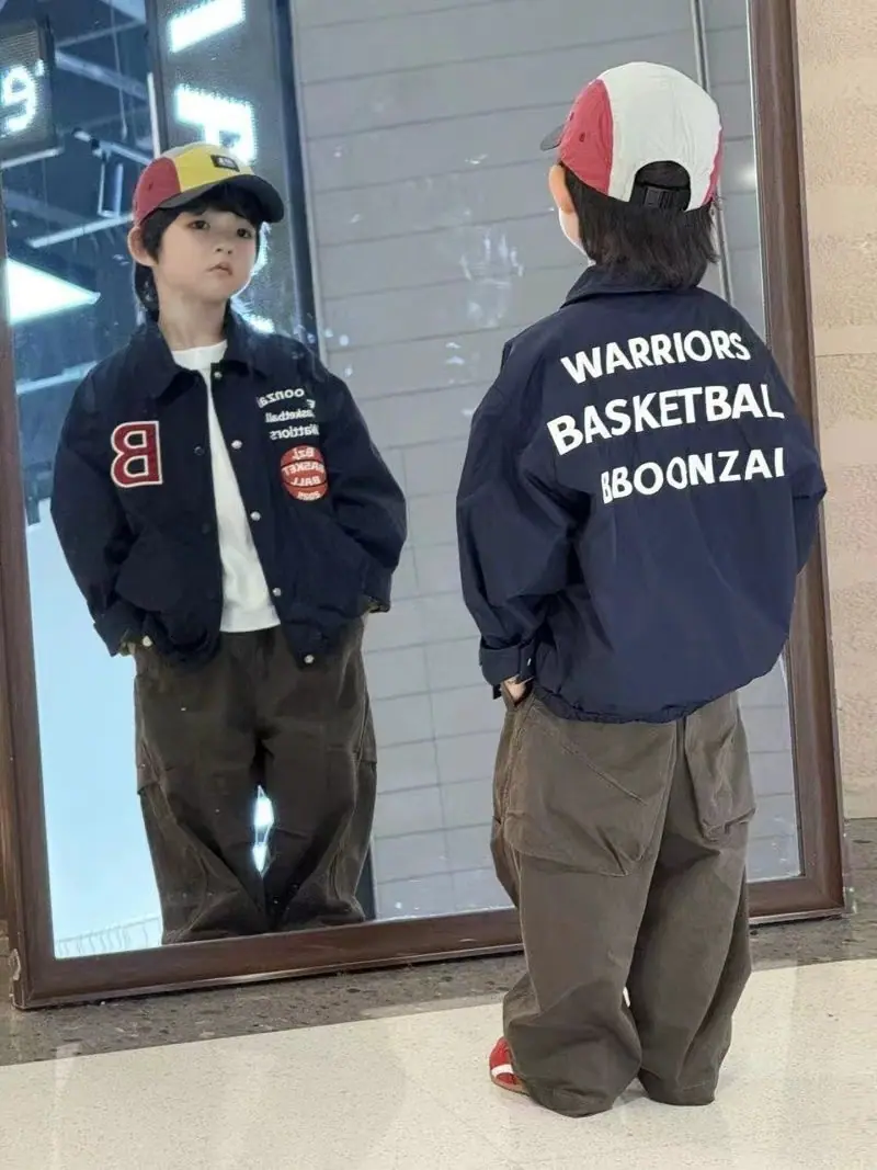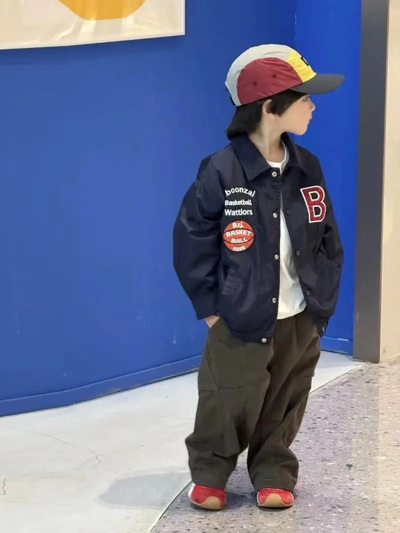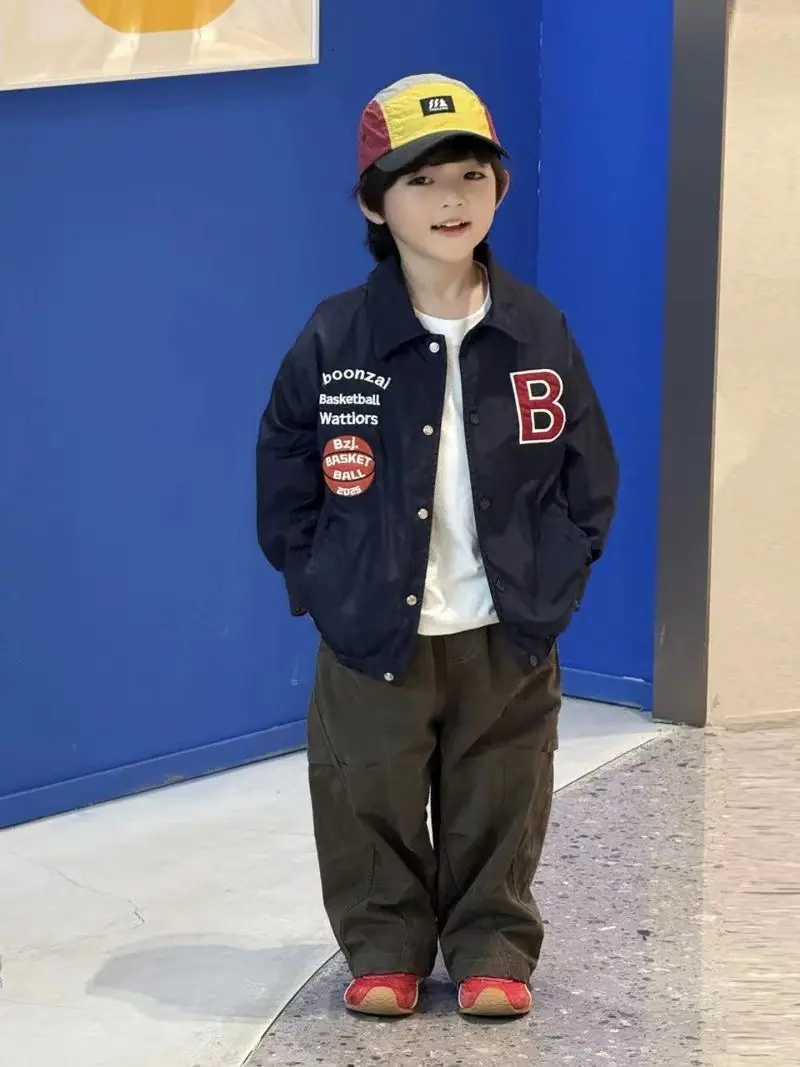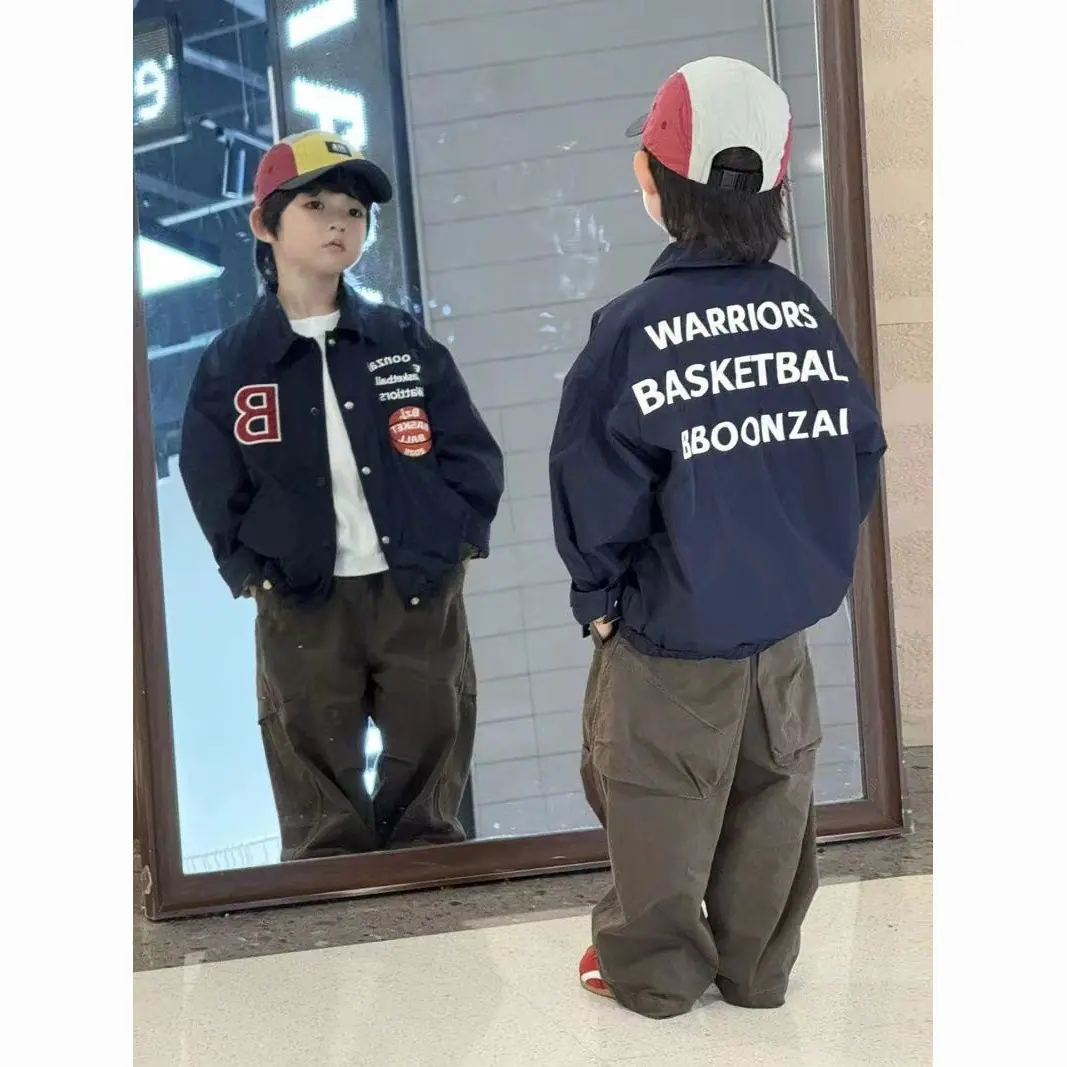 Chaqueta para niño Otoño 2025 Nueva para niños Estilo coreano Chico malo Ropa de calle Estampado Letra Chaqueta de béisbol Cárdigan Abrigo Tendencia