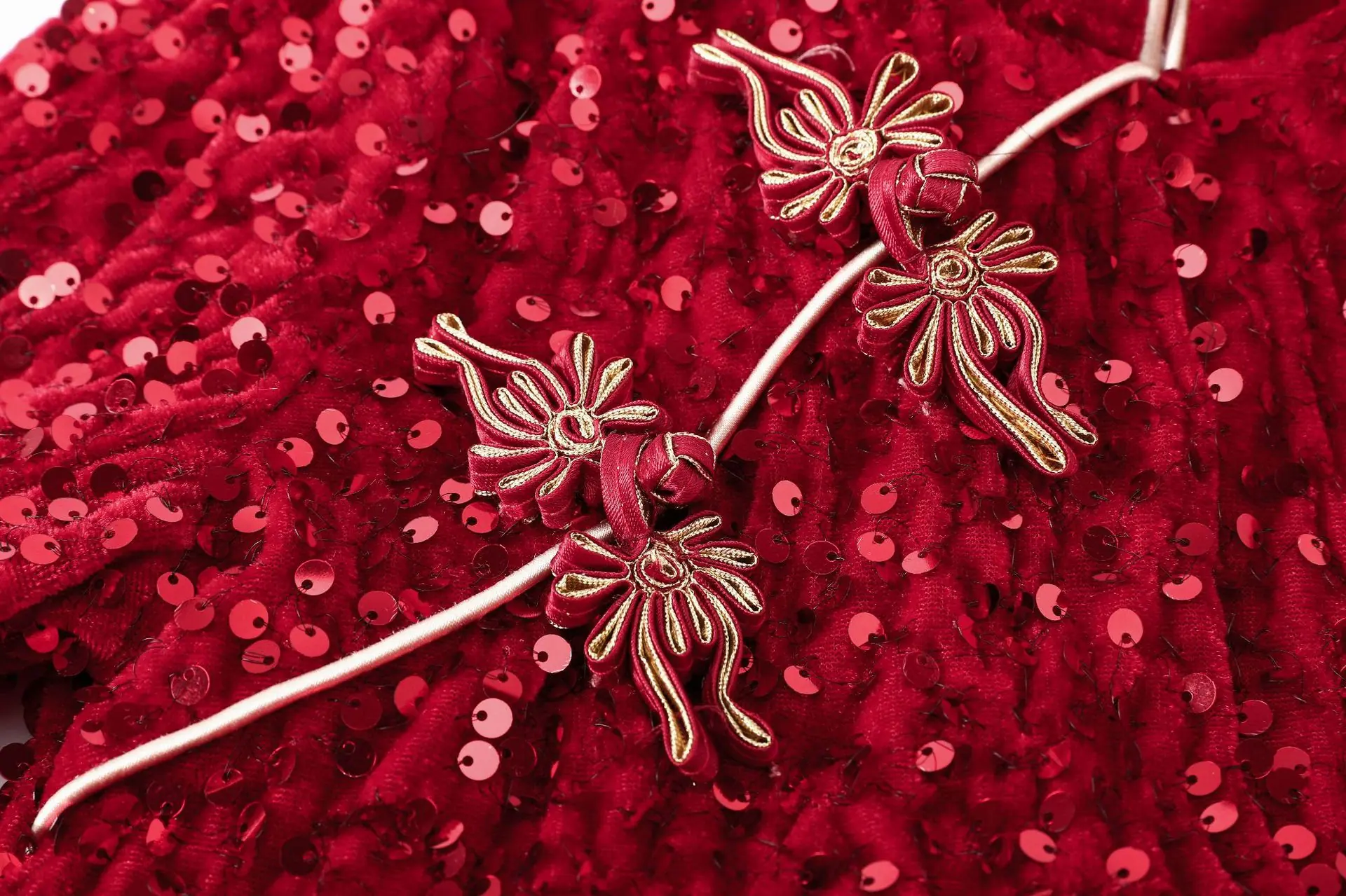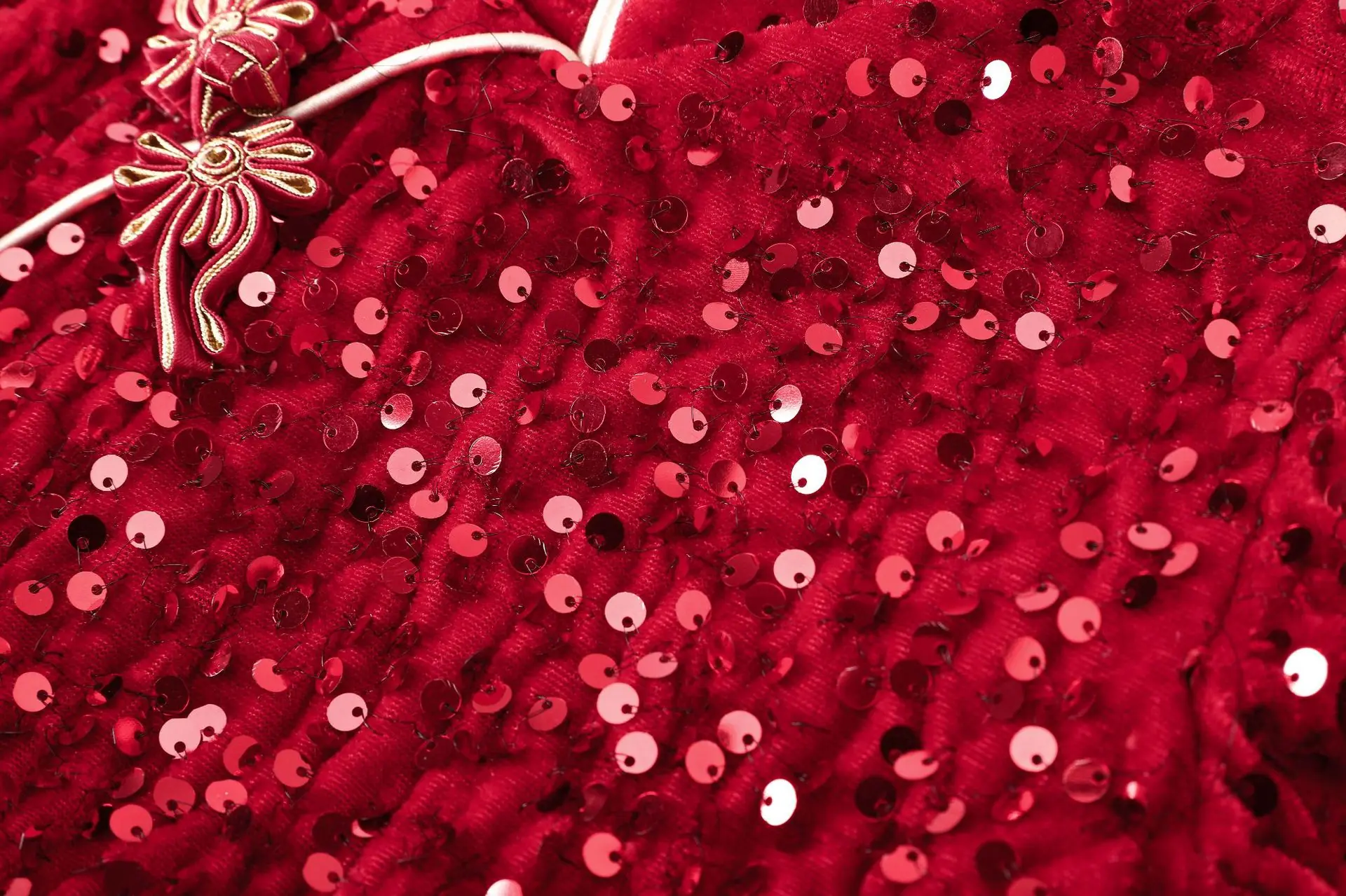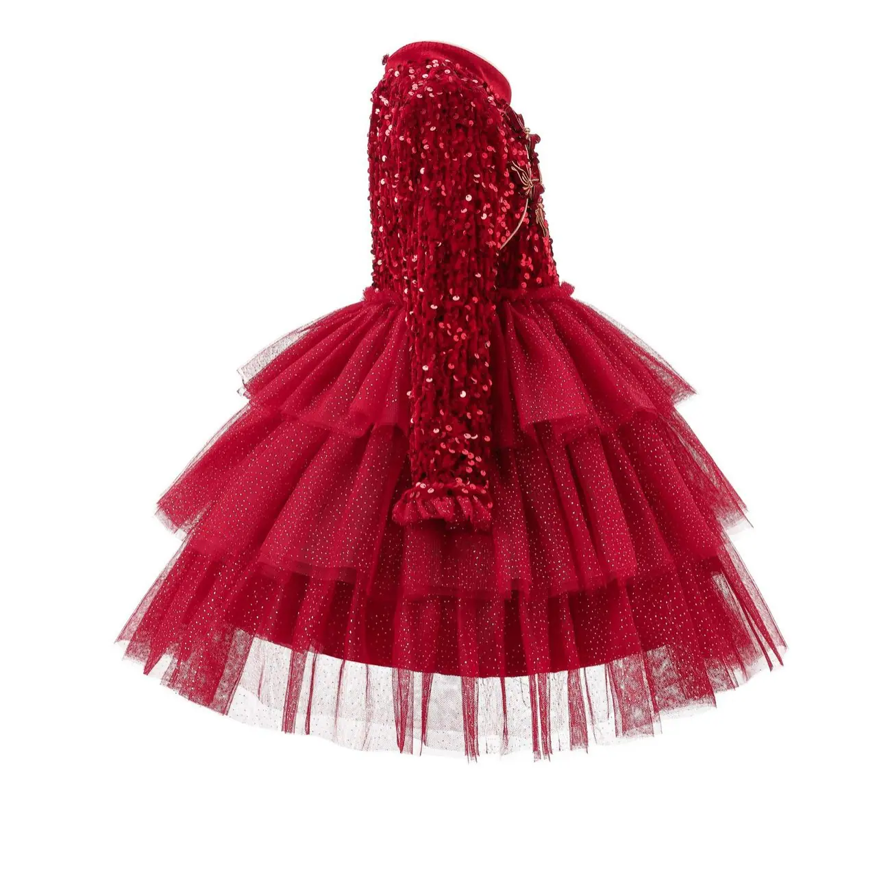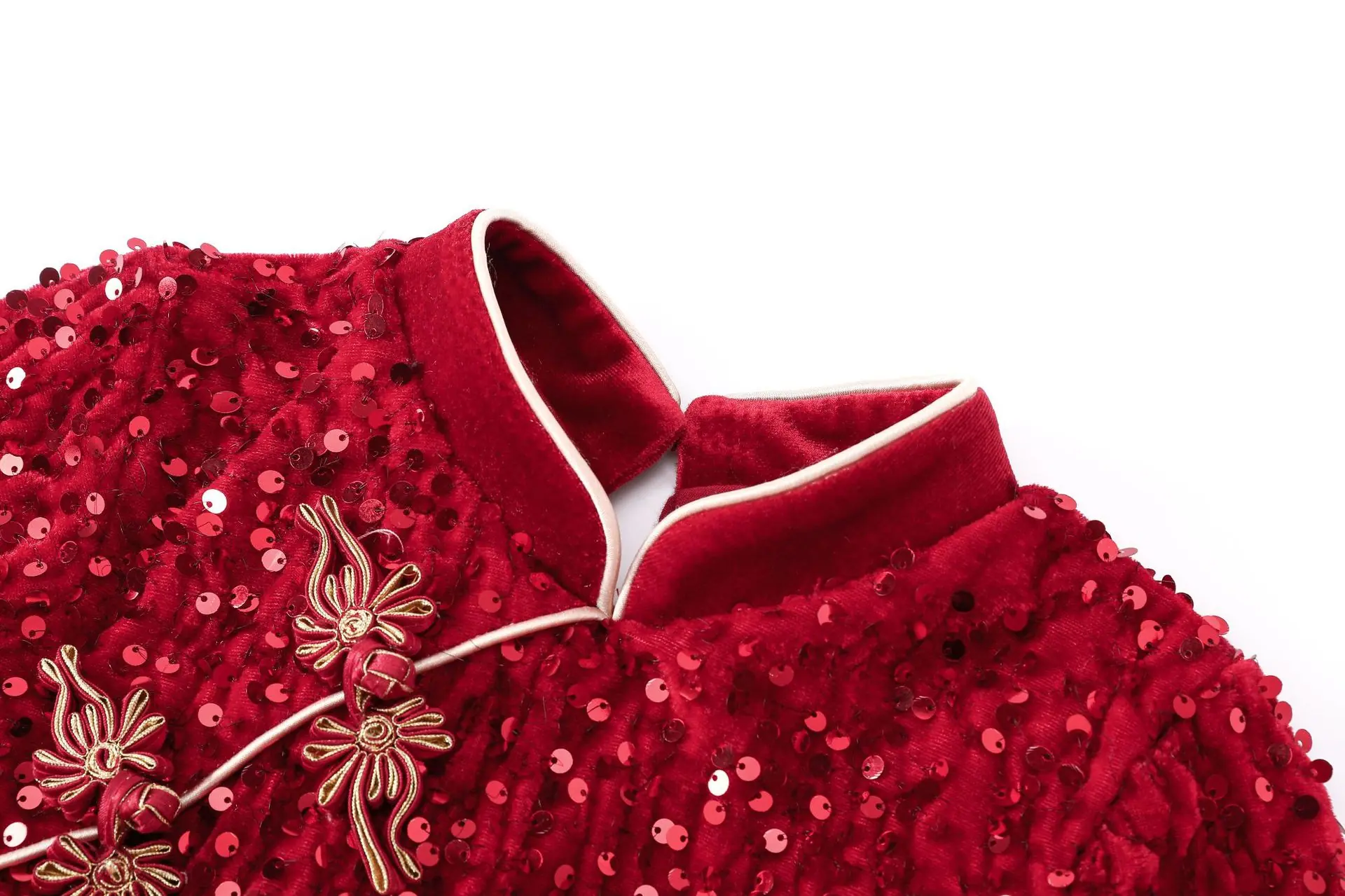 Vestido de Estilo Nacional Estilo Chino Nuevo para Niñas Otoño Invierno Manga Larga Lentejuelas Vestido de Princesa Niños Un Año de Edad Cumpleaños Año Nuevo Vestido de Noche