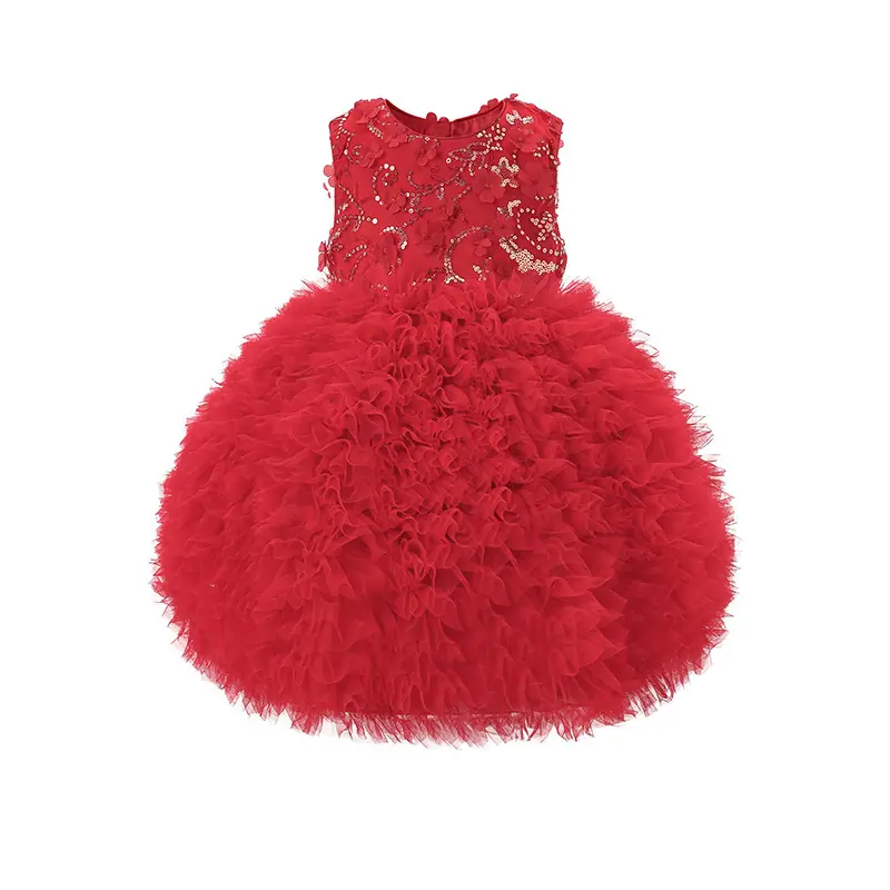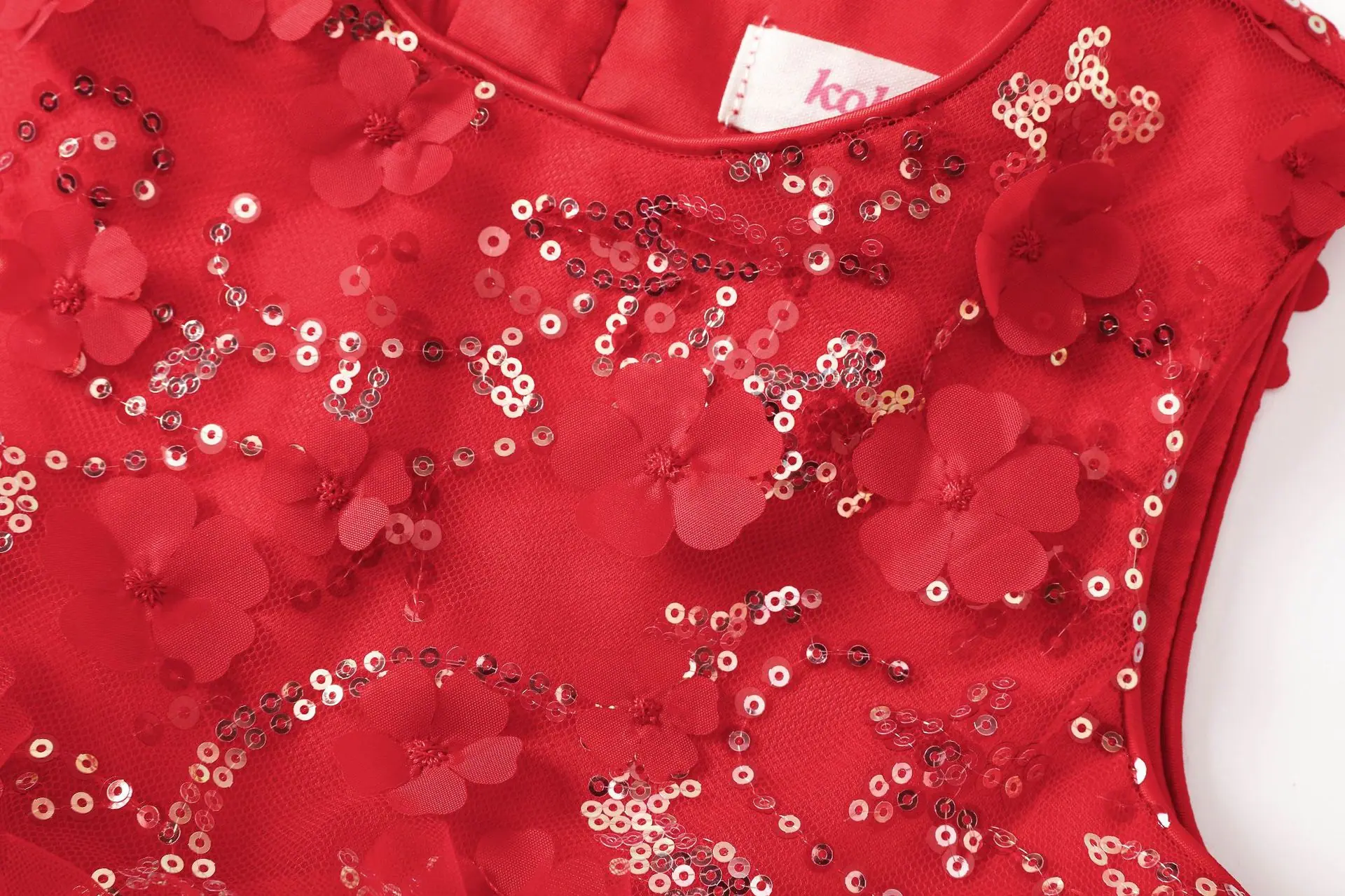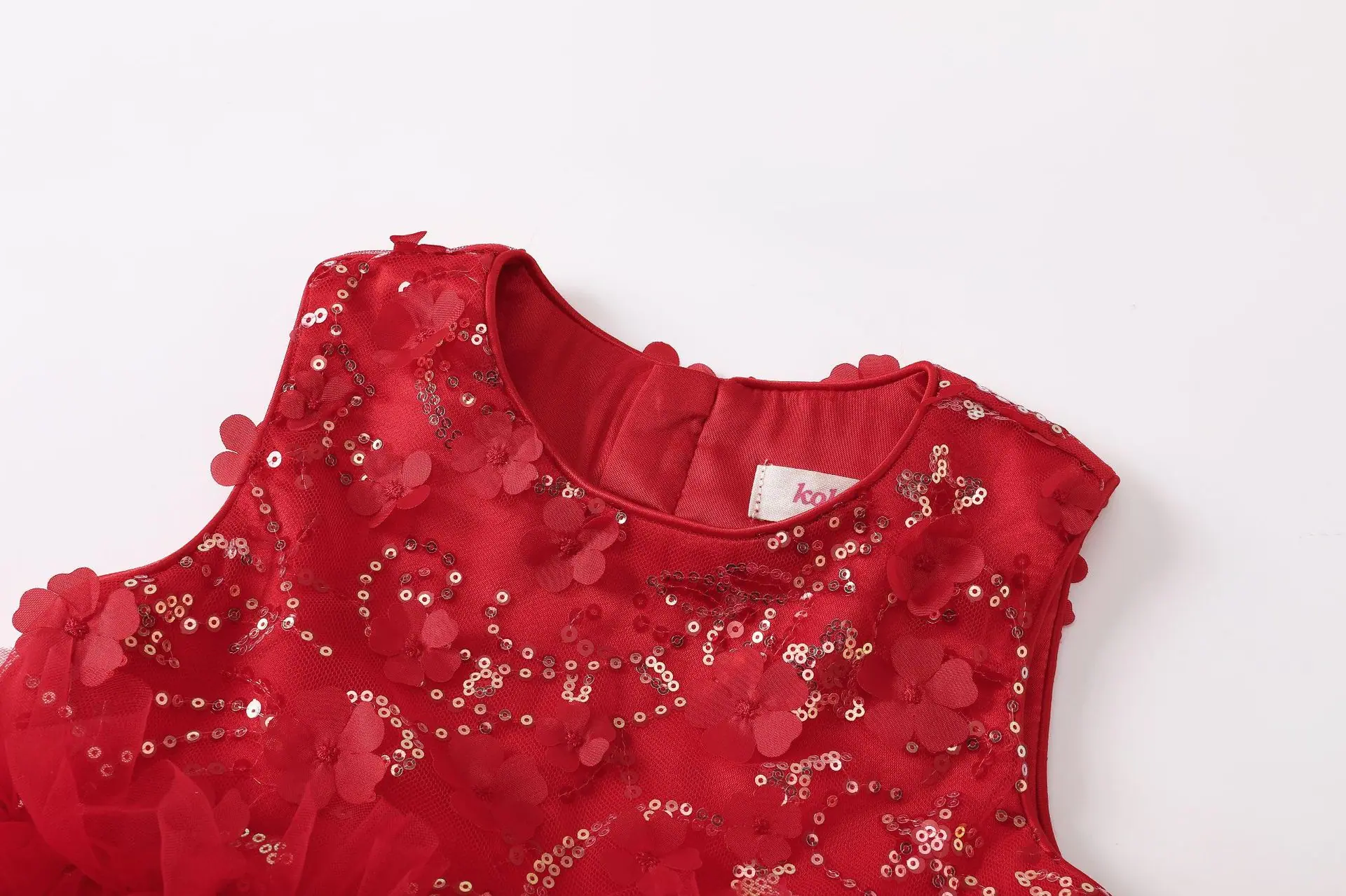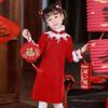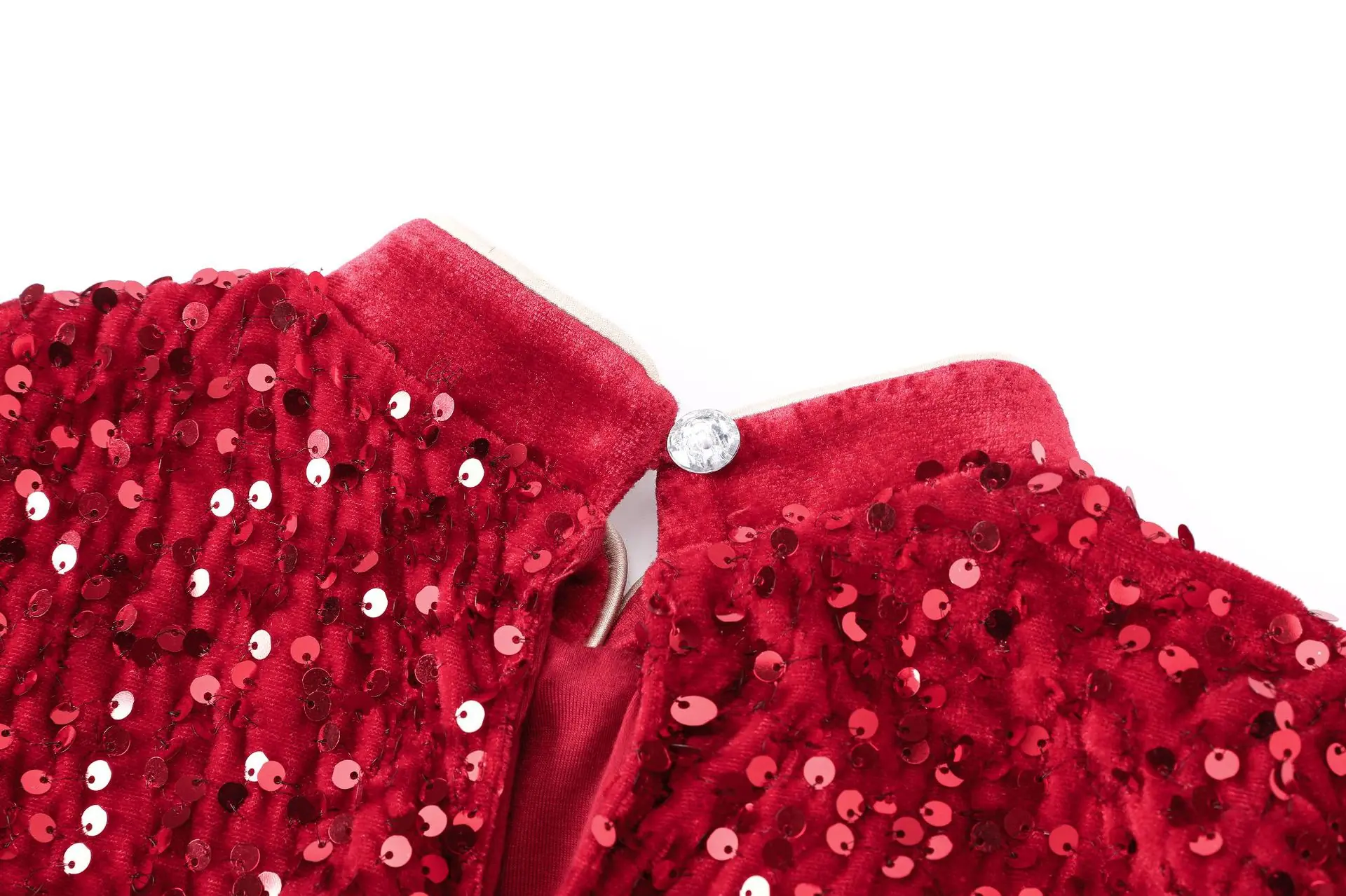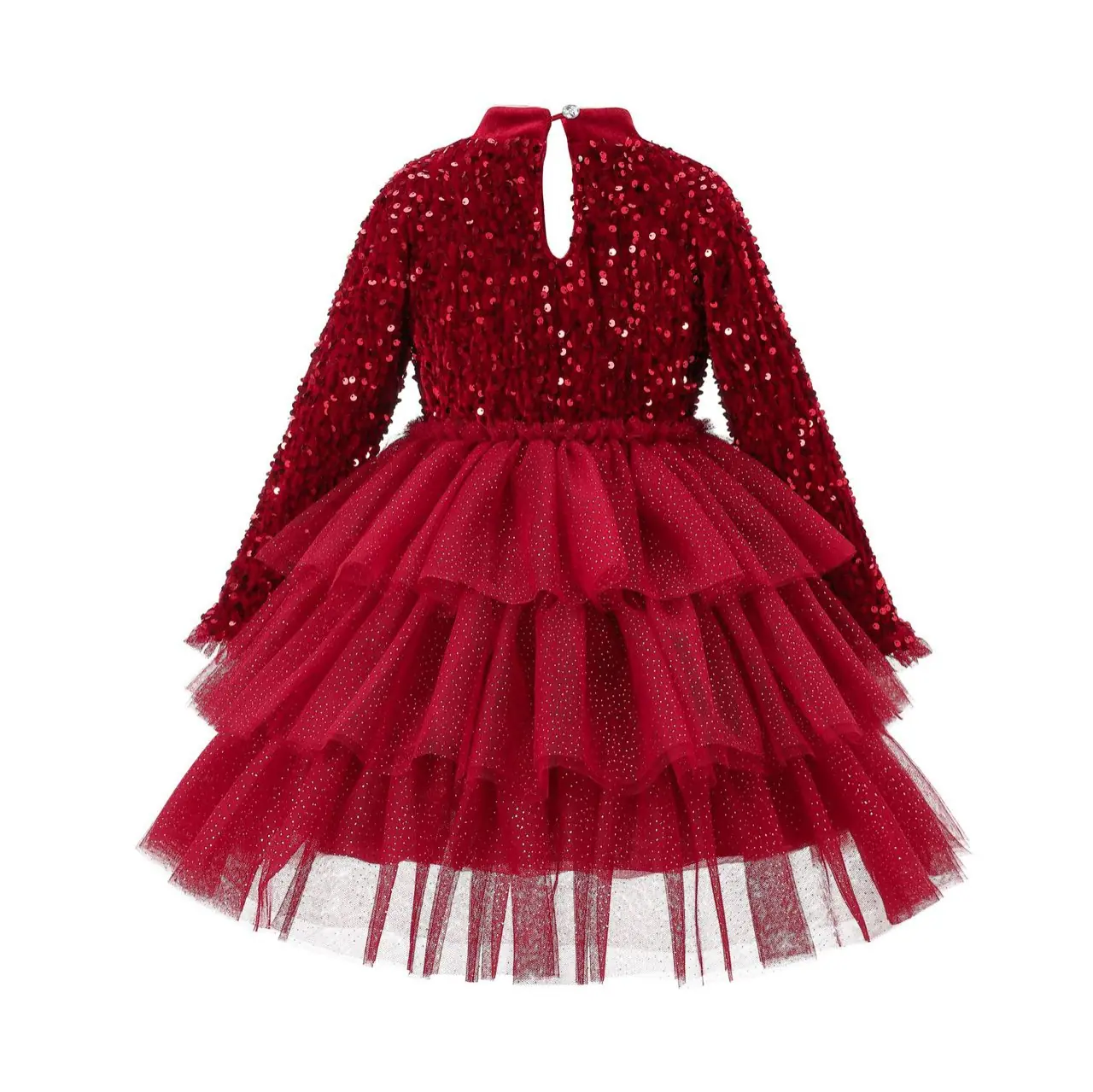 Vestido de Estilo Nacional Estilo Chino Nuevo para Niñas Otoño Invierno Manga Larga Lentejuelas Vestido de Princesa Niños Un Año de Edad Cumpleaños Año Nuevo Vestido de Noche