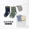 Calcetines de algodón clase A para niño, casuales, versátiles, transpirables, absorbentes del sudor, de media pantorrilla, talla pequeña y mediana para niños, de color sólido, simples, sin costuras