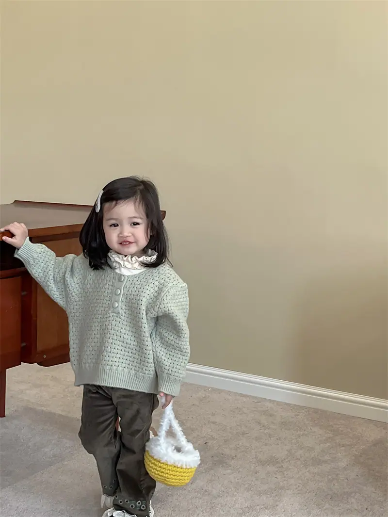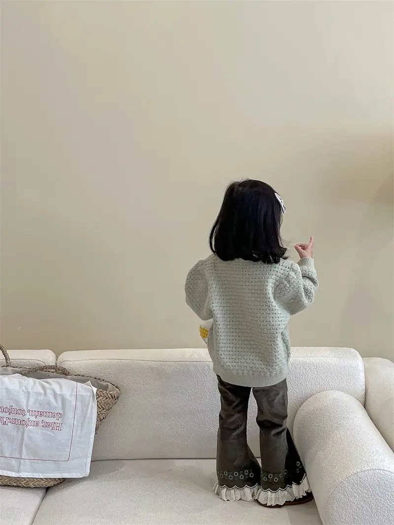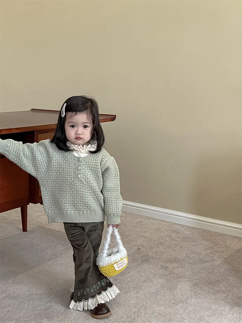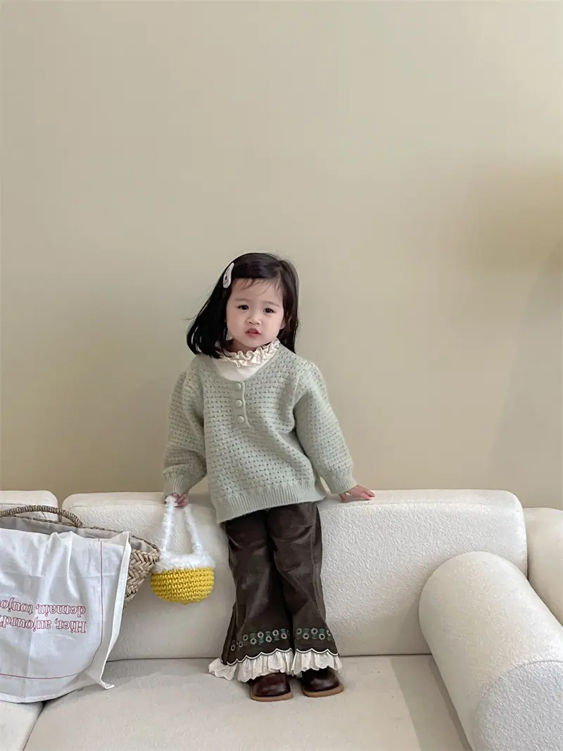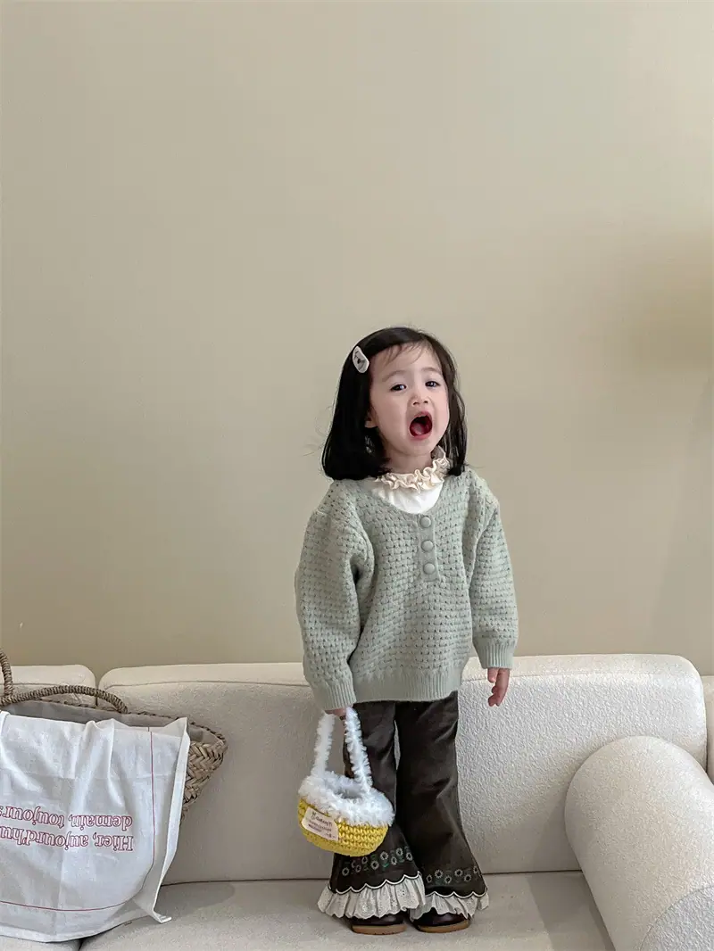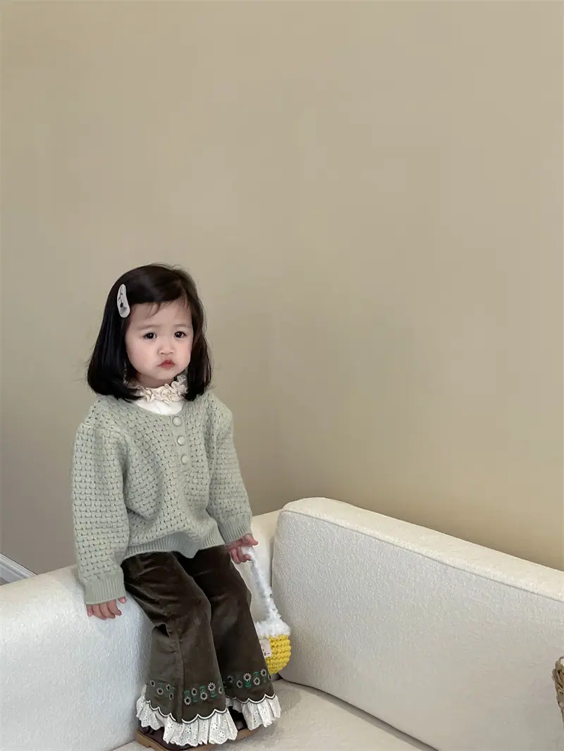 Gran Venta No Reembolsable y No Intercambiable [Pedido por Racionalidad] Suéter de Punto de Manga Larga para Niñas + Camiseta Interior + Pantalones Acampanados de Encaje