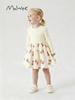 Vestido de princesa malwee para niñas transfronterizo otoño e invierno nuevo estilo europeo y americano niños medianos y pequeños vestido de moda cuello redondo manga larga niños