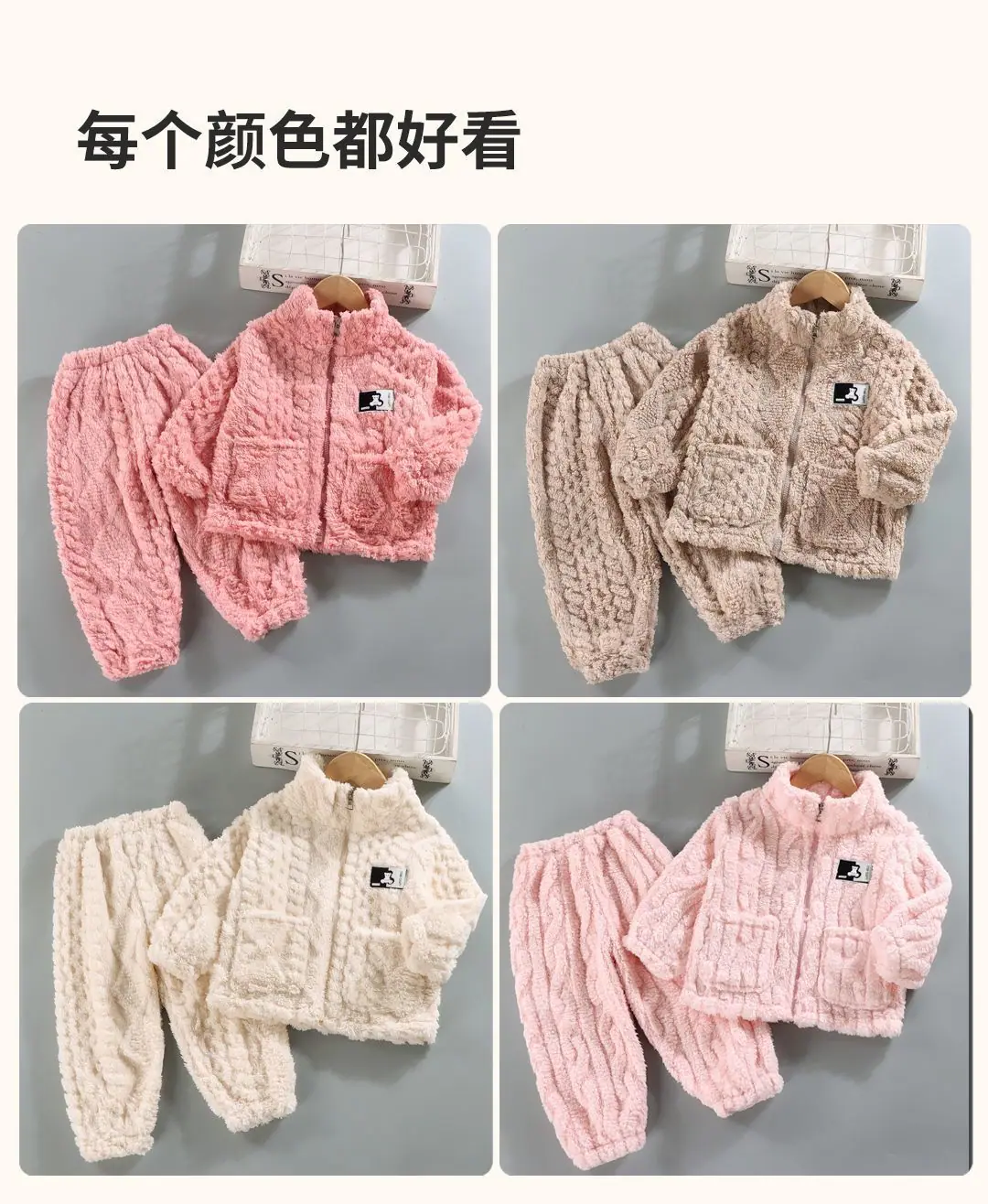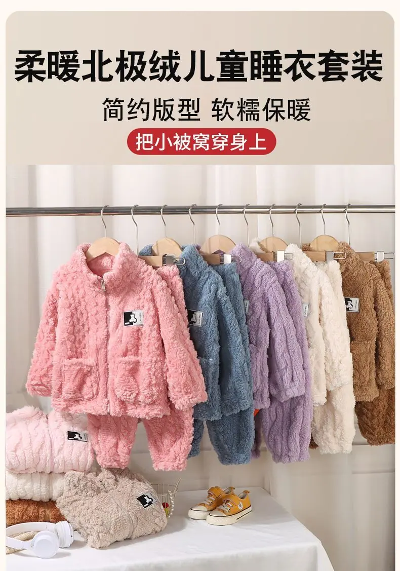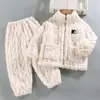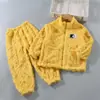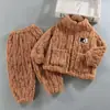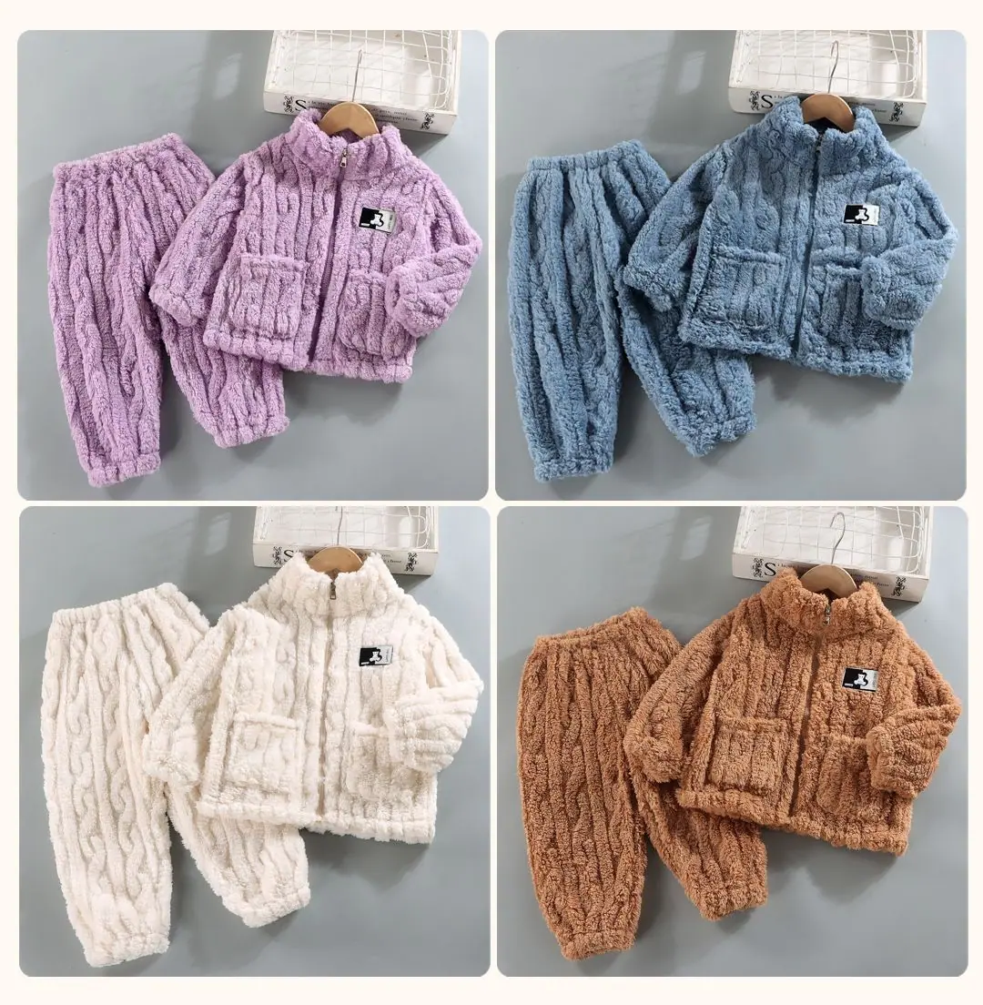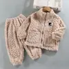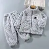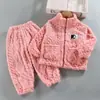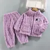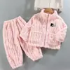 Pijama de forro polar coral para niñas de otoño e invierno, estilo invierno, ropa de casa gruesa para niños y niñas, set de franela para bebé