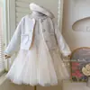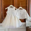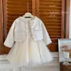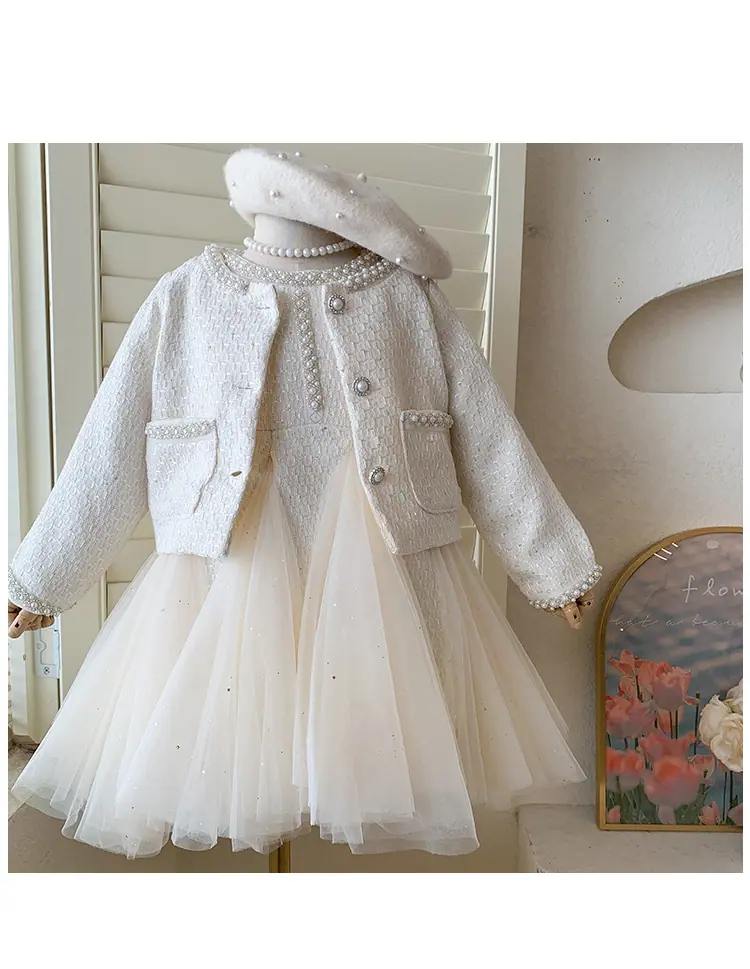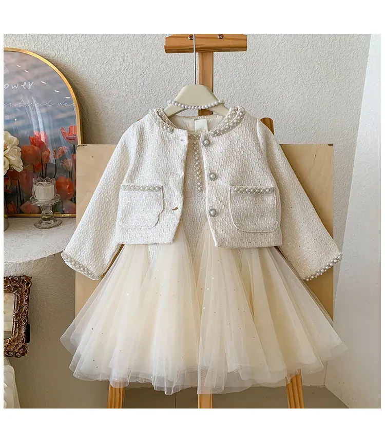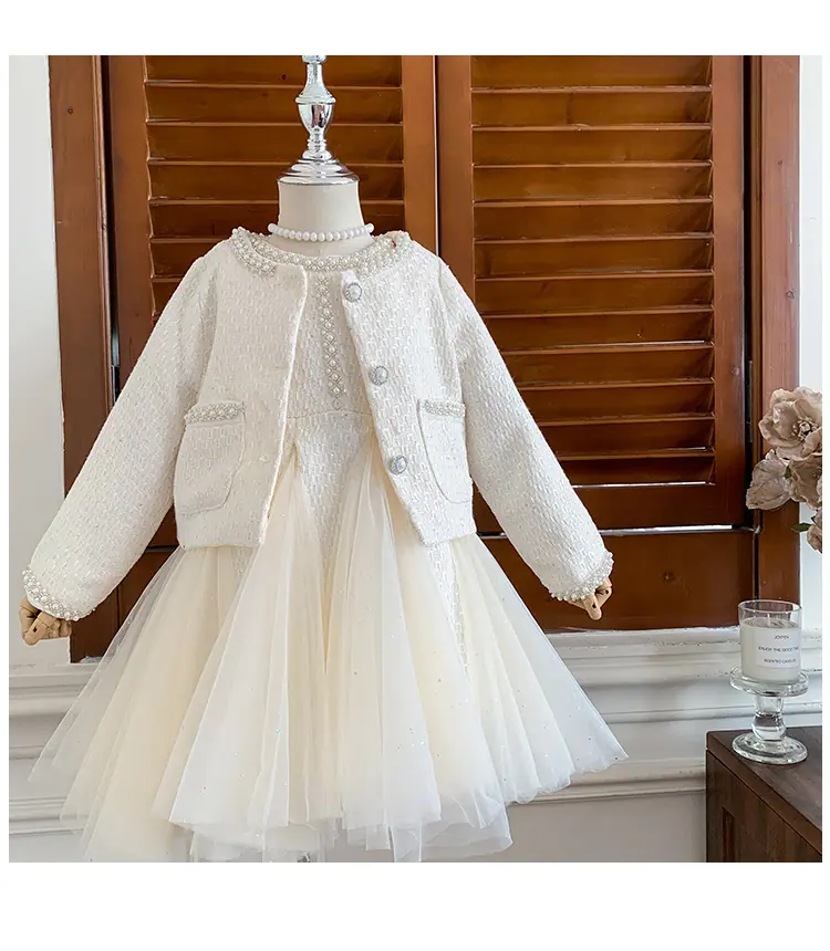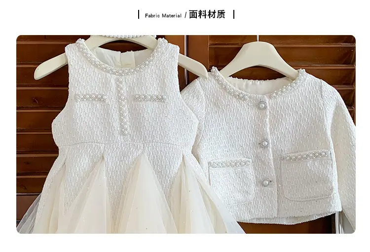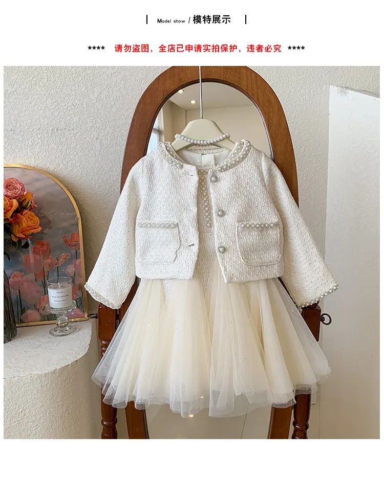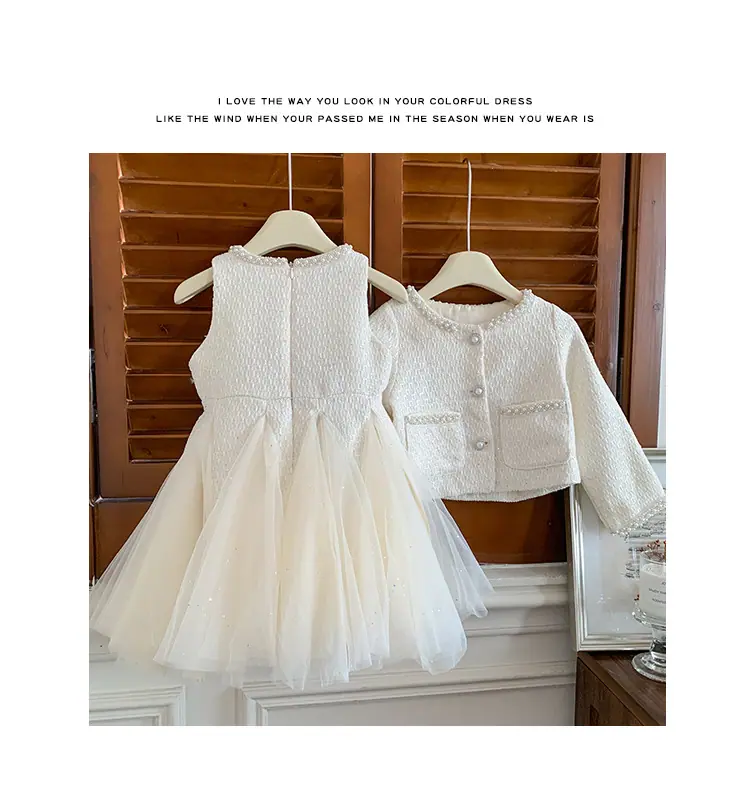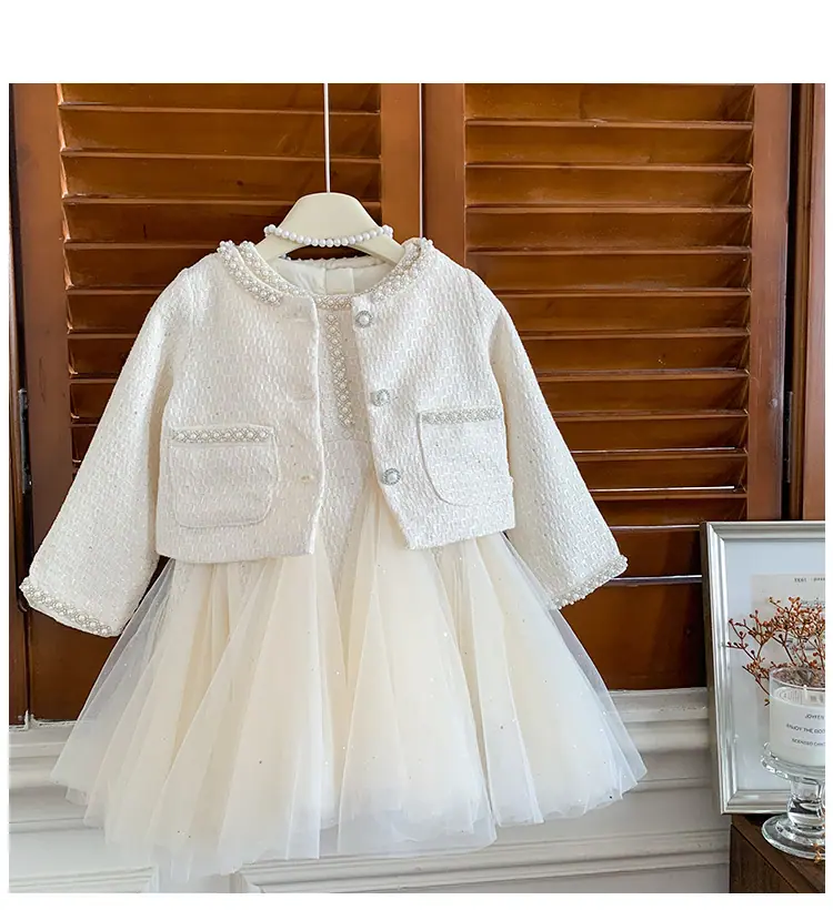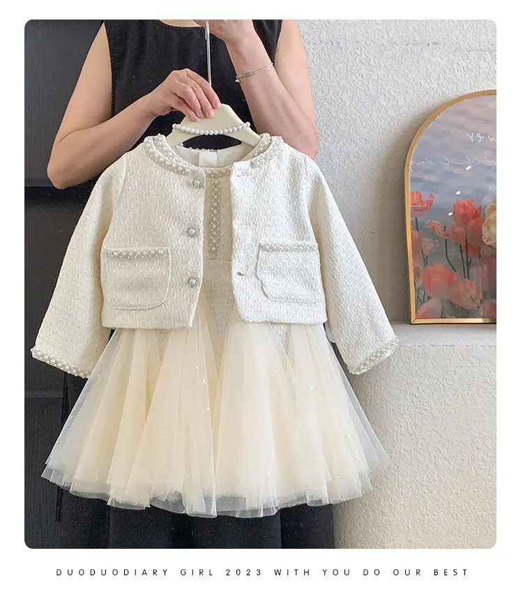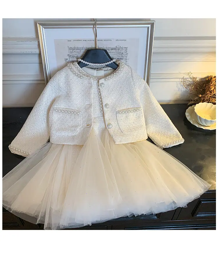Ropa de Otoño para Niñas 2025 Nuevo Vestido de Gasa sin Mangas de Otoño para Bebé a la Moda Chaqueta Infantil de Otoño de Estilo Chanel Conjunto de Dos Piezas
