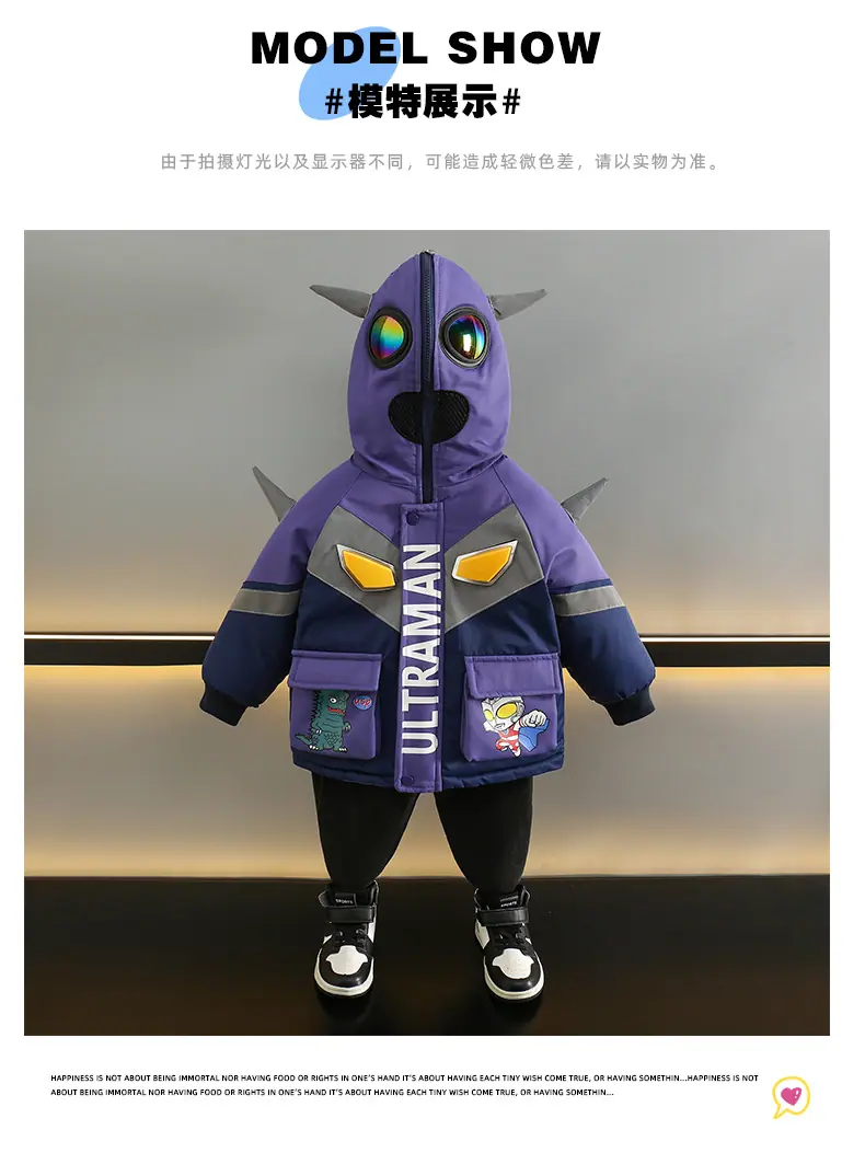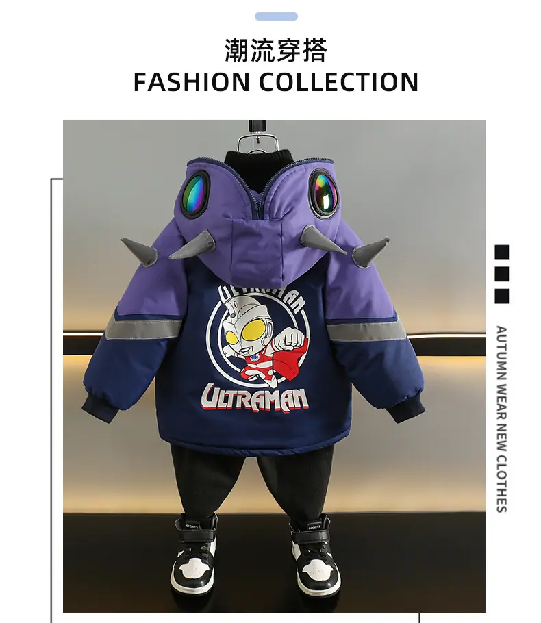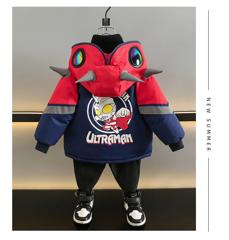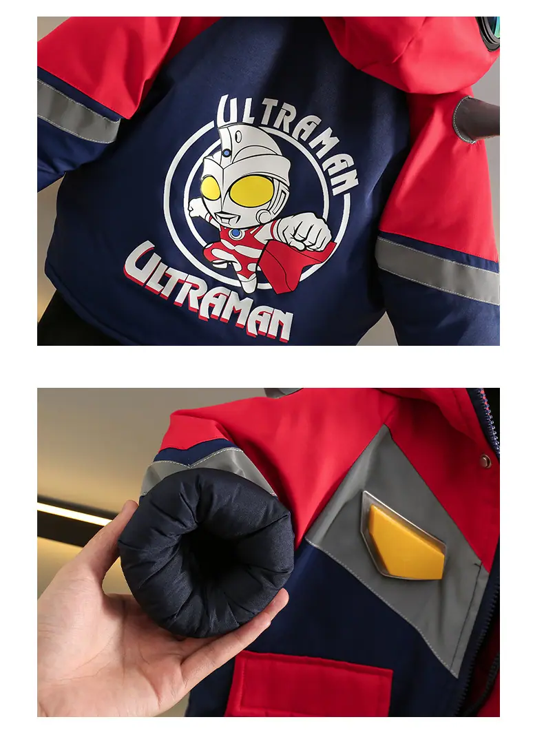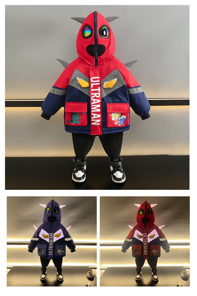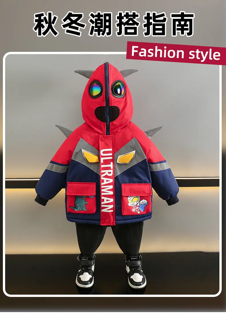 Chaqueta de Algodón para Niños Ultraman Abrigo de Invierno para Niños 2025 Nueva Moda Bebé Invierno Gruesa Acolchada de Algodón Punks Tendencia Cool