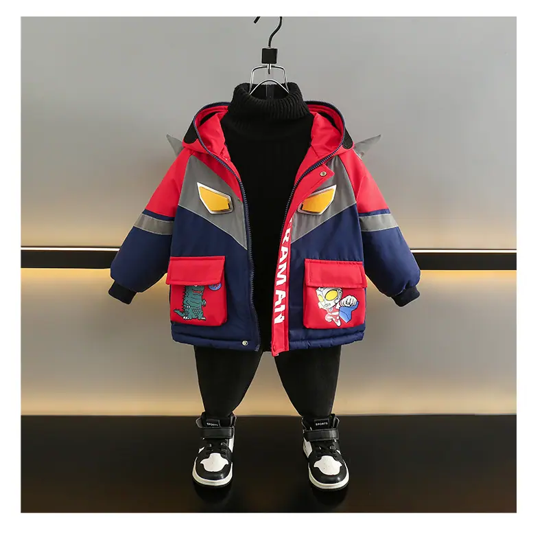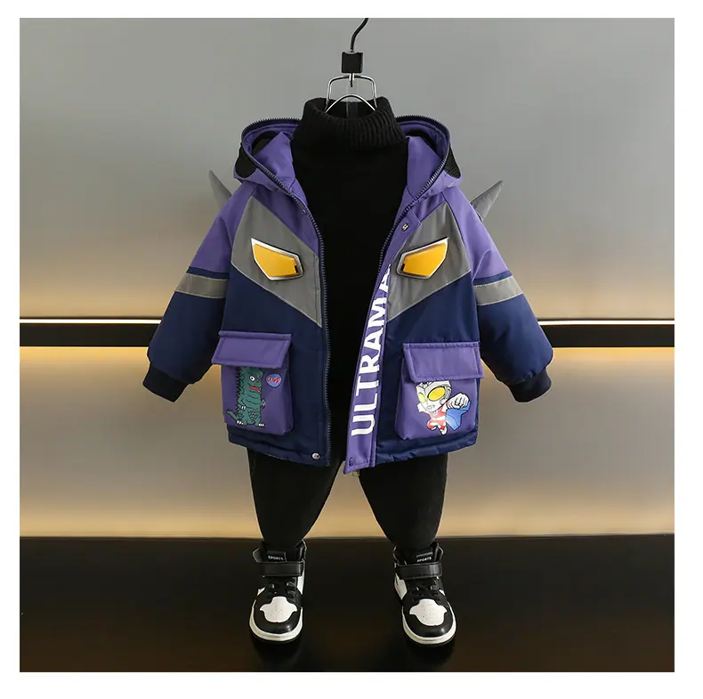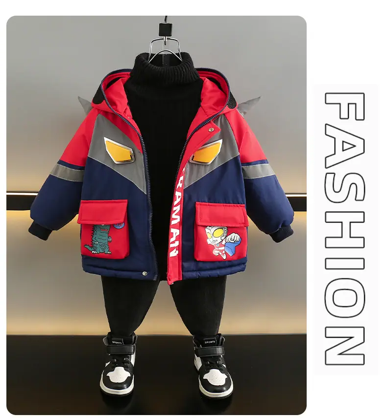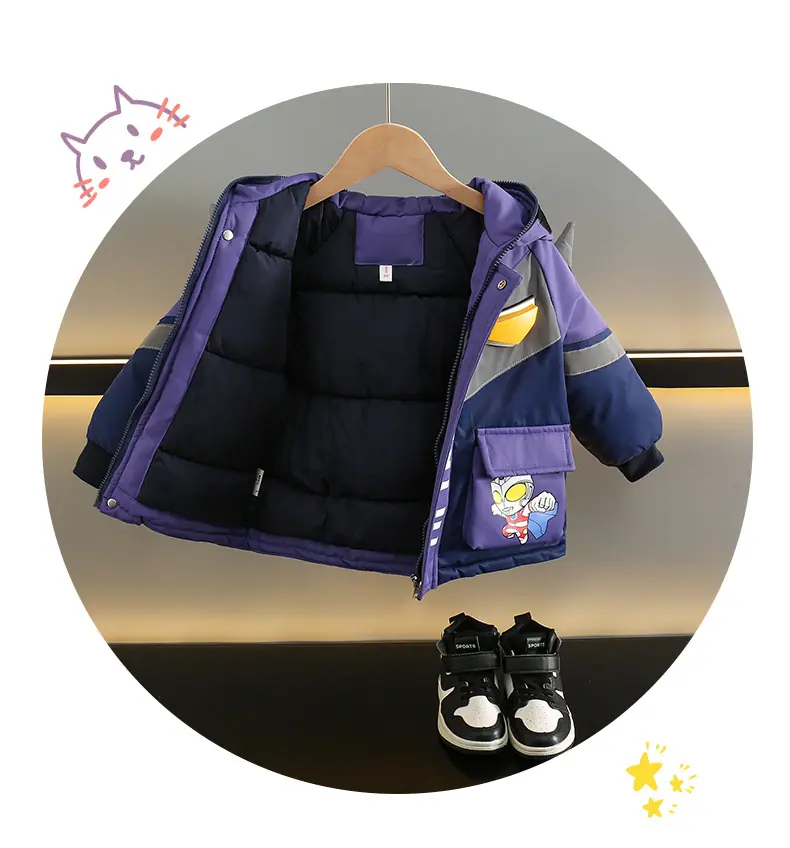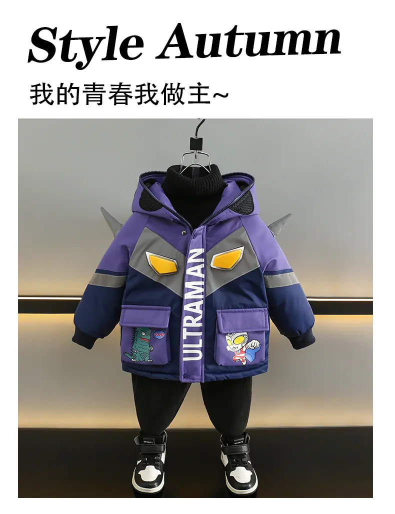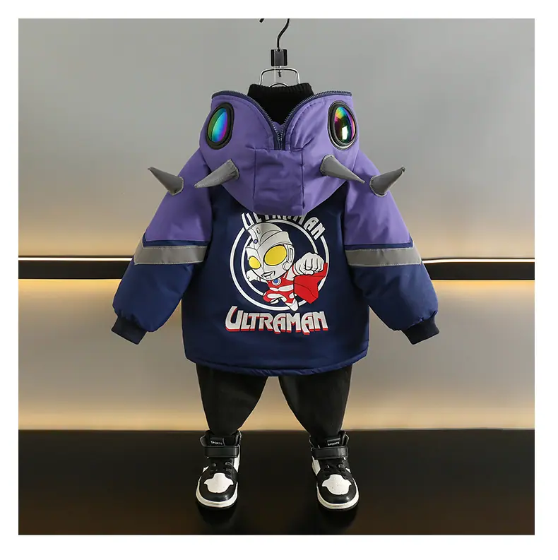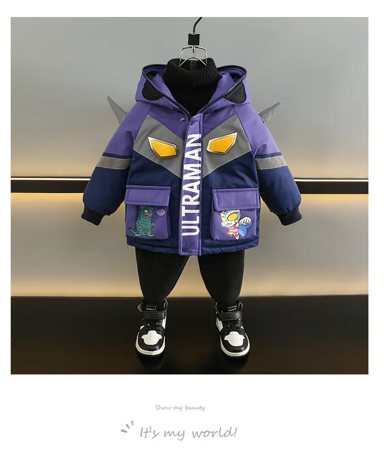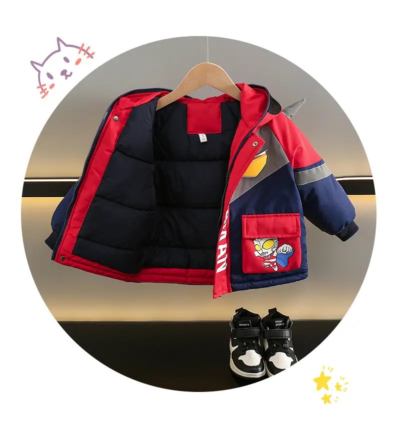 Chaqueta de Algodón para Niños Ultraman Abrigo de Invierno para Niños 2025 Nueva Moda Bebé Invierno Gruesa Acolchada de Algodón Punks Tendencia Cool