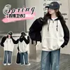 Sudadera para Niñas Primavera y Otoño 2026 Nueva Elegante Sudadera con Capucha de Bloques de Color con Cuello de Media Cremallera para Niñas Mayores Ropa Deportiva