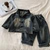 Traje de mezclilla para niño 2024 Nuevo Estilo Chino Moda Infantil para Niño Primavera y Otoño Nuevo Conjunto de Dos Piezas Chino