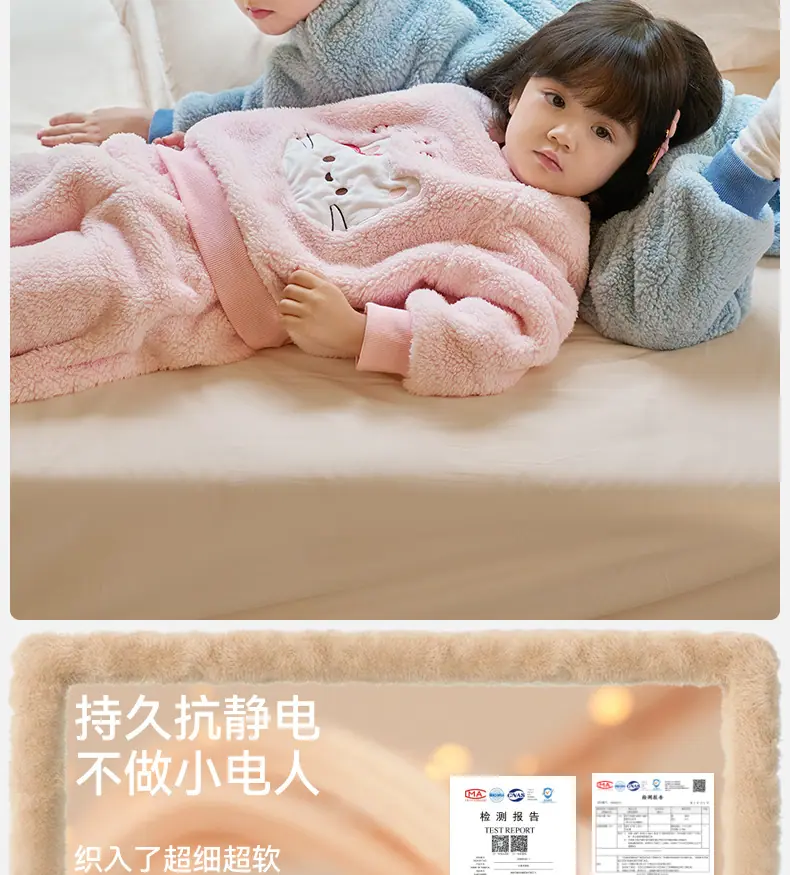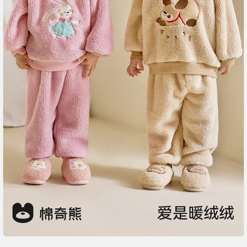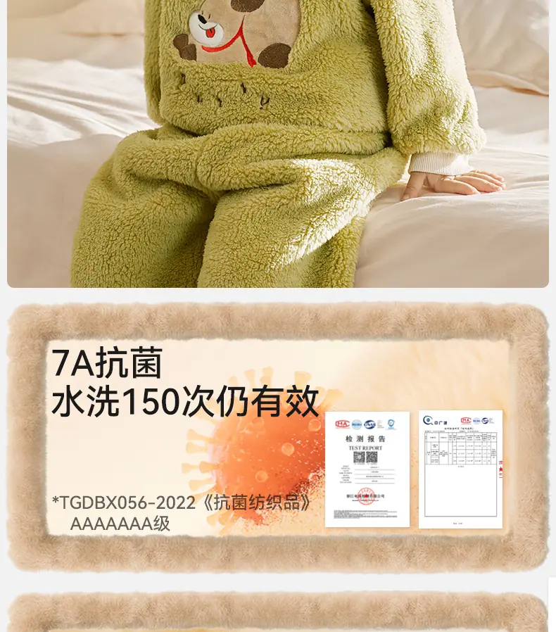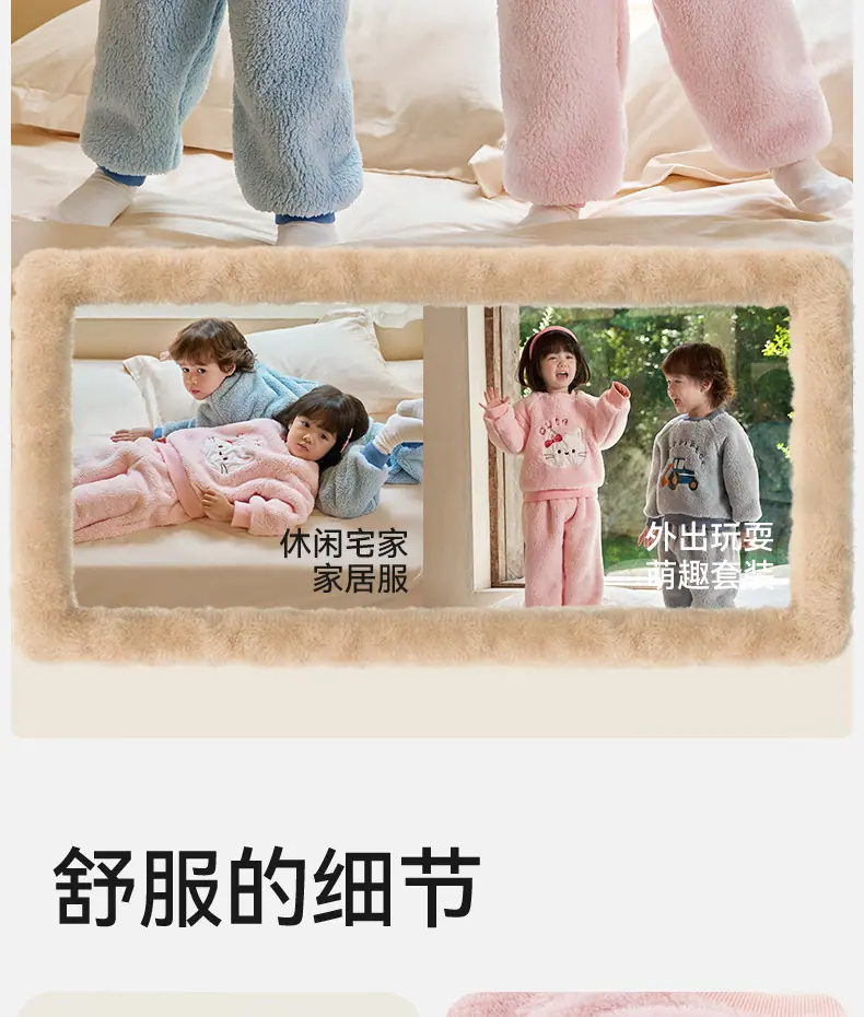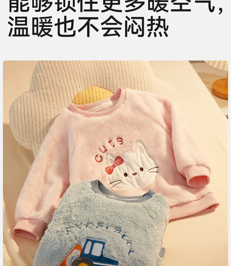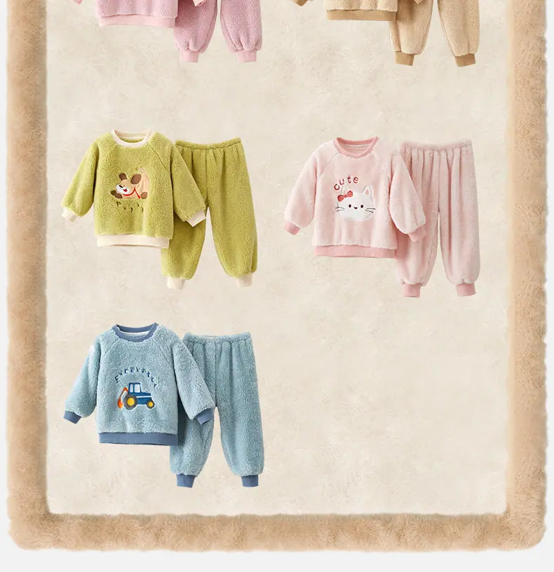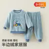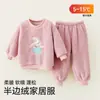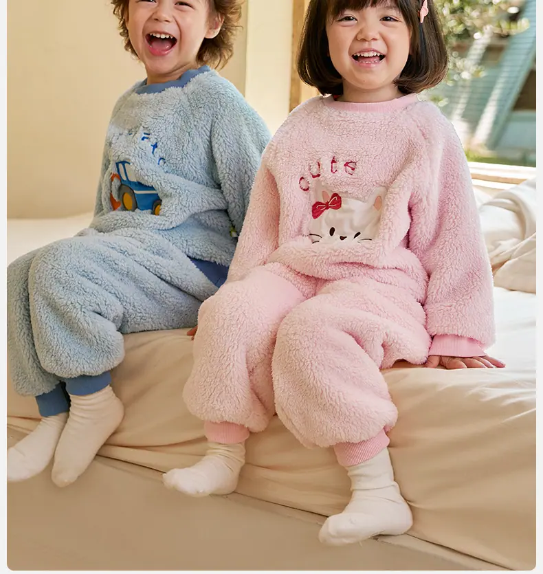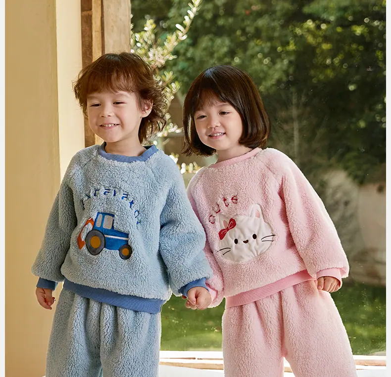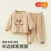 Pijamas para niños Otoño e Invierno Niños y Niñas Cálido Grueso Ropa Exterior Ropa para el Hogar Bebé Forro Polar Antibacteriano Franela Set