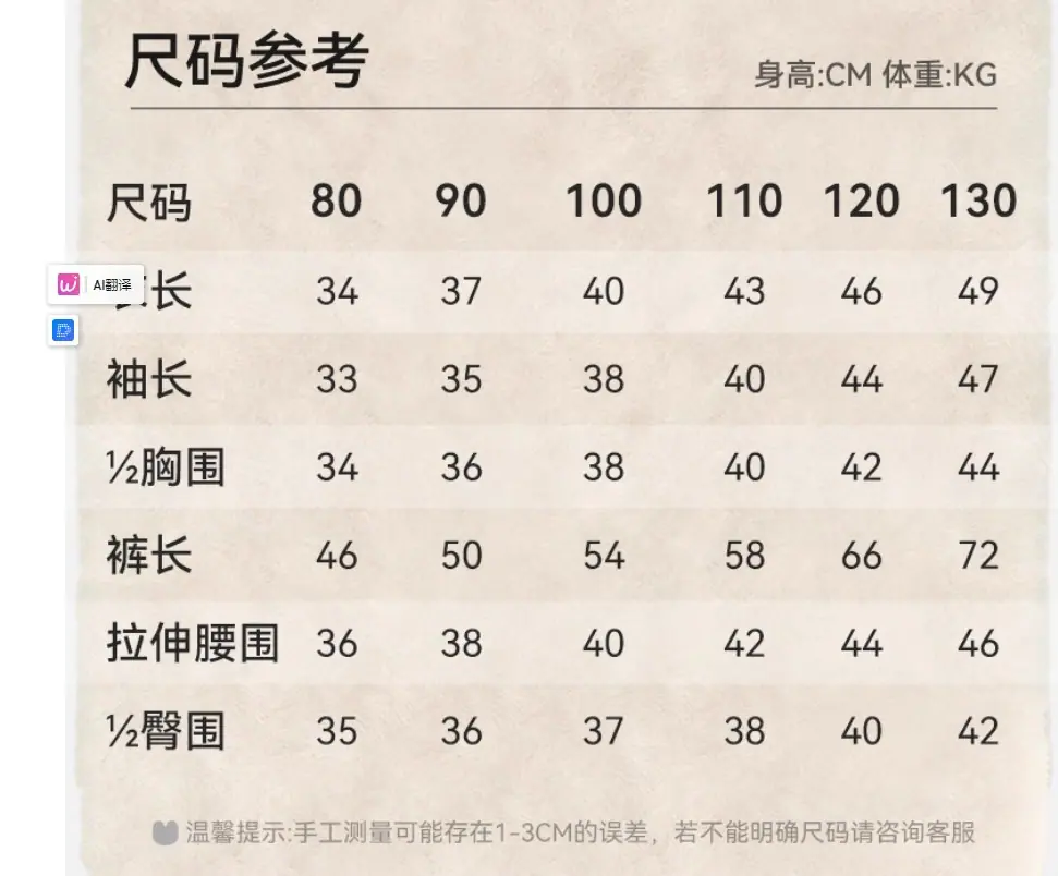 80cm, 90cm, 100cm, 110cm, 120cm, 130cm