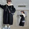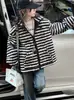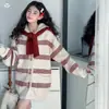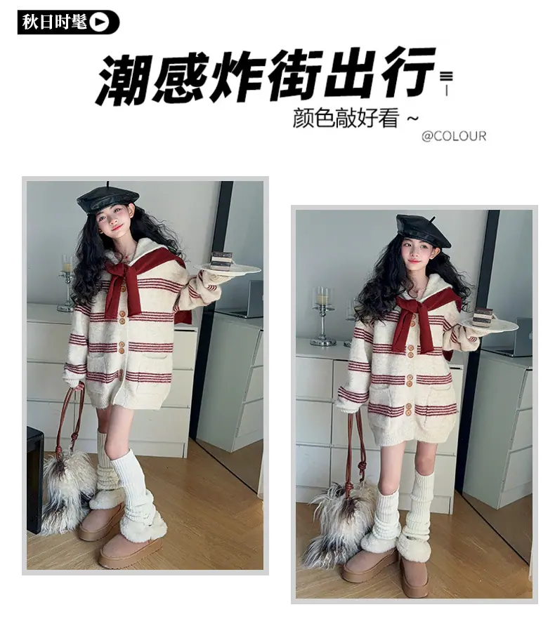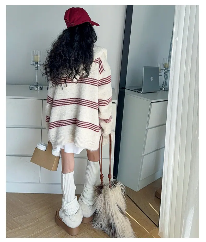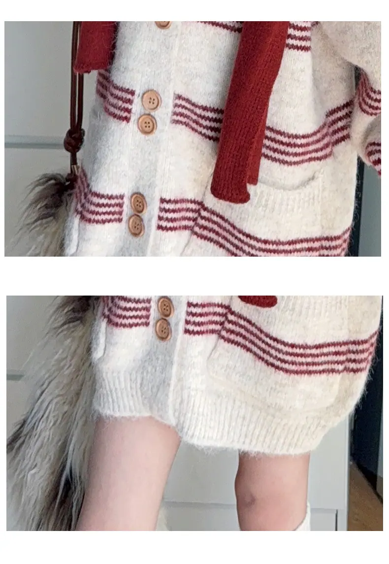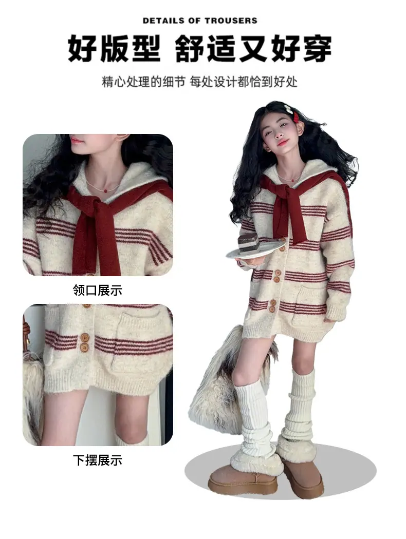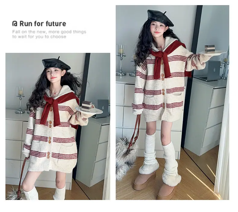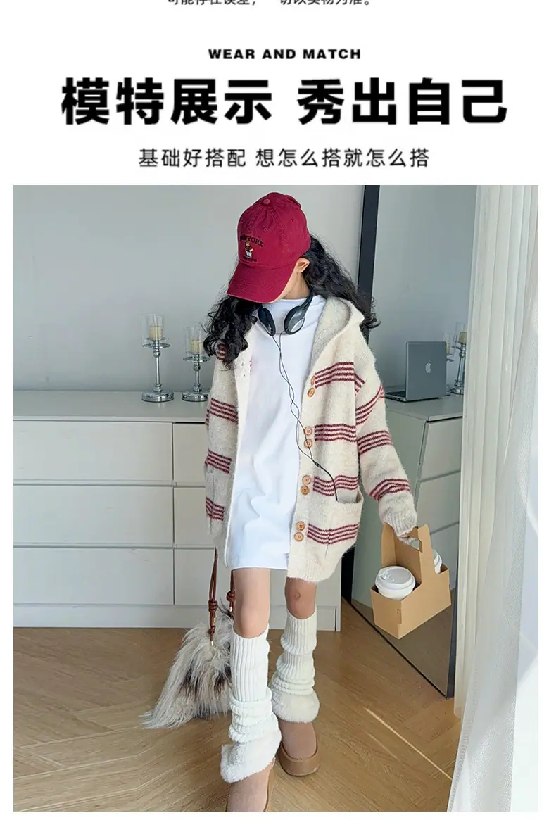 Vestido Cárdigan de Punto Grueso Rayado de Estilo Coreano con Capucha Larga para Niñas Otoño e Invierno Chal Suéter Abrigo para Niñas Grandes Primavera y Otoño