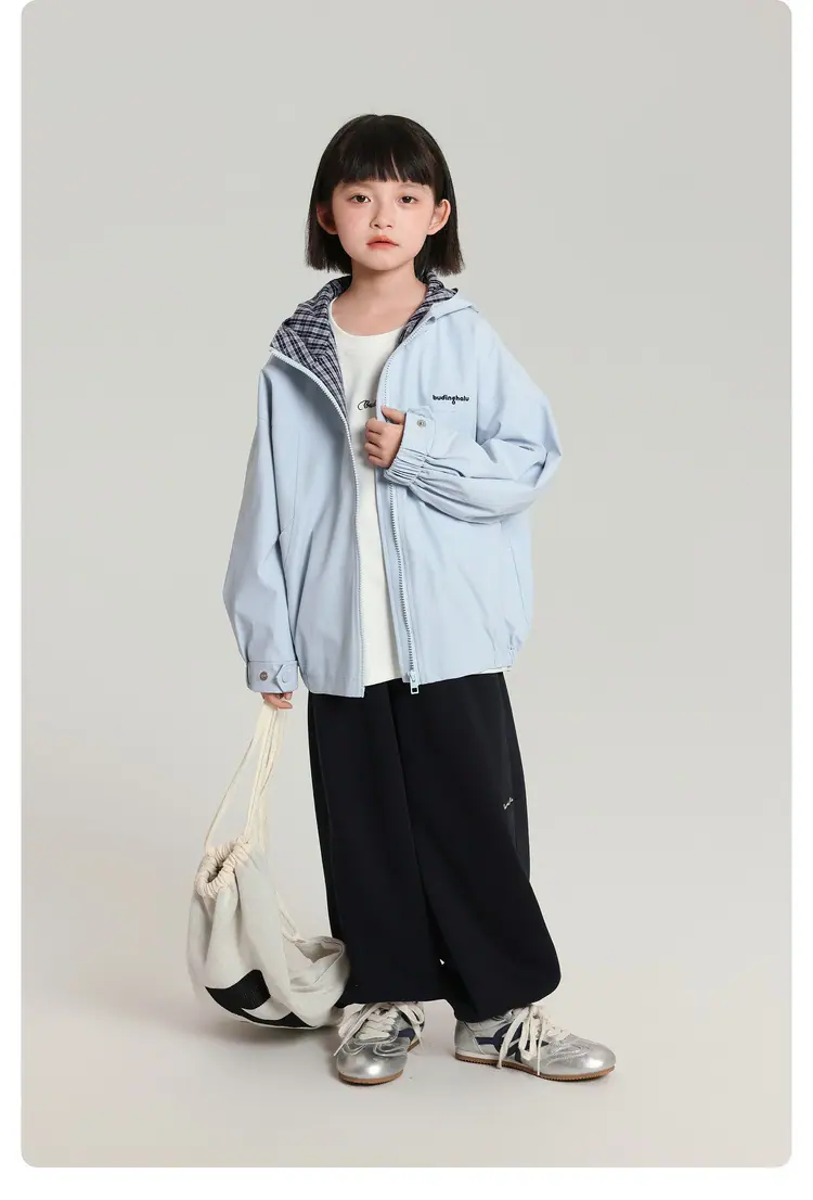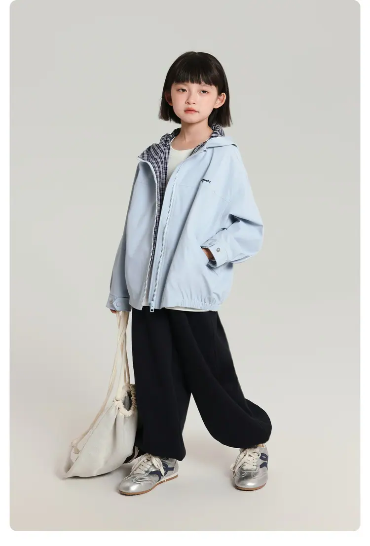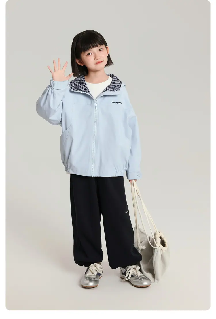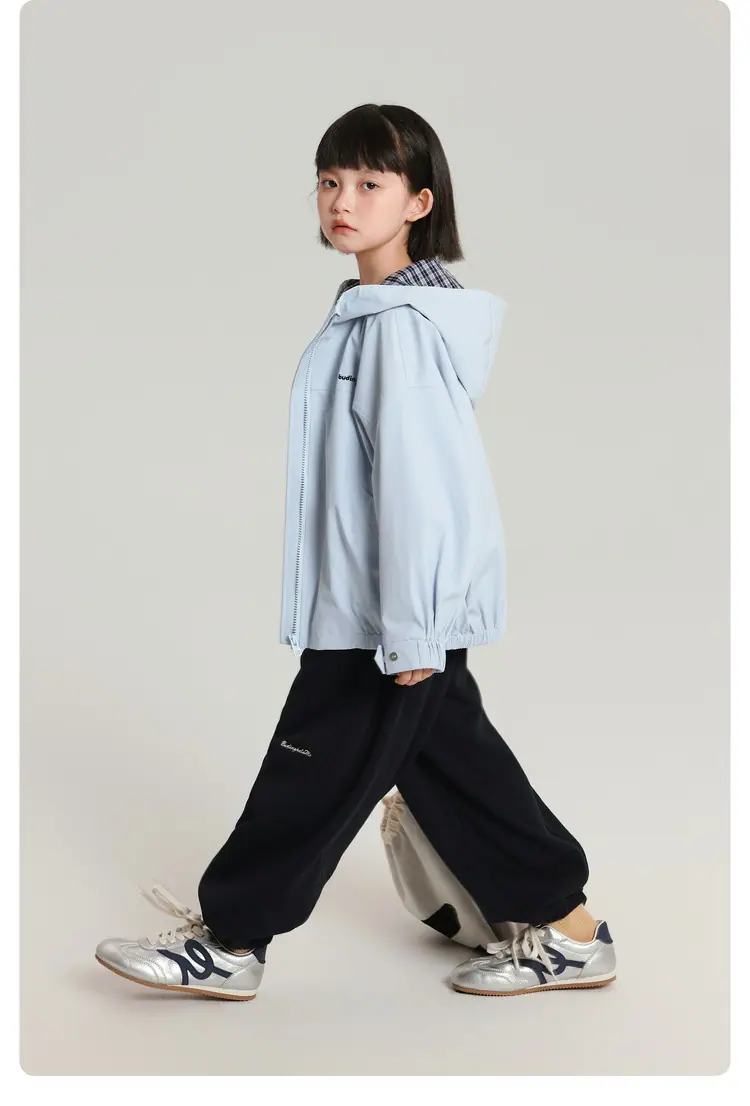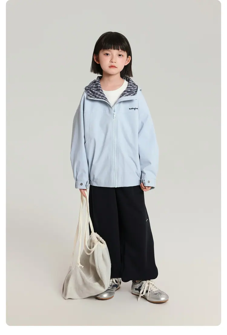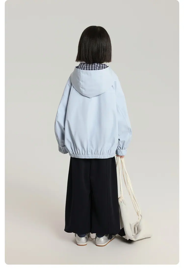 Pudding Haru Ropa Infantil Chaqueta con Capucha a Cuadros Patchwork para Niñas 2025 Otoño Nuevo Estilo Chaqueta Cortavientos Infantil