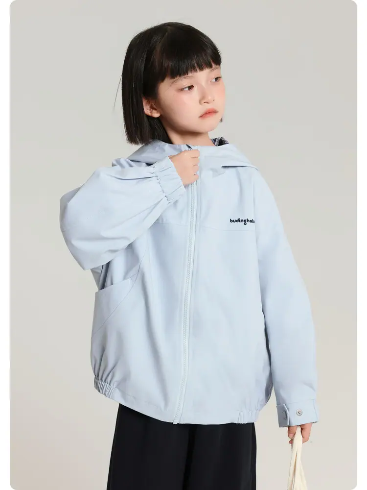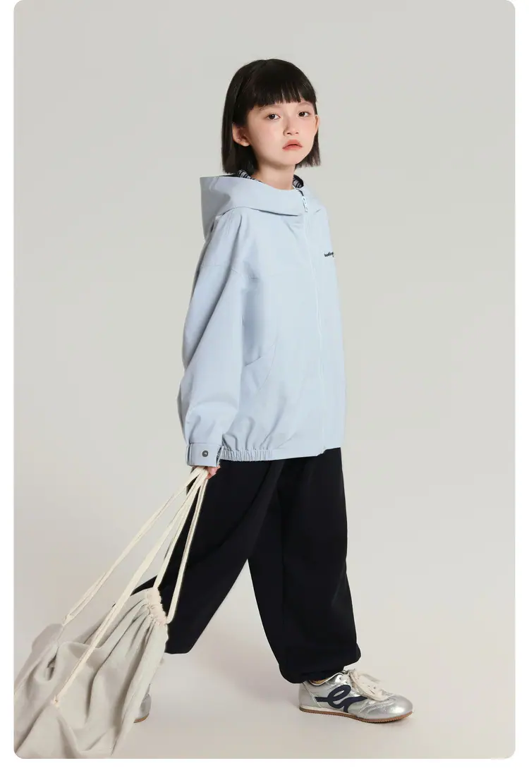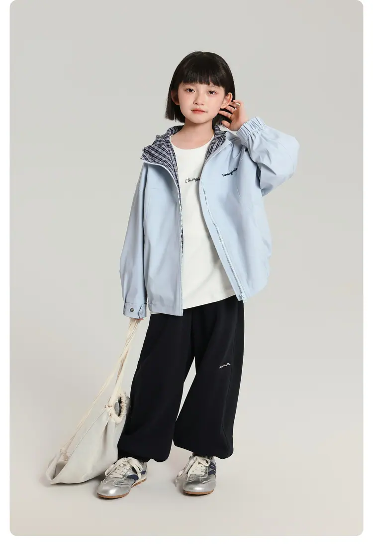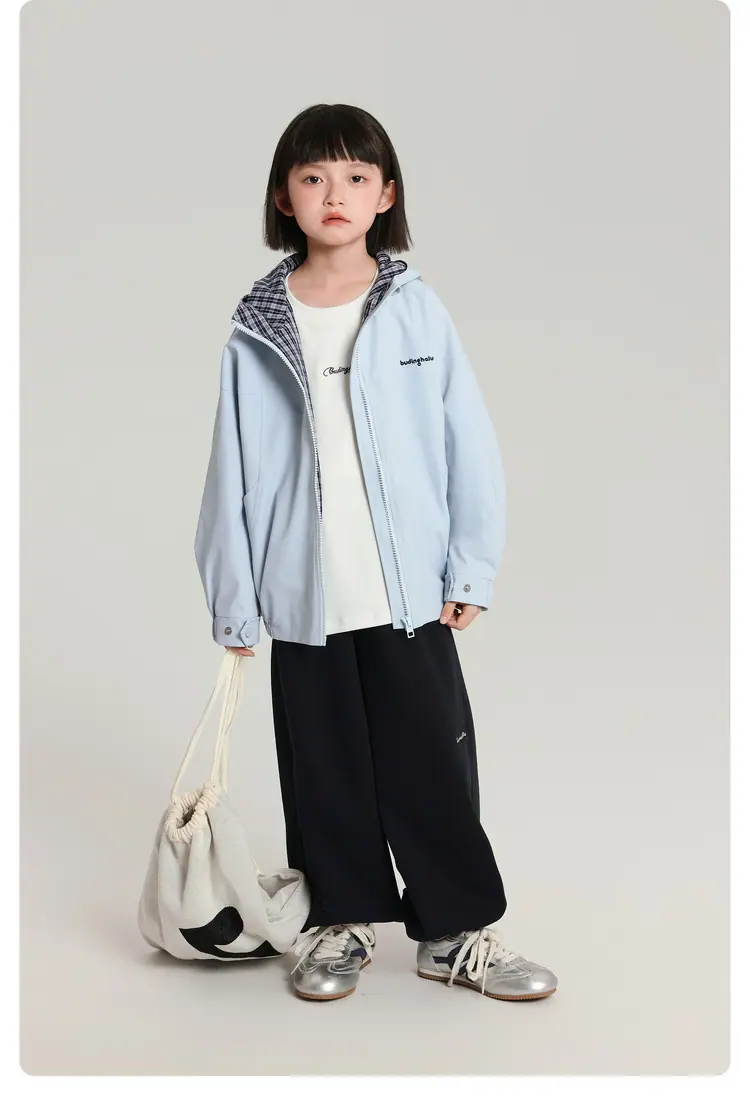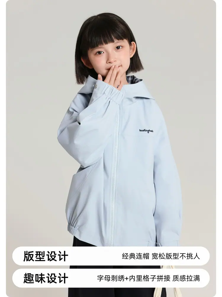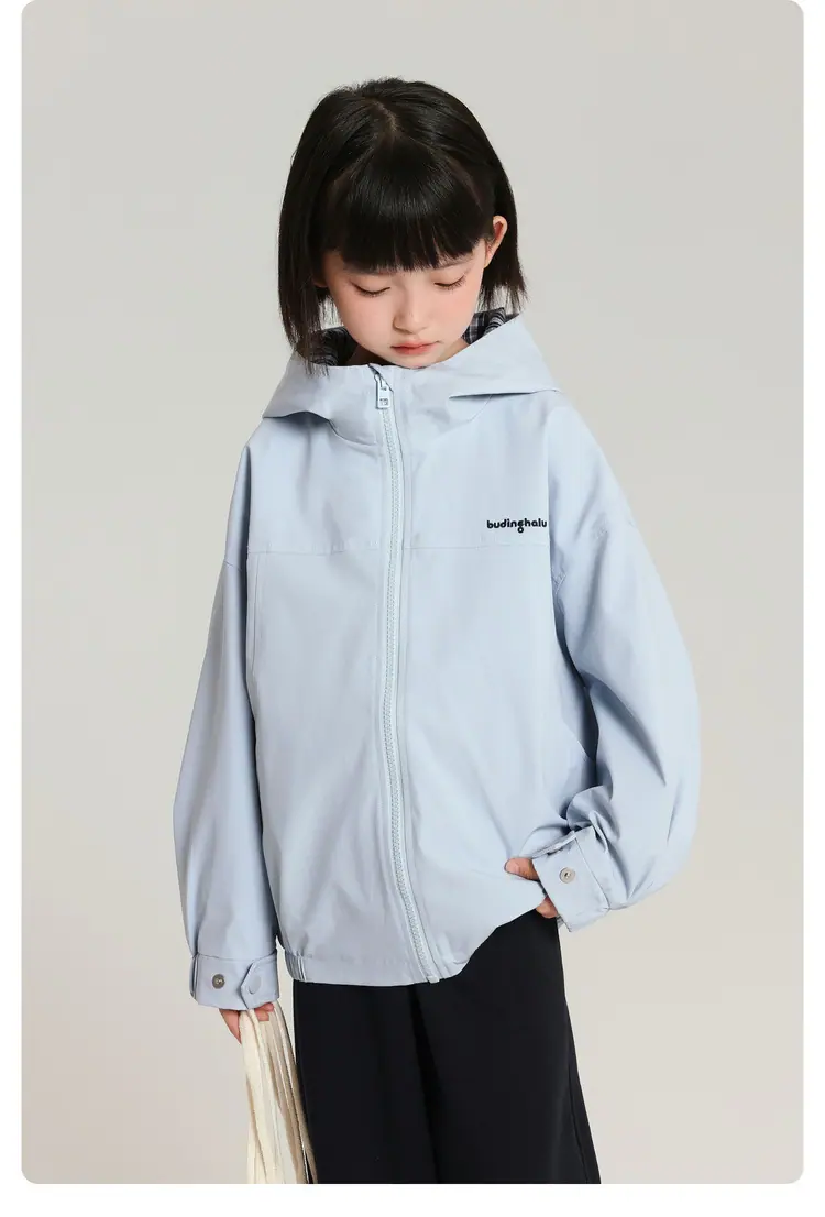 Pudding Haru Ropa Infantil Chaqueta con Capucha a Cuadros Patchwork para Niñas 2025 Otoño Nuevo Estilo Chaqueta Cortavientos Infantil