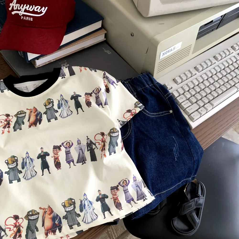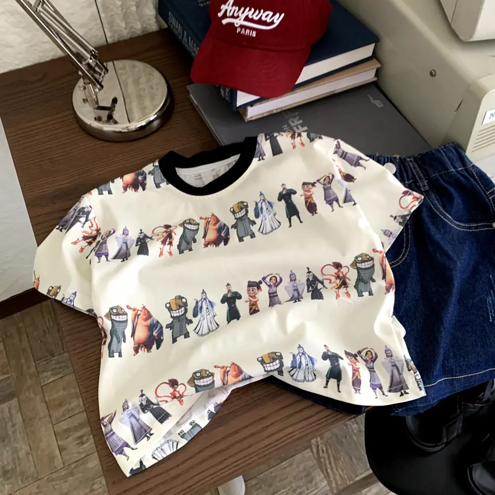 Ropa para Niños Camisetas de Manga Corta para Niños Tops de Verano para Niños 2025 Verano Nuevo Ropa Holgada de Manga Corta con Tacto de Algodón para Niñas t