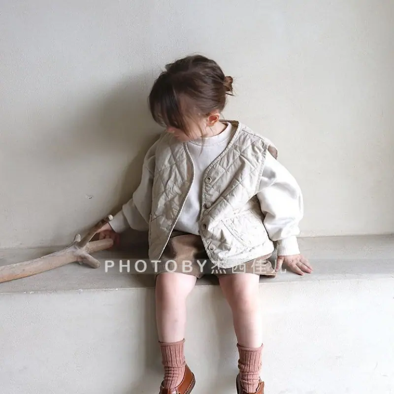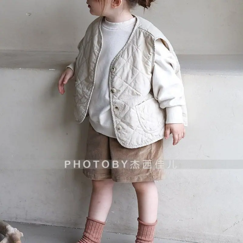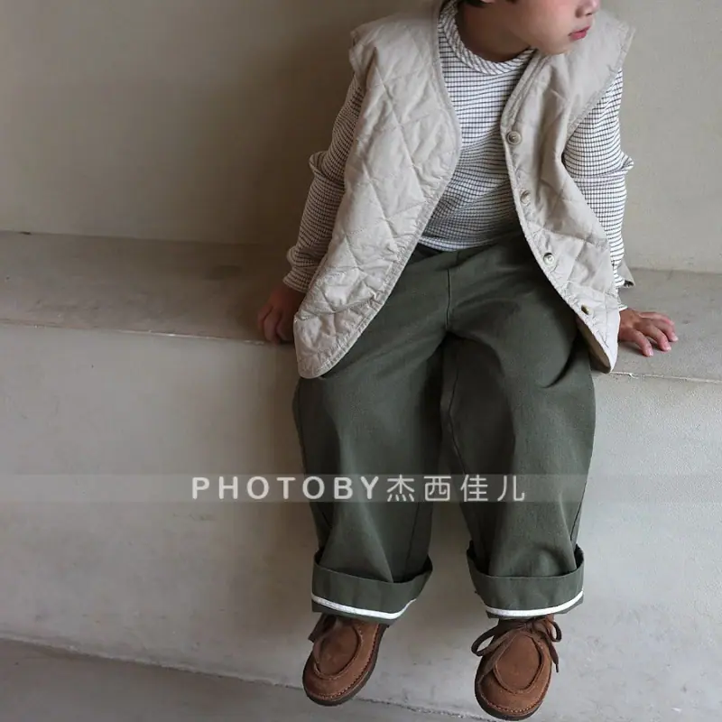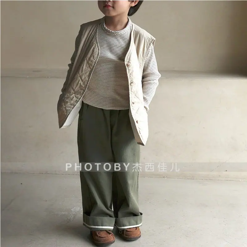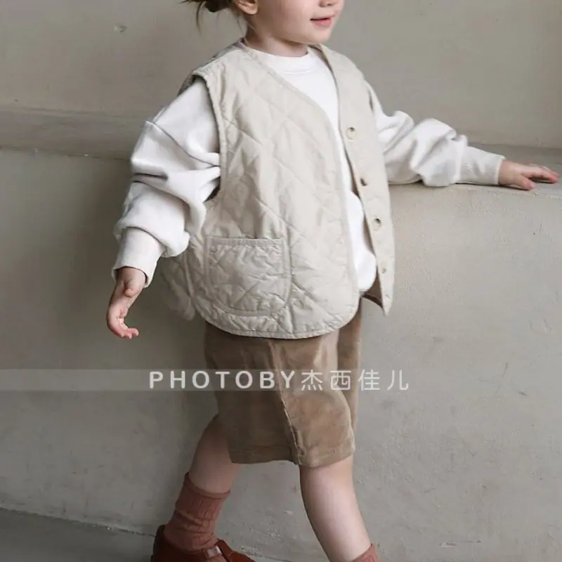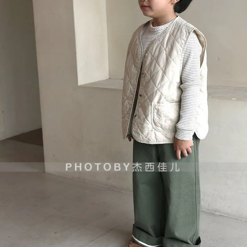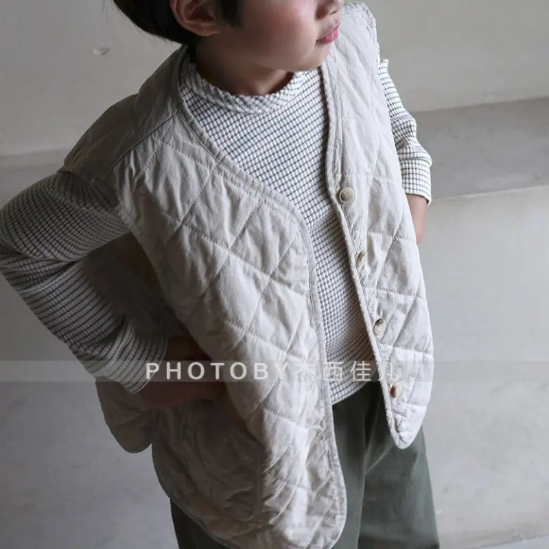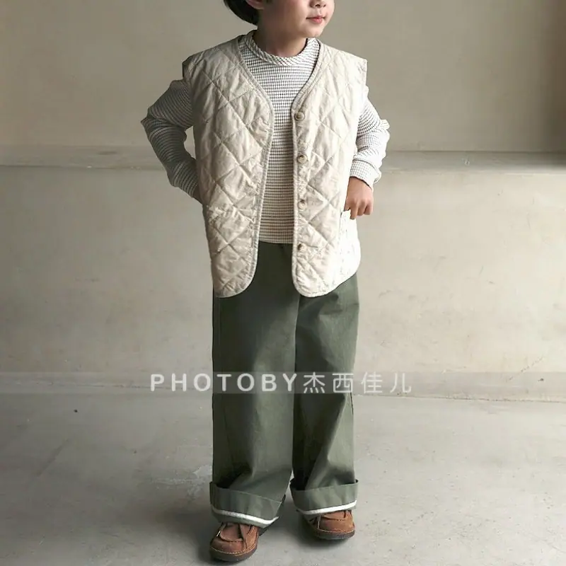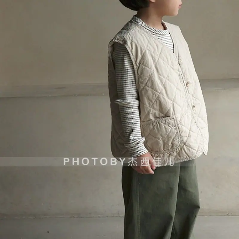 Chaleco Argyle para Niños 2025 Invierno Nuevo Estilo Niños y Niñas Coreano Suelto con Botones Chaleco Top sin Mangas ins Ropa Exterior