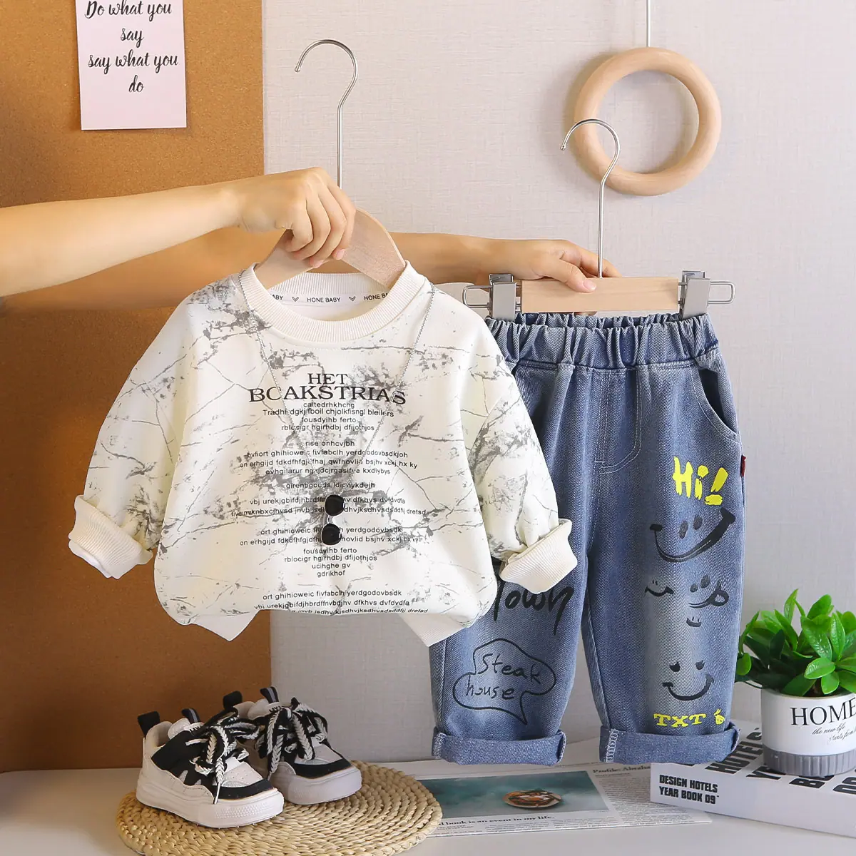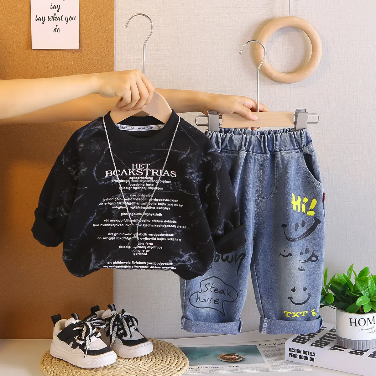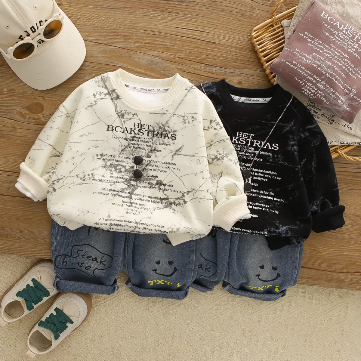 Ropa para Niños Conjunto de Otoño para Niños Nuevo Trendy Bebé Infantil Primavera y Otoño Sudadera Casual Conjunto de Dos Piezas Estilo Coreano Niños