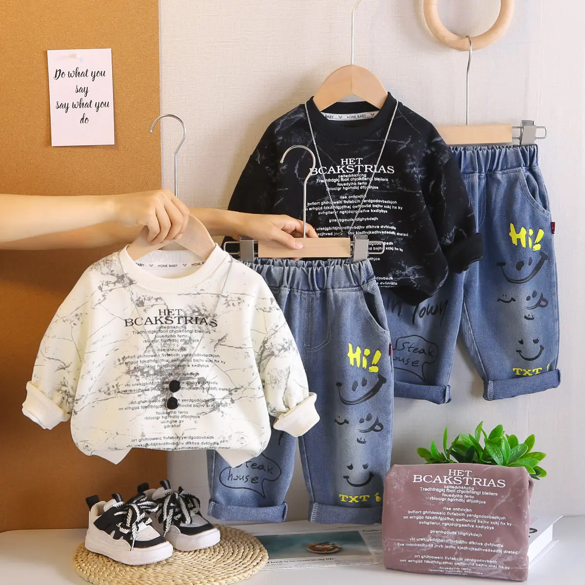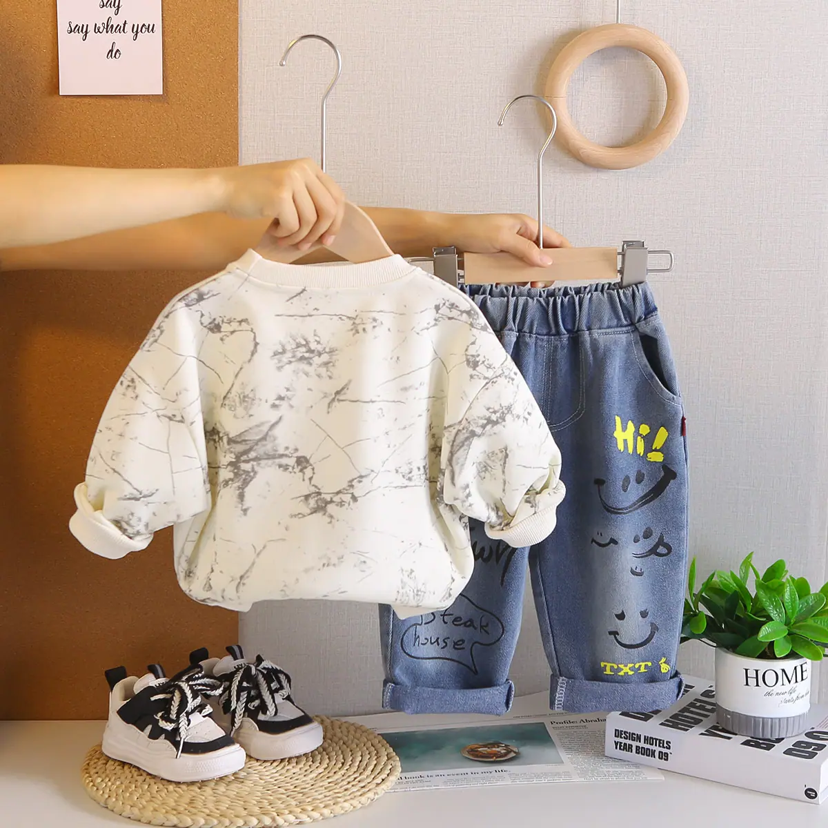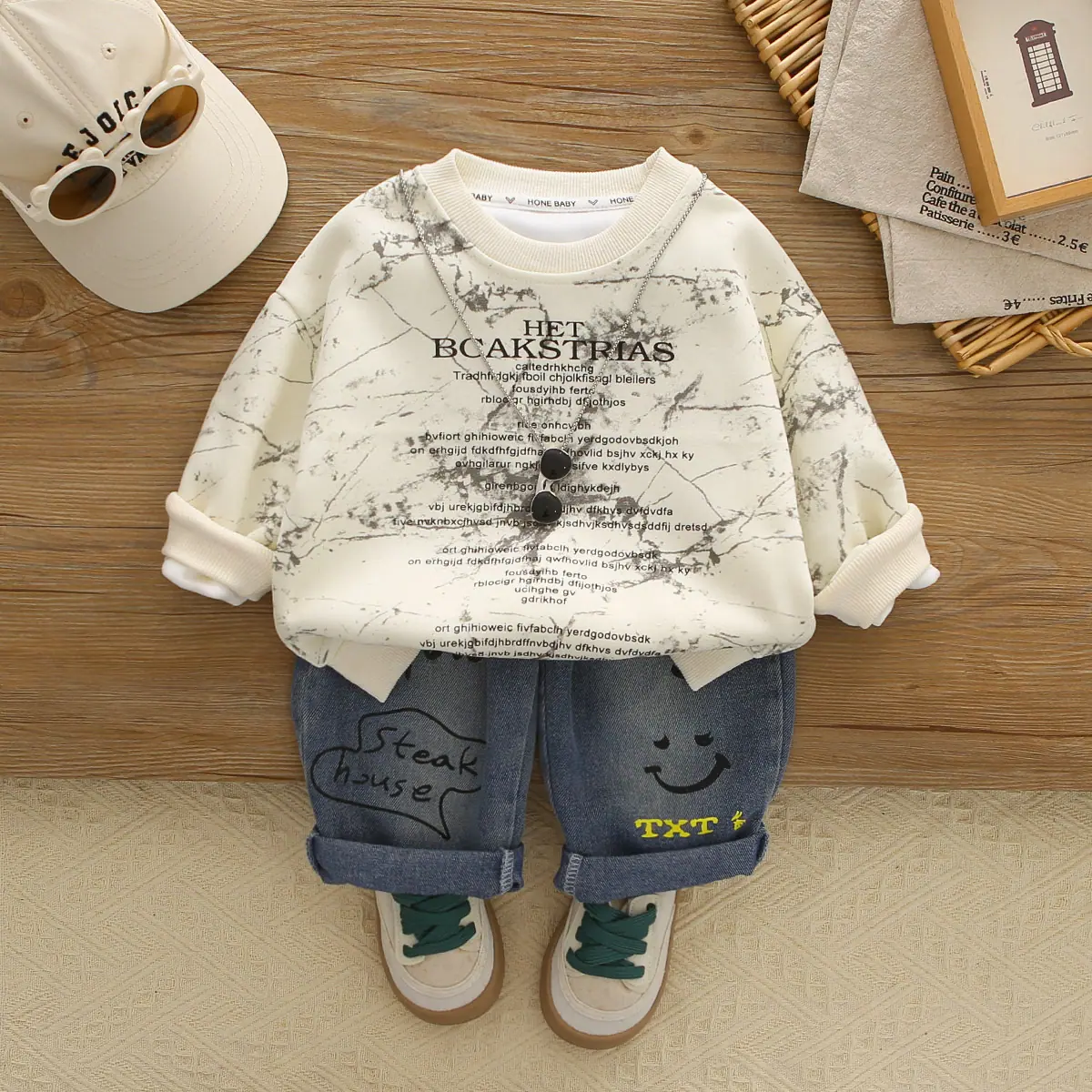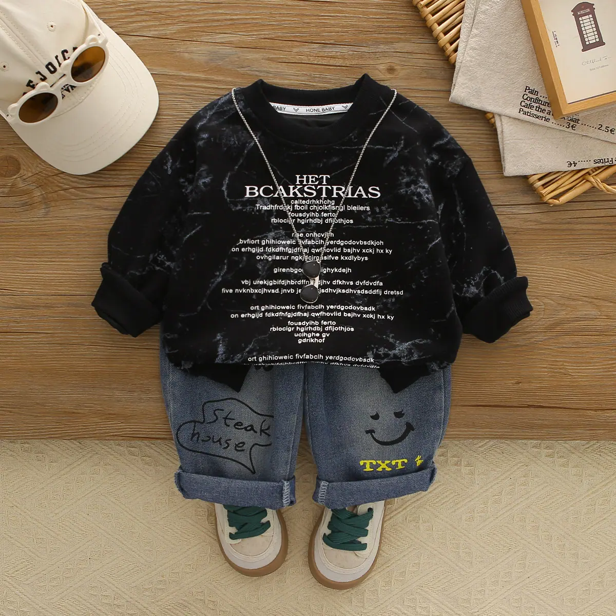 Ropa para Niños Conjunto de Otoño para Niños Nuevo Trendy Bebé Infantil Primavera y Otoño Sudadera Casual Conjunto de Dos Piezas Estilo Coreano Niños