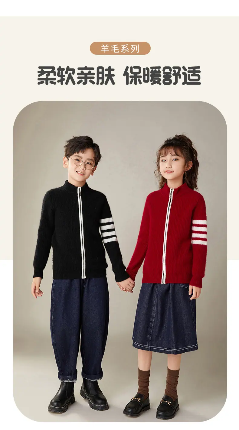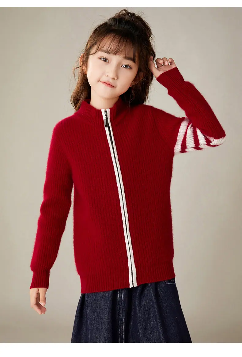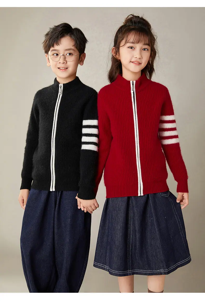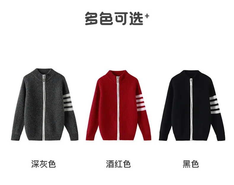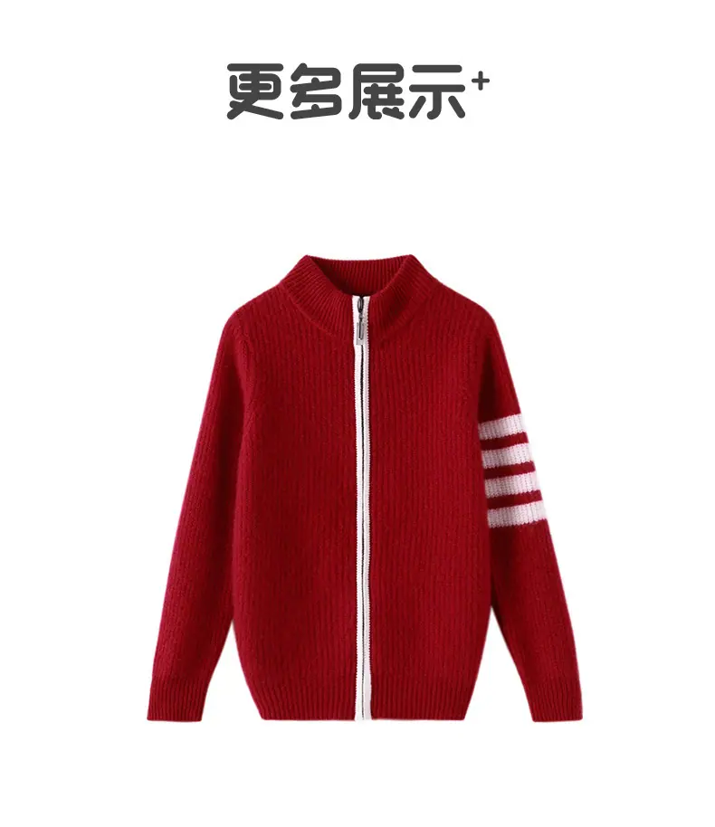 Otoño e Invierno Nuevo Cárdigan de Lana para Niños Chaqueta con Cremallera de Cuello Medio Alto Niño y Niña Mismo Estilo Suéter Cálido Grueso