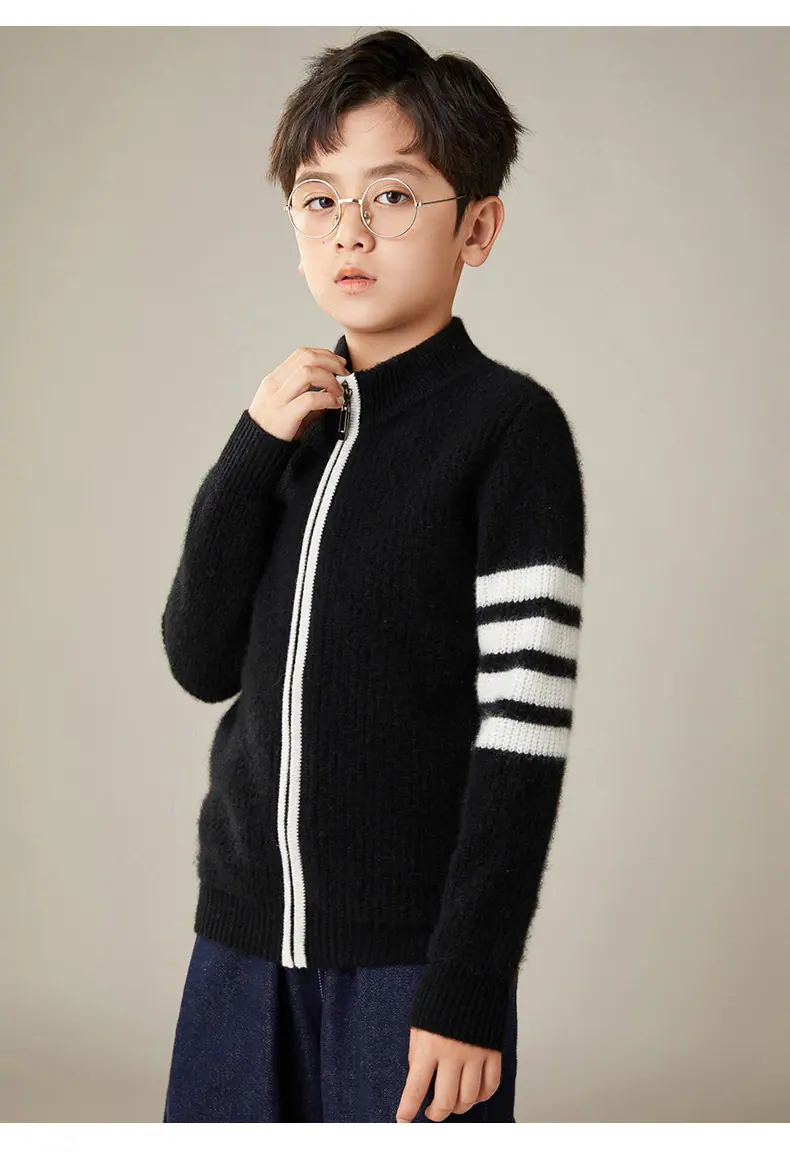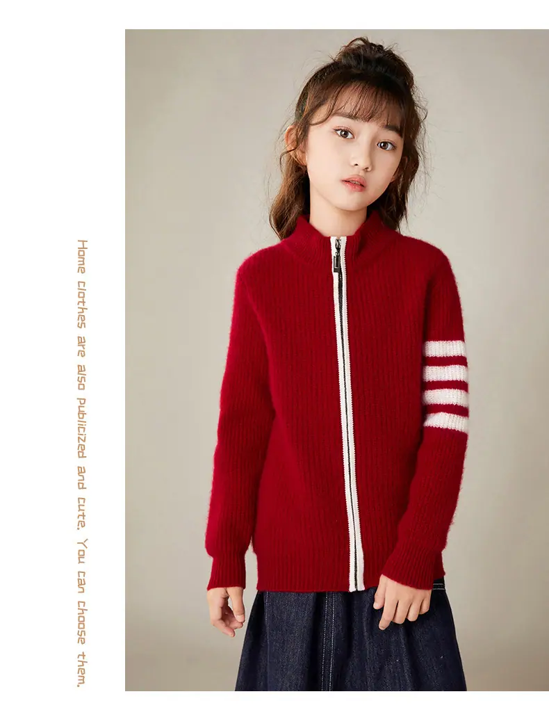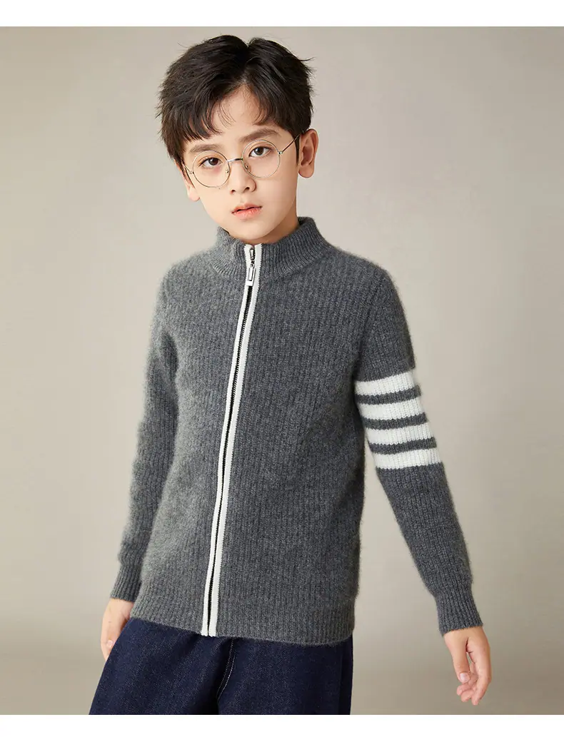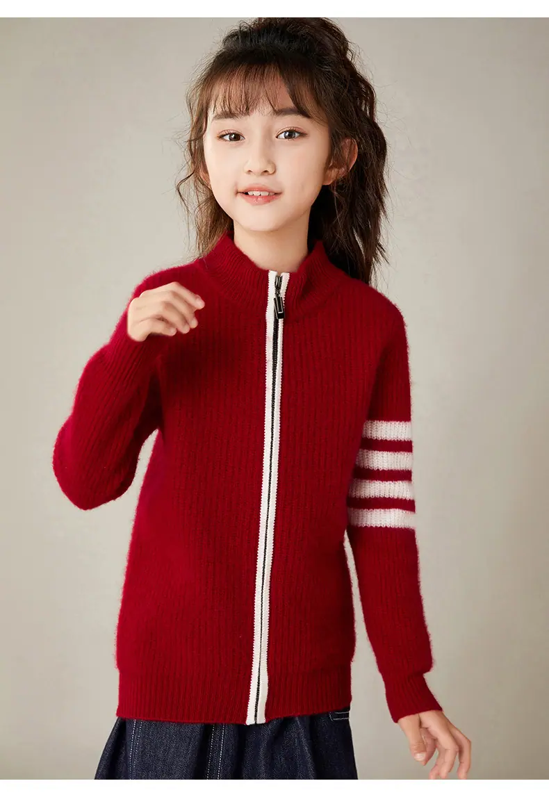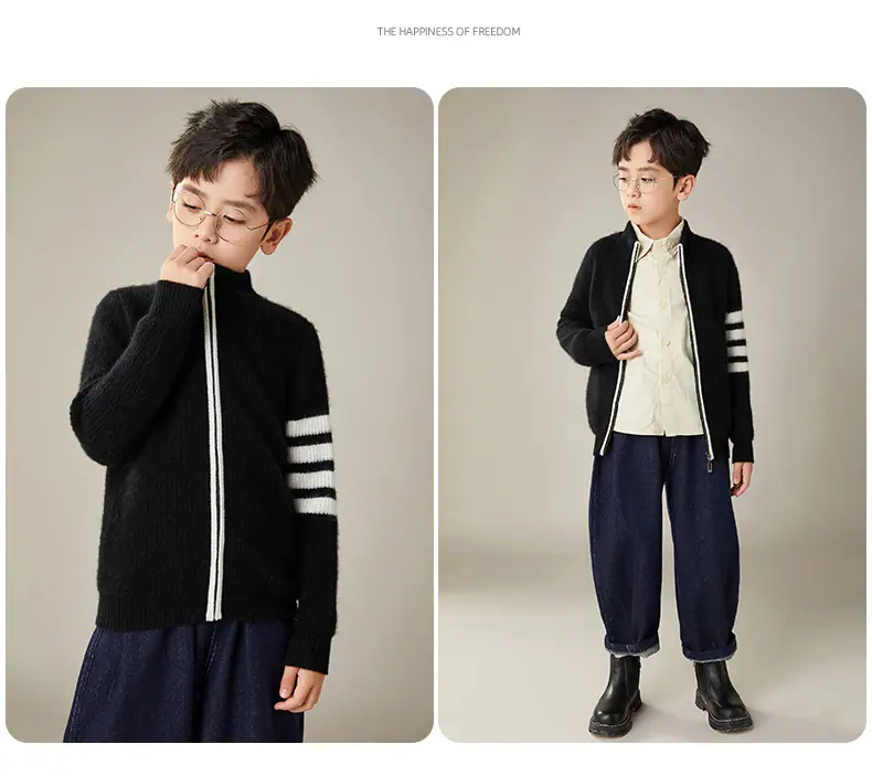 Otoño e Invierno Nuevo Cárdigan de Lana para Niños Chaqueta con Cremallera de Cuello Medio Alto Niño y Niña Mismo Estilo Suéter Cálido Grueso