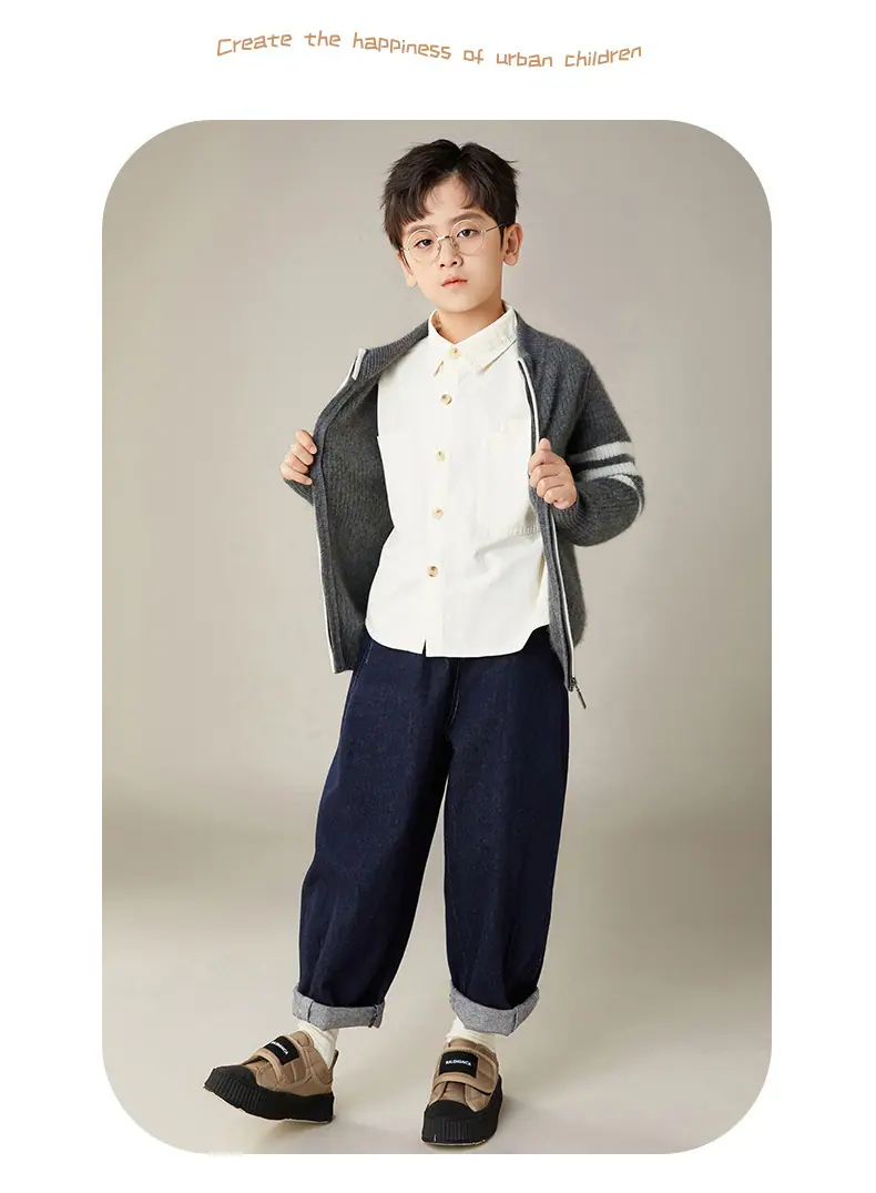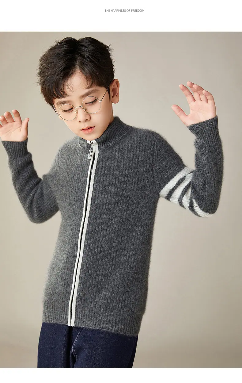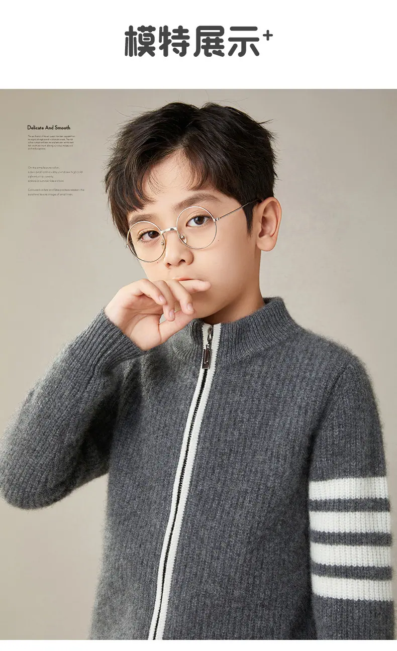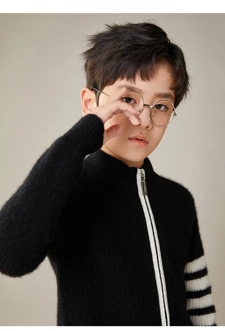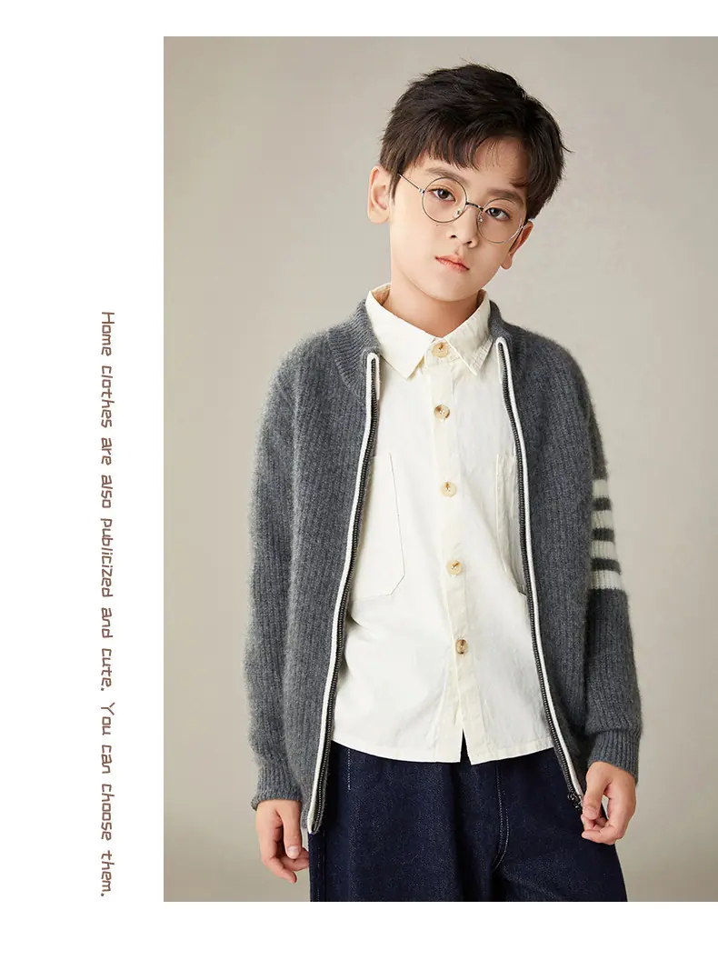 Otoño e Invierno Nuevo Cárdigan de Lana para Niños Chaqueta con Cremallera de Cuello Medio Alto Niño y Niña Mismo Estilo Suéter Cálido Grueso