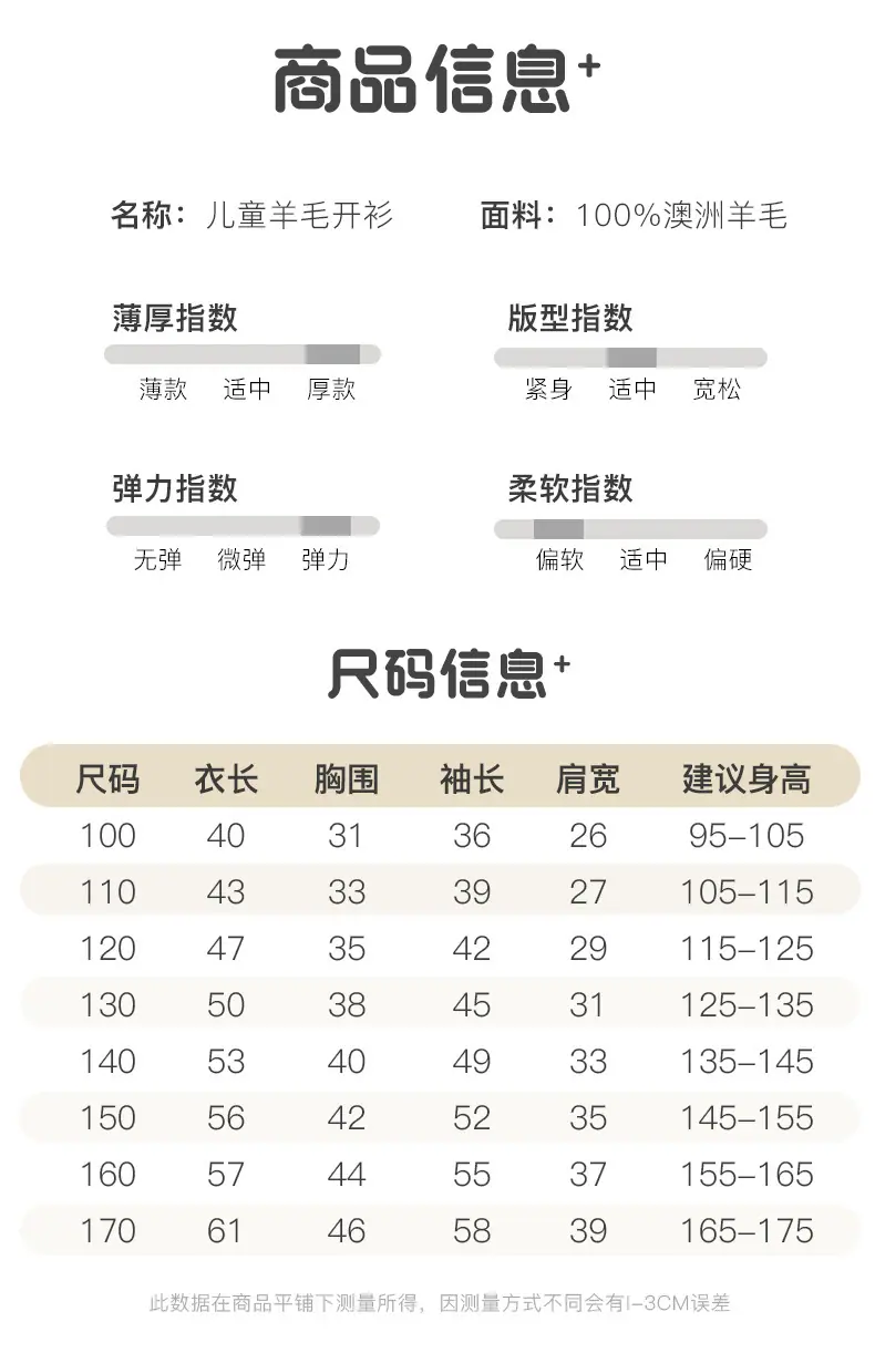 100cm, 110cm, 120cm, 130cm, 140cm, 150cm, 160cm, 170cm