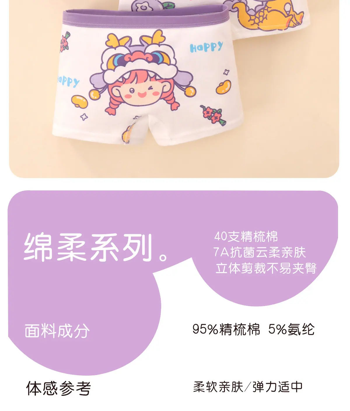 Ropa interior para niñas bóxers pantalones de cuatro esquinas para niños niña bebé niña pequeña pantalones cortos para las cuatro estaciones sin que se suban 100% transpirable antibacteriano