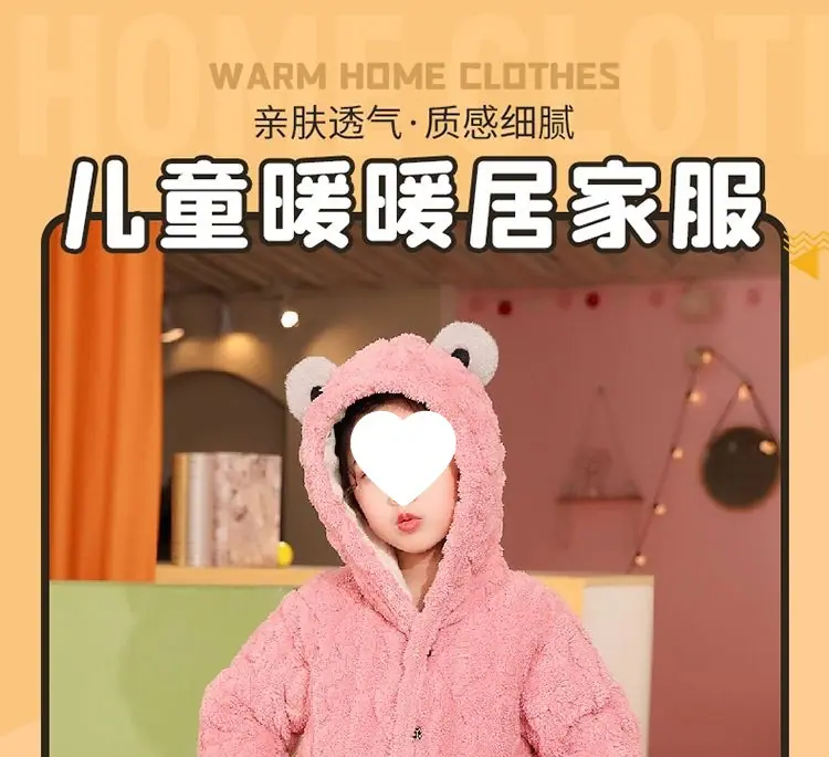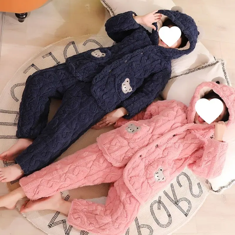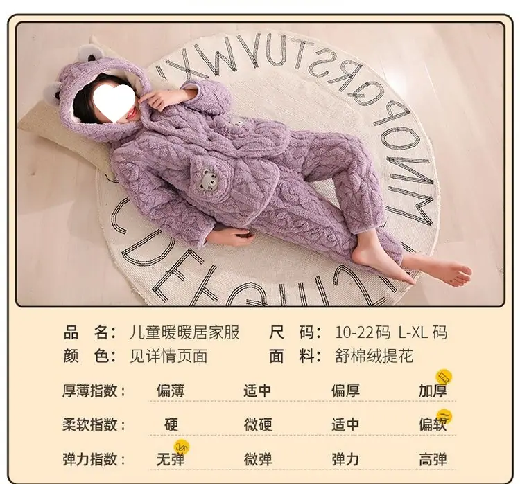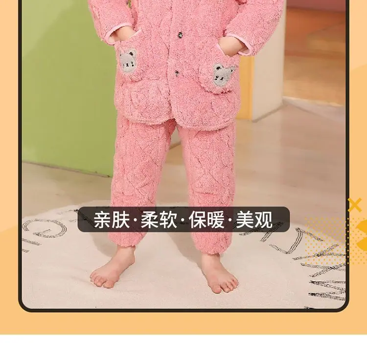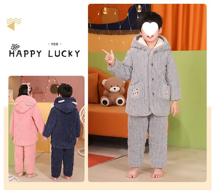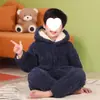 Pijamas para Niños Invierno Forrado de Felpa Engrosado Lindo Bebé Niño Niña Largo Medio Franela Conjunto de Ropa de Casa