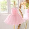Nuevo conjunto de vestido infantil transfronterizo con grandes flores tridimensionales, un vestido de actuación de dos piezas.