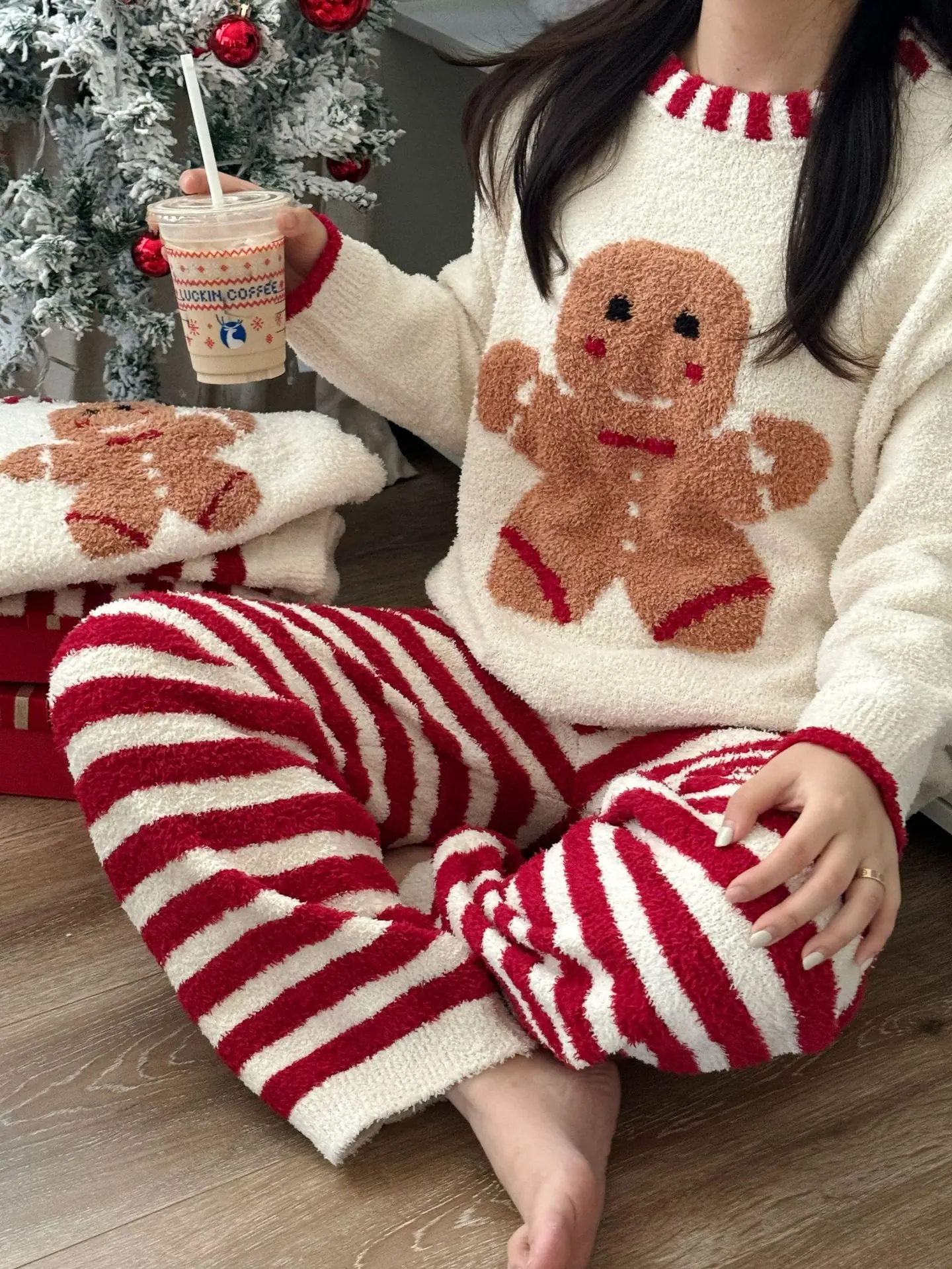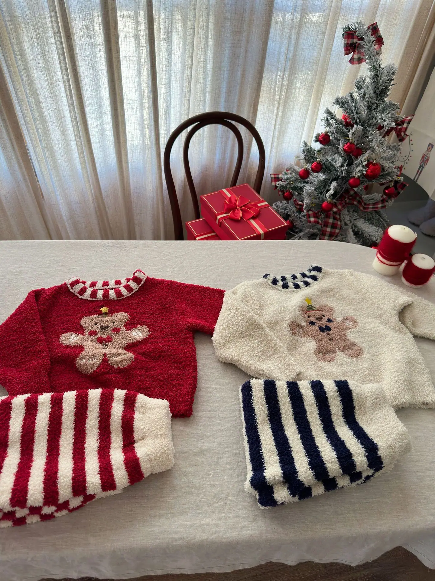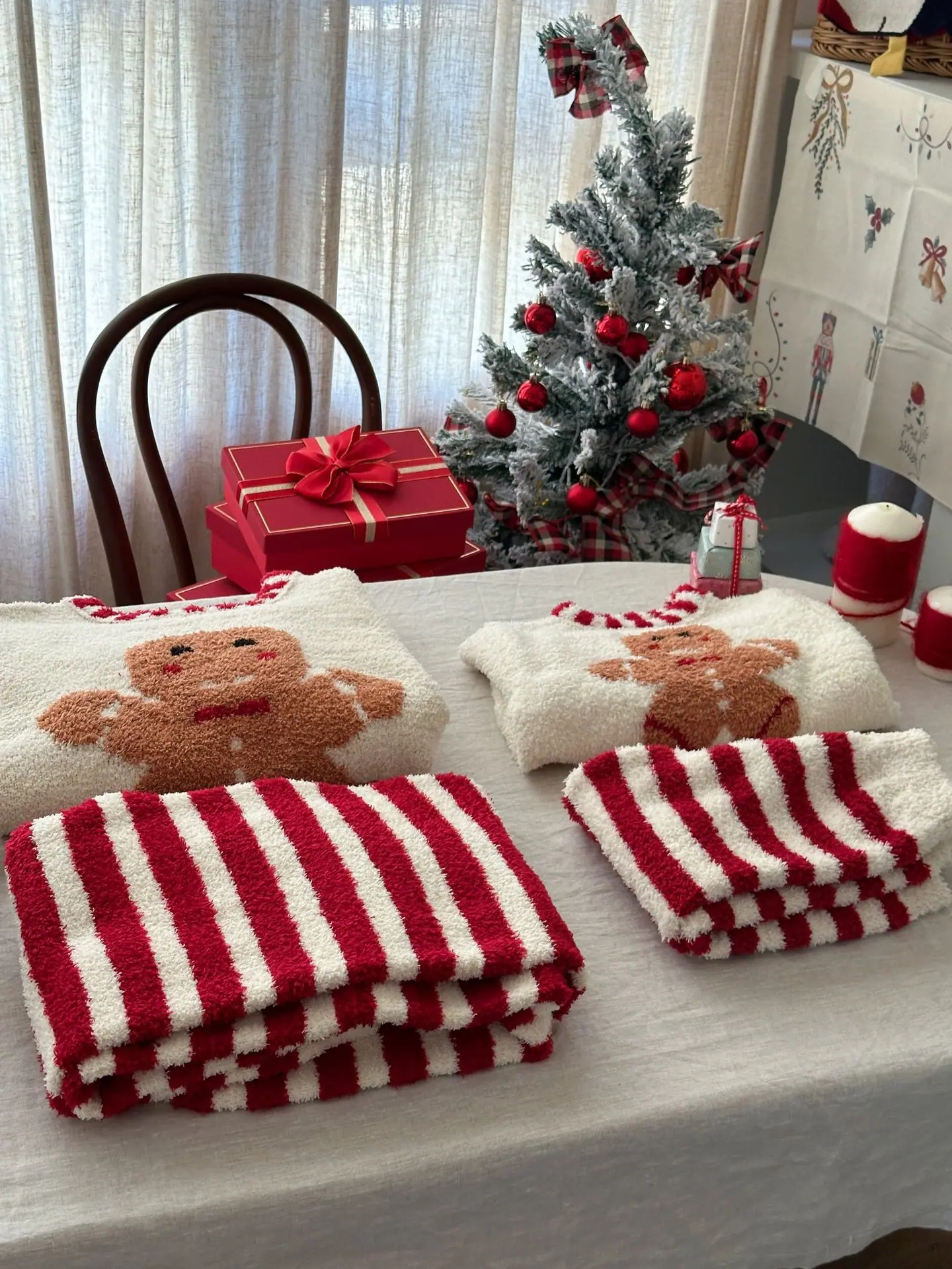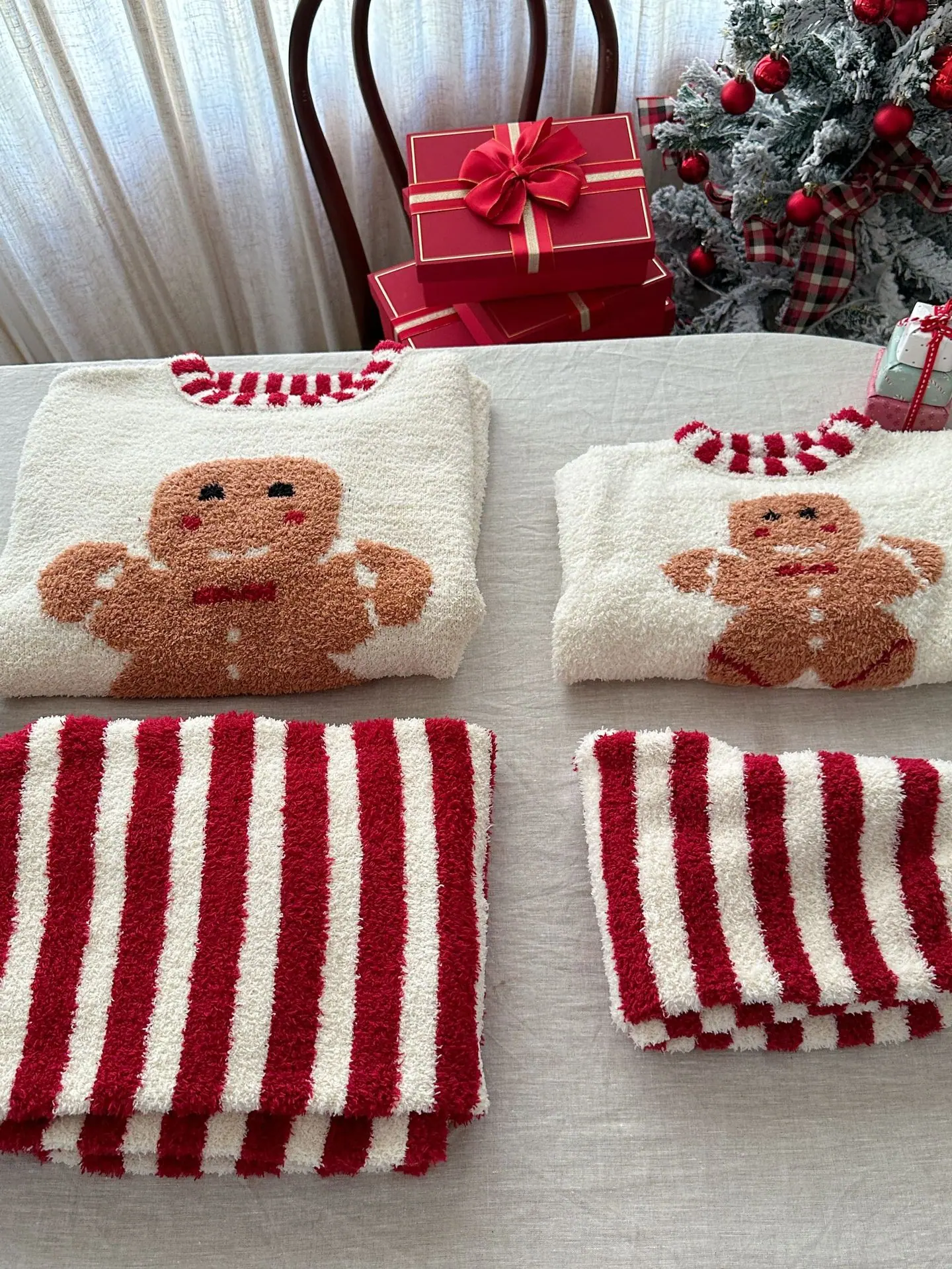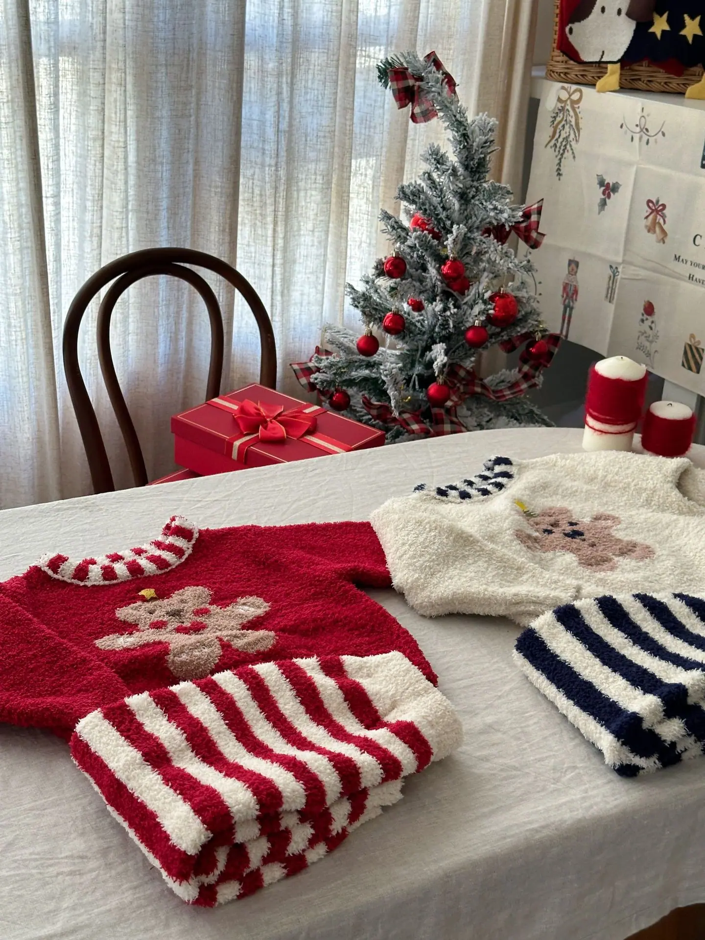 Red Christmas Teddy Bear, Navy Christmas Teddy Bear, Beige Gingerbread Man