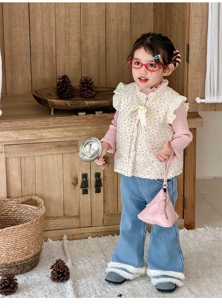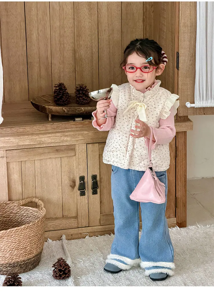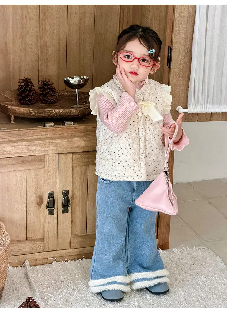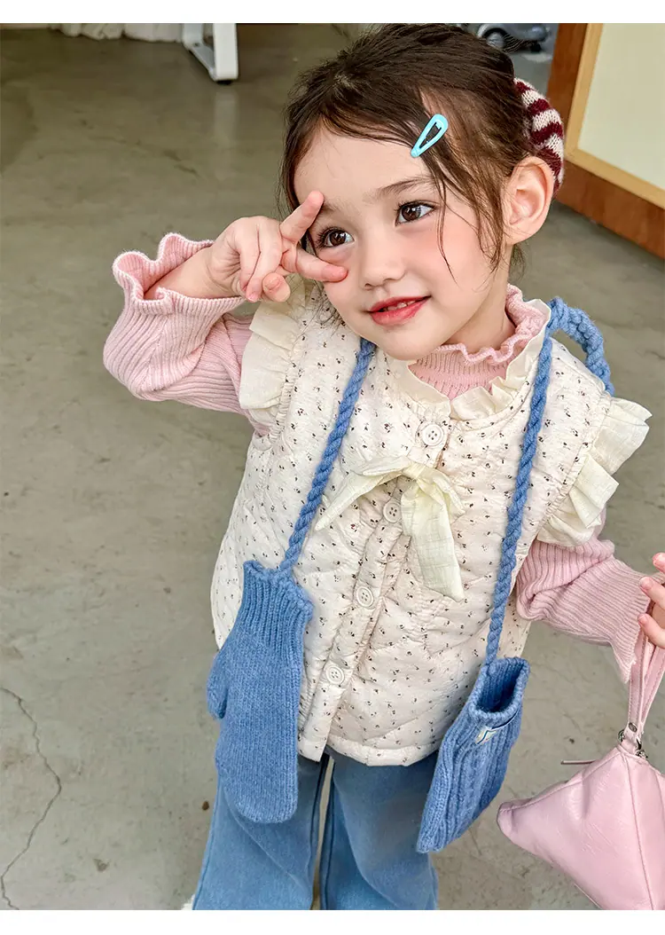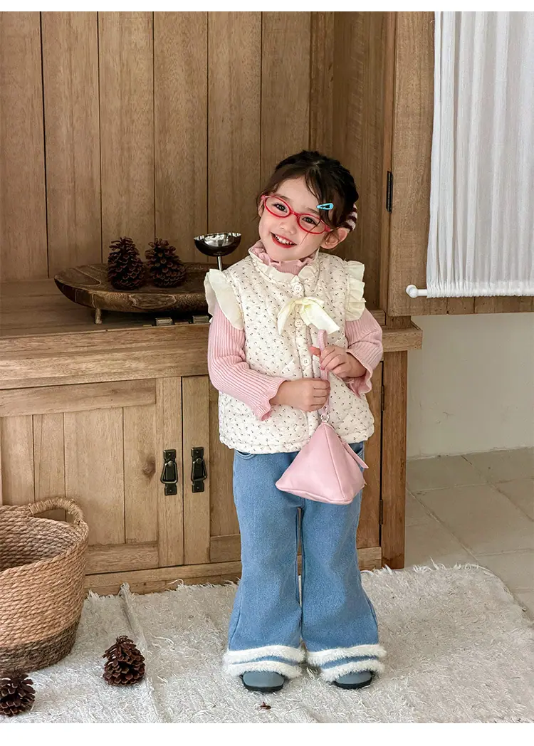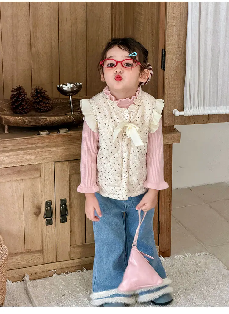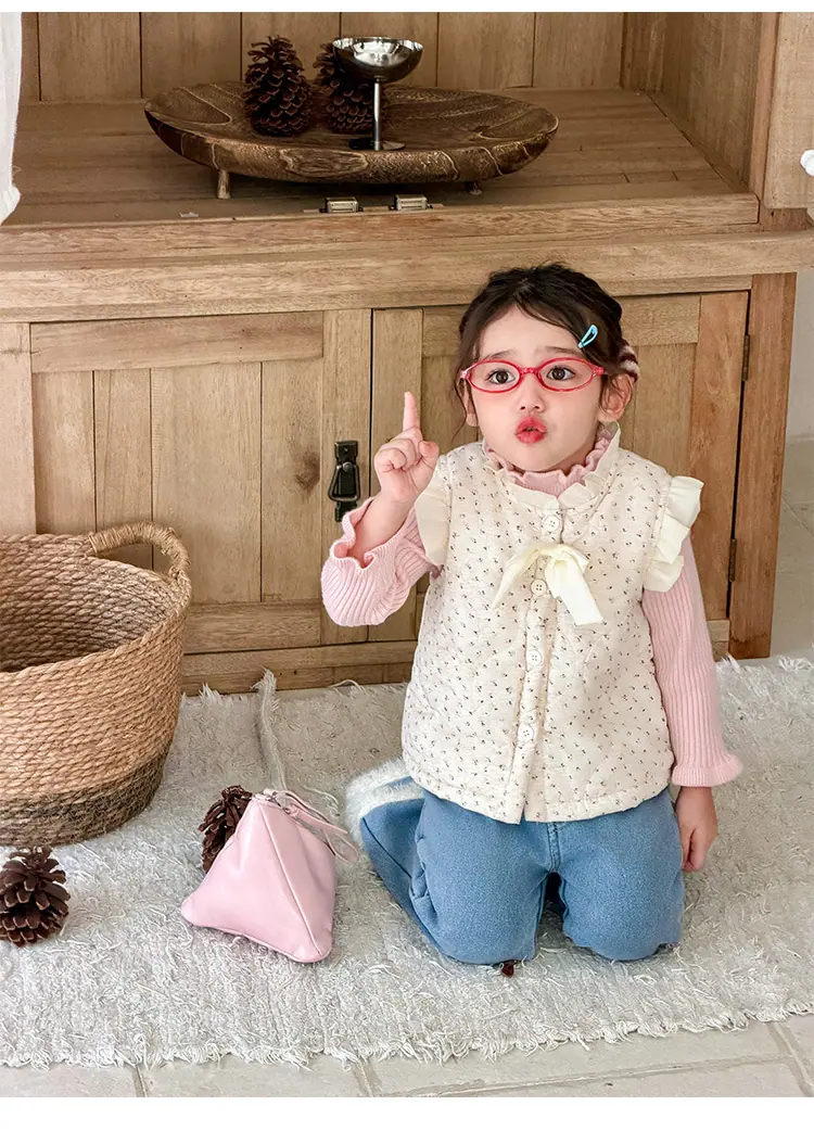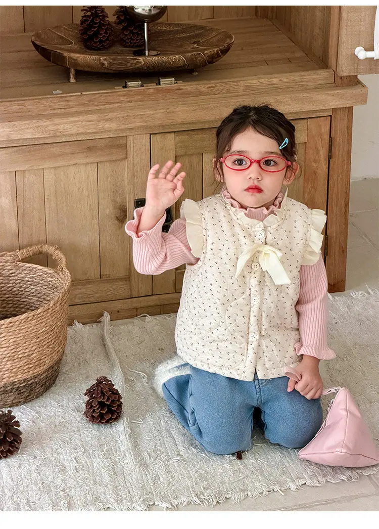 Chaleco para Niñas Otoño Invierno 2025 Nuevo Chaleco Cálido Grueso de Algodón Floral para Niñas Ropa de Invierno para Bebé Abrigo Exterior de Moda